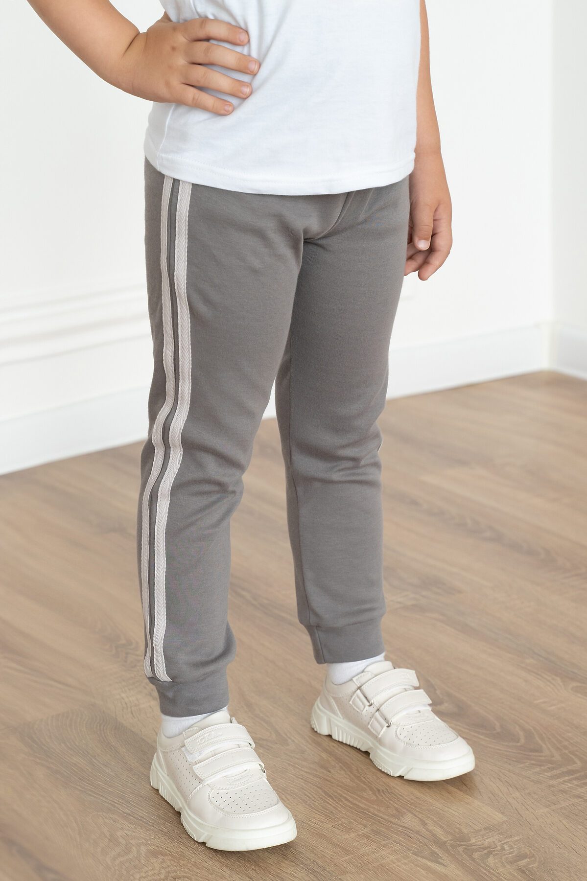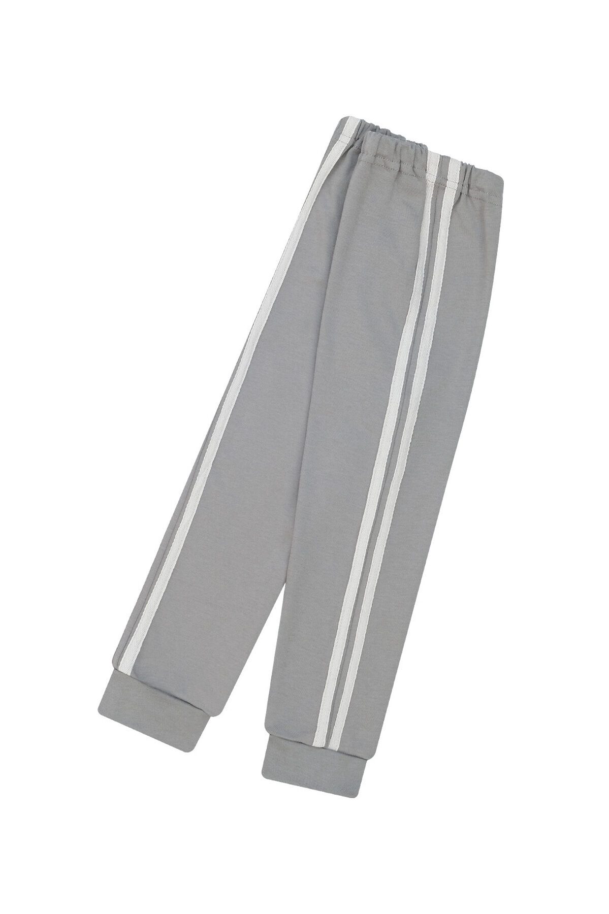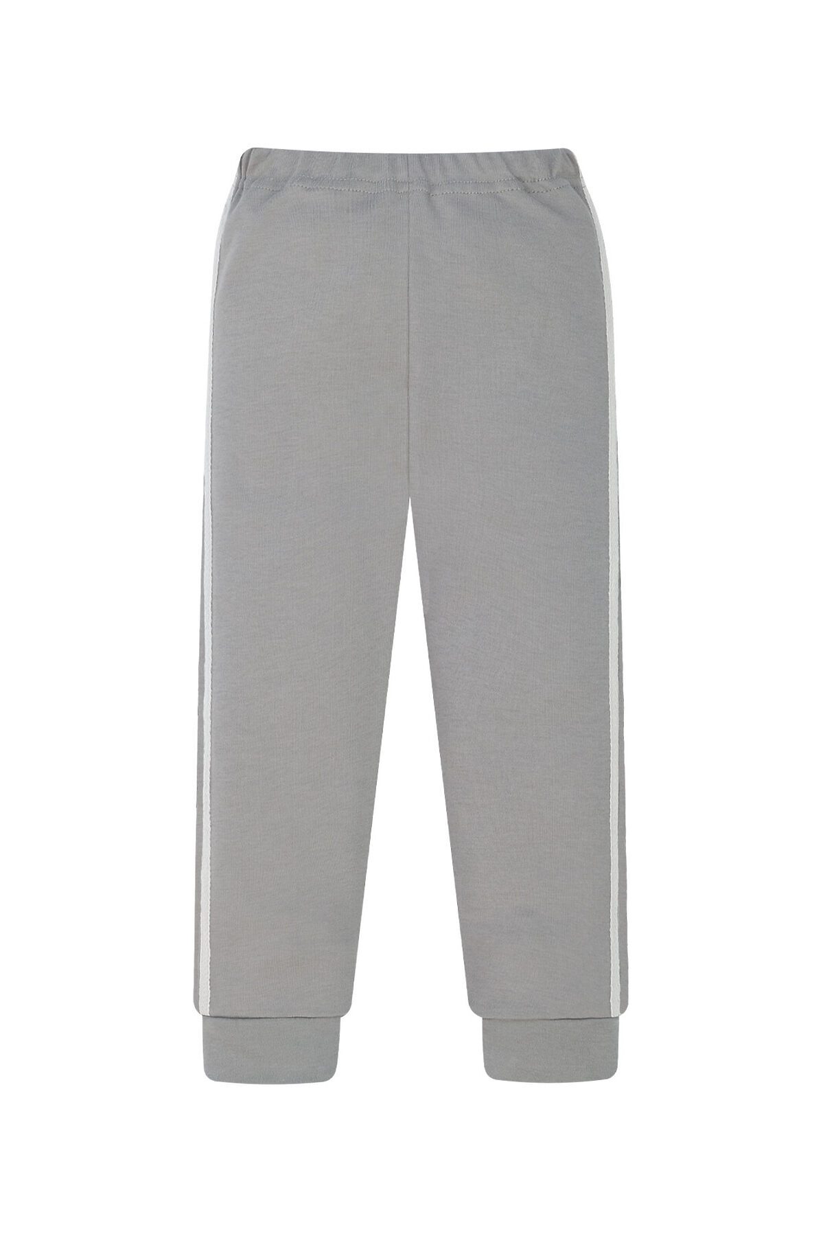 Детские трикотажные домашние штанишки серого цвета для мальчиков и девочек. Подходят для повседневной носки дома, прогулок на улице и занятий спортом. Сшиты из мягкого и нежного хлопкового трикотажа. Полуприлегающий силуэт. Пояс на резинке. По низу штанин двуслойные манжеты. По бокам две декоративные белые полоски (лампасы).>