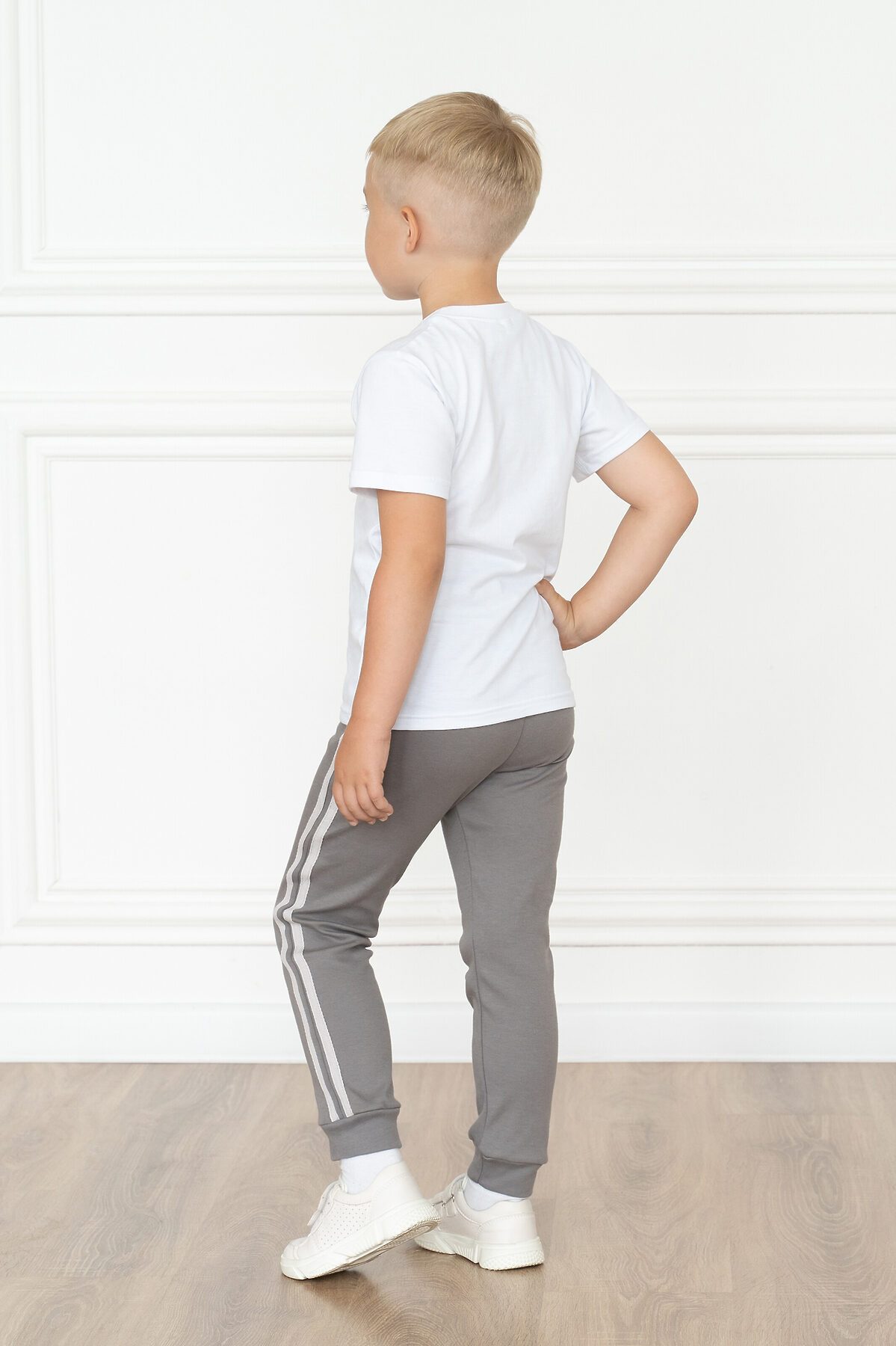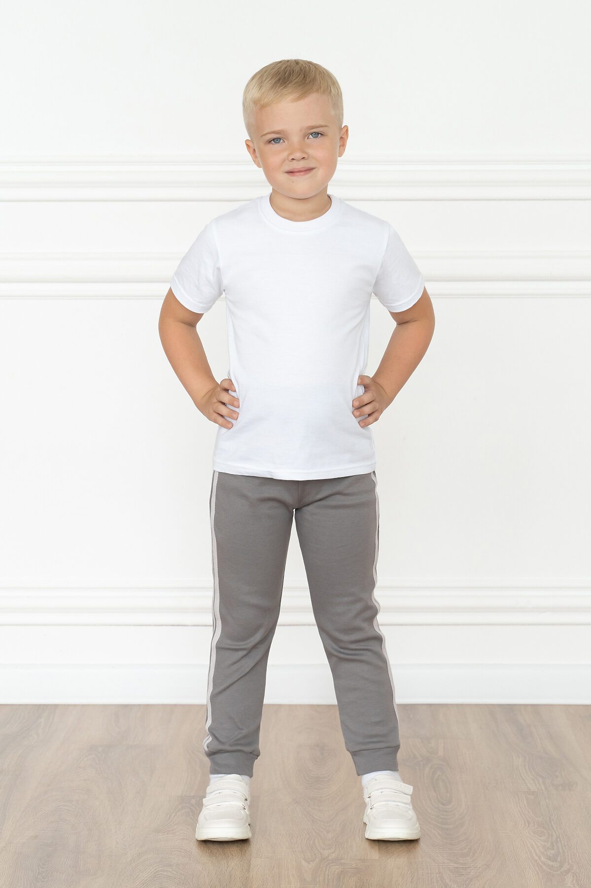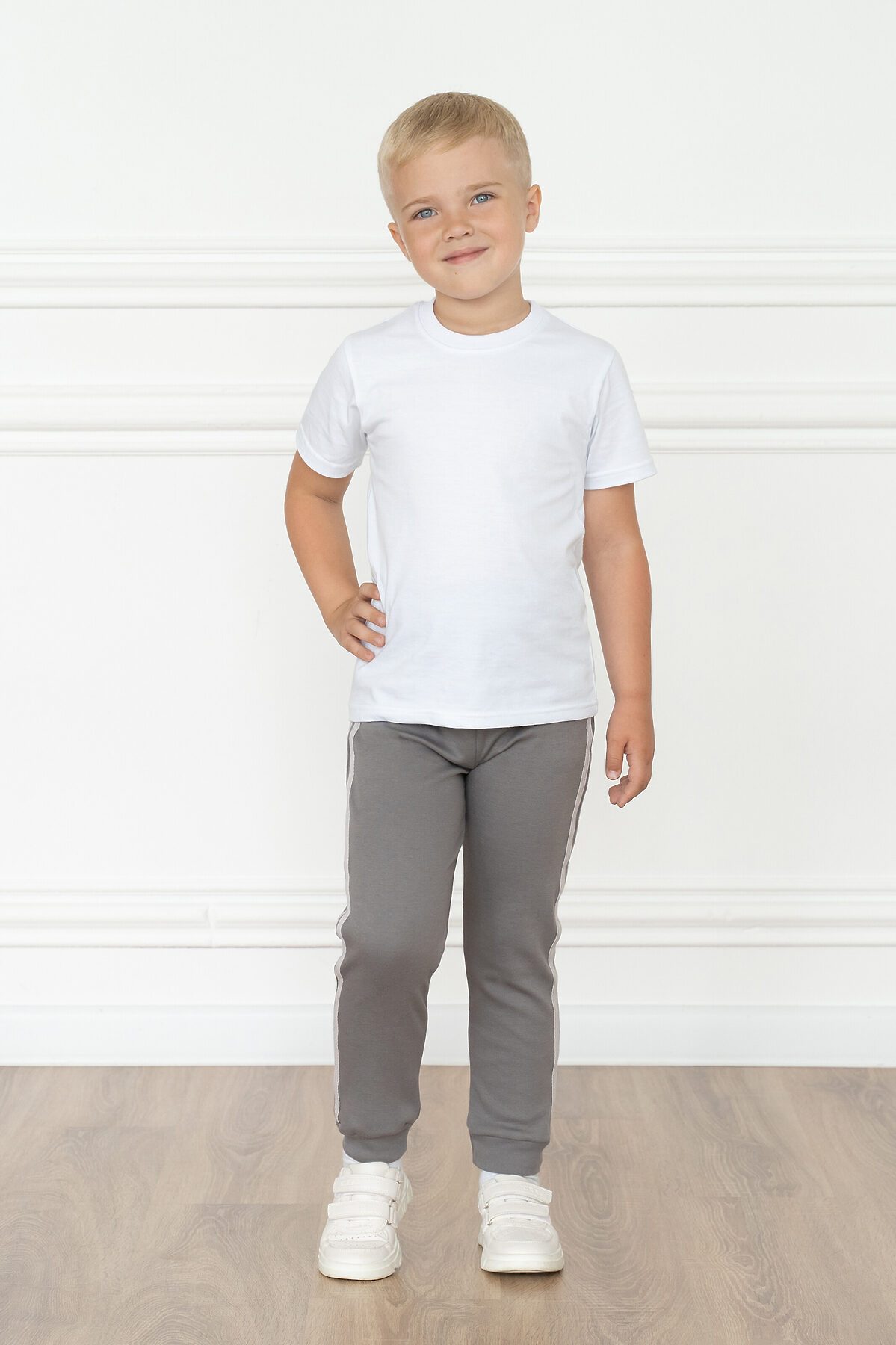 Детские трикотажные домашние штанишки серого цвета для мальчиков и девочек. Подходят для повседневной носки дома, прогулок на улице и занятий спортом. Сшиты из мягкого и нежного хлопкового трикотажа. Полуприлегающий силуэт. Пояс на резинке. По низу штанин двуслойные манжеты. По бокам две декоративные белые полоски (лампасы).>