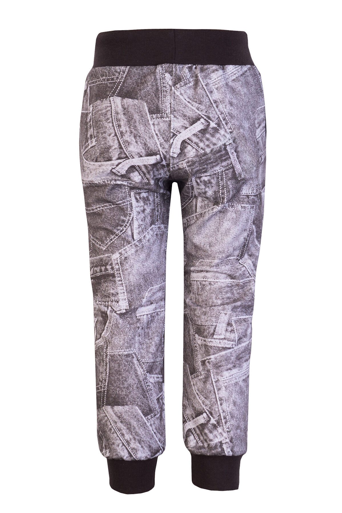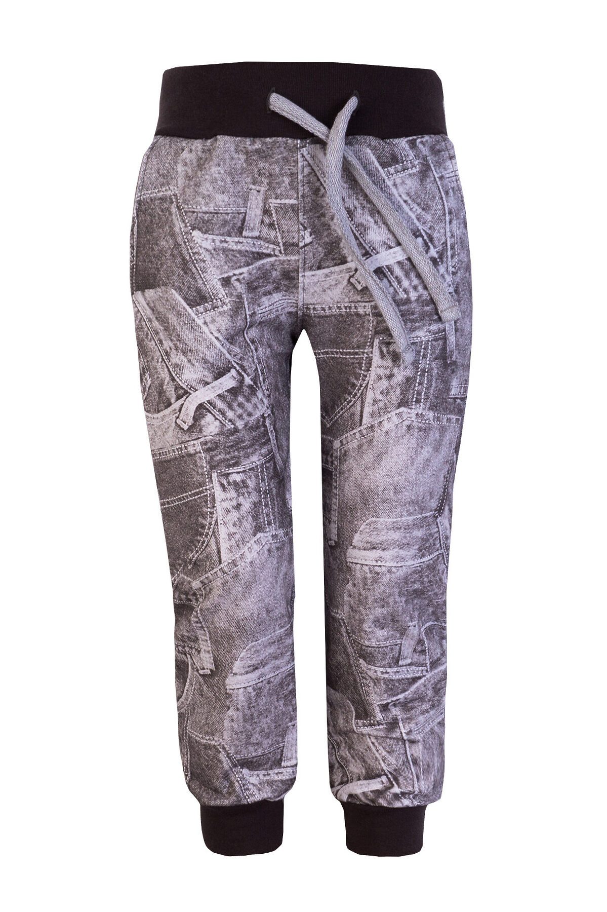 Детские трикотажные штаны из футера двухнитки для мальчиков и девочек серого цвета с принтом джинсовые карманы. Можно носить дома, в детском саду, школе и на улице. Свободный крой, по бокам карманы. Широкий эластичный пояс с трикотажным шнуром для регулировки на талии. По низу штанин трикотажные манжеты. >