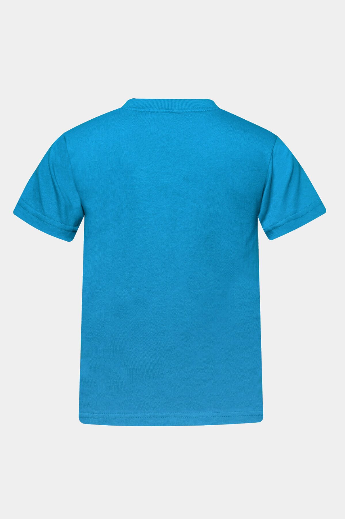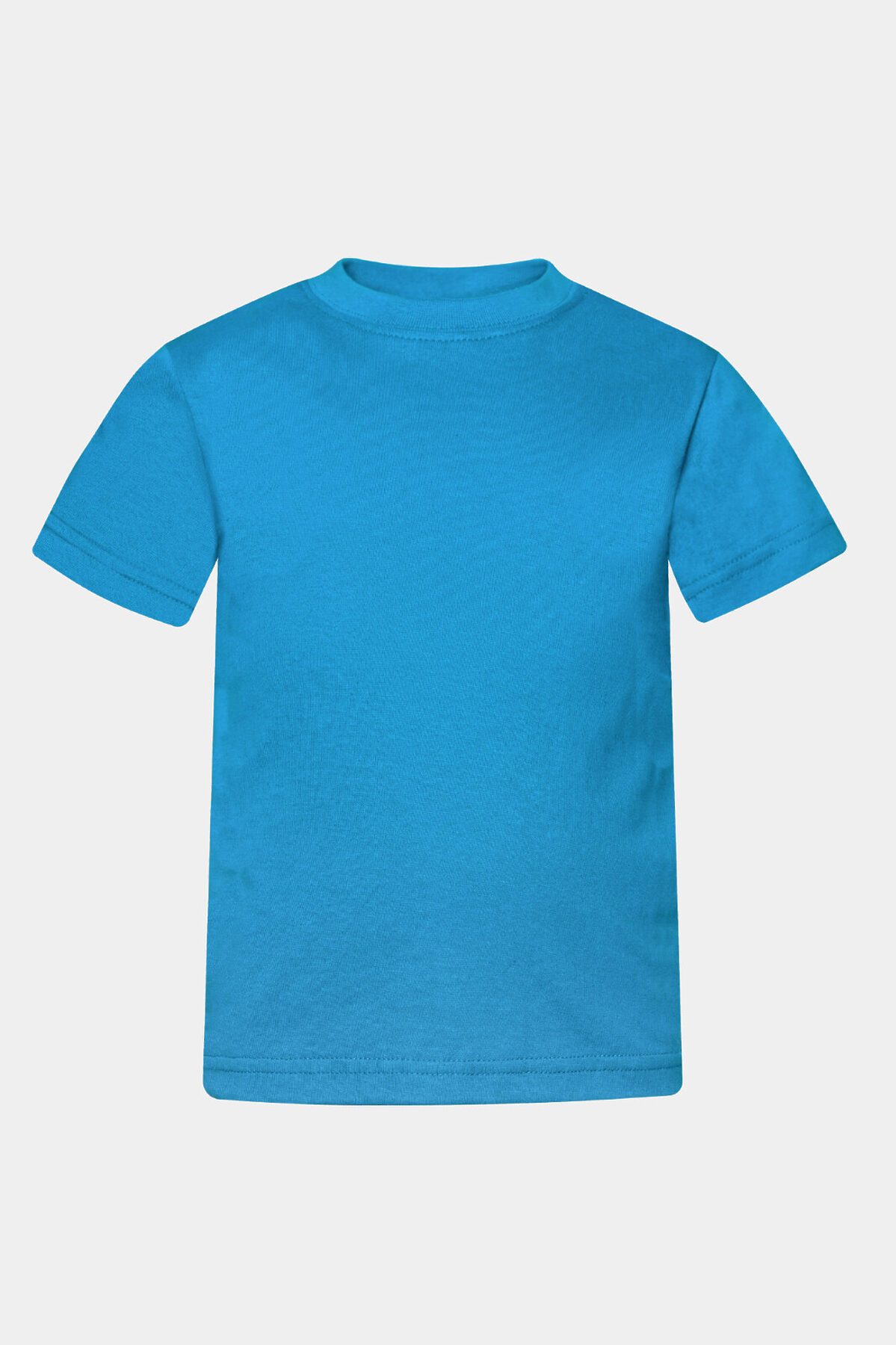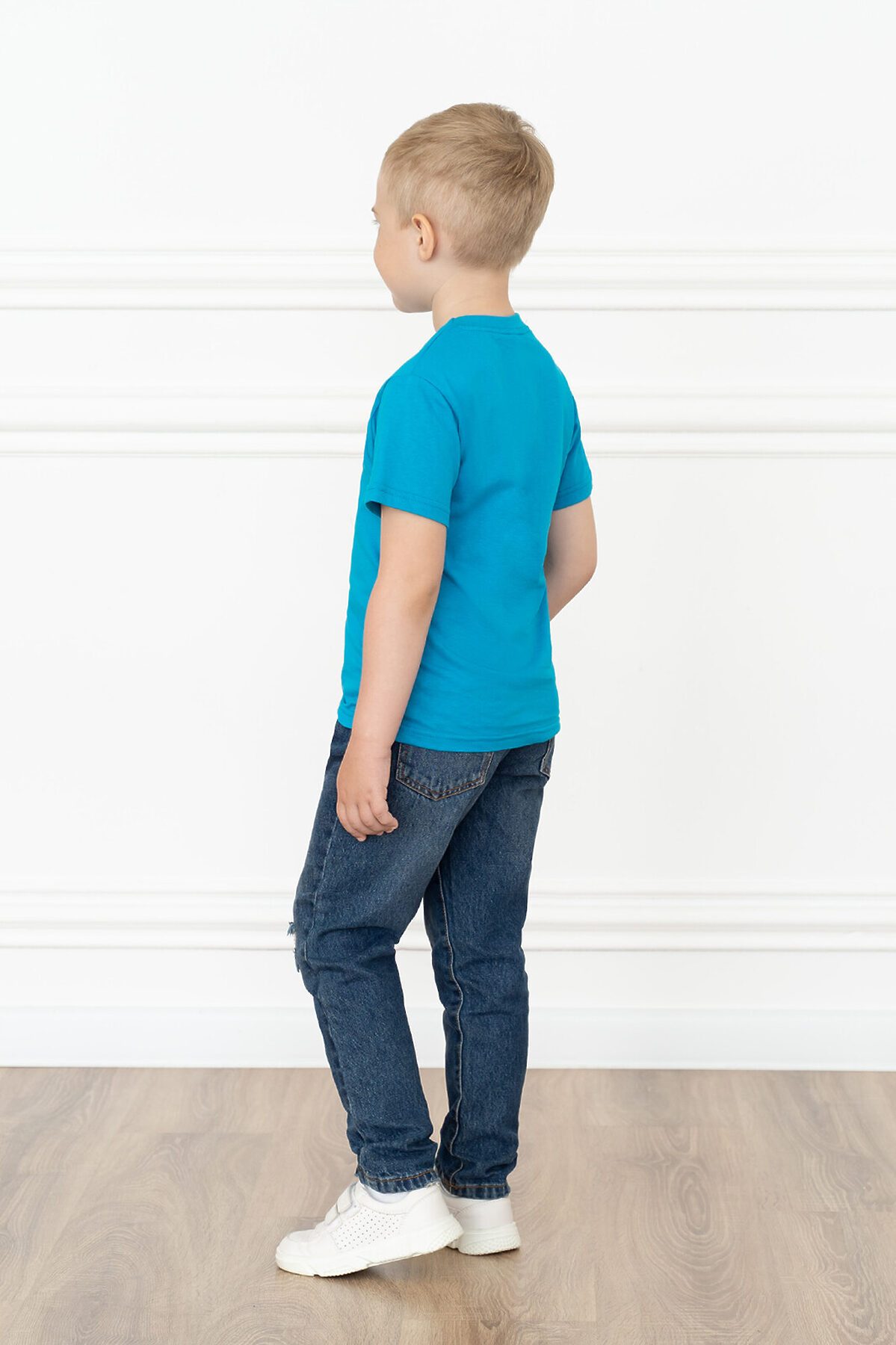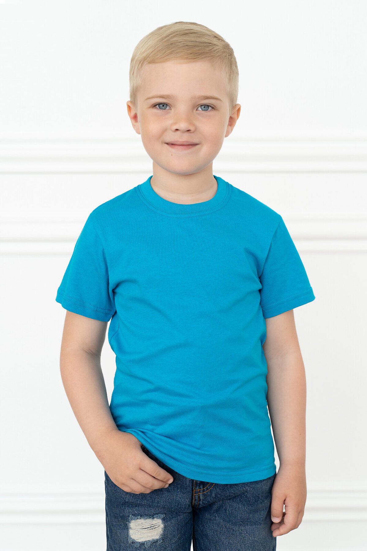 Удобный и универсальный предмет гардероба. Футболка однотонного бирюзового цвета. Горловина отделана трикотажной бейкой. Край рукавов и низ прошиты швом вподгибку. >