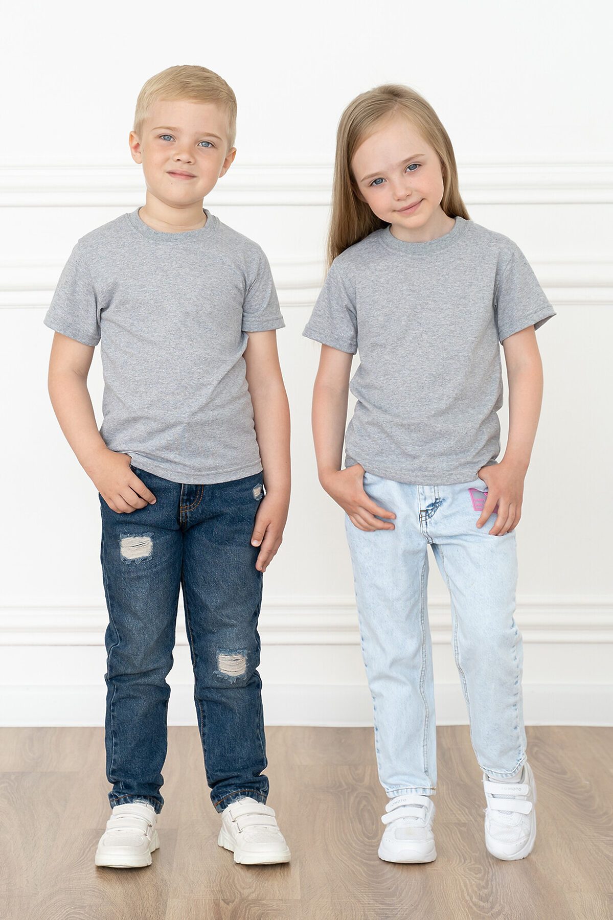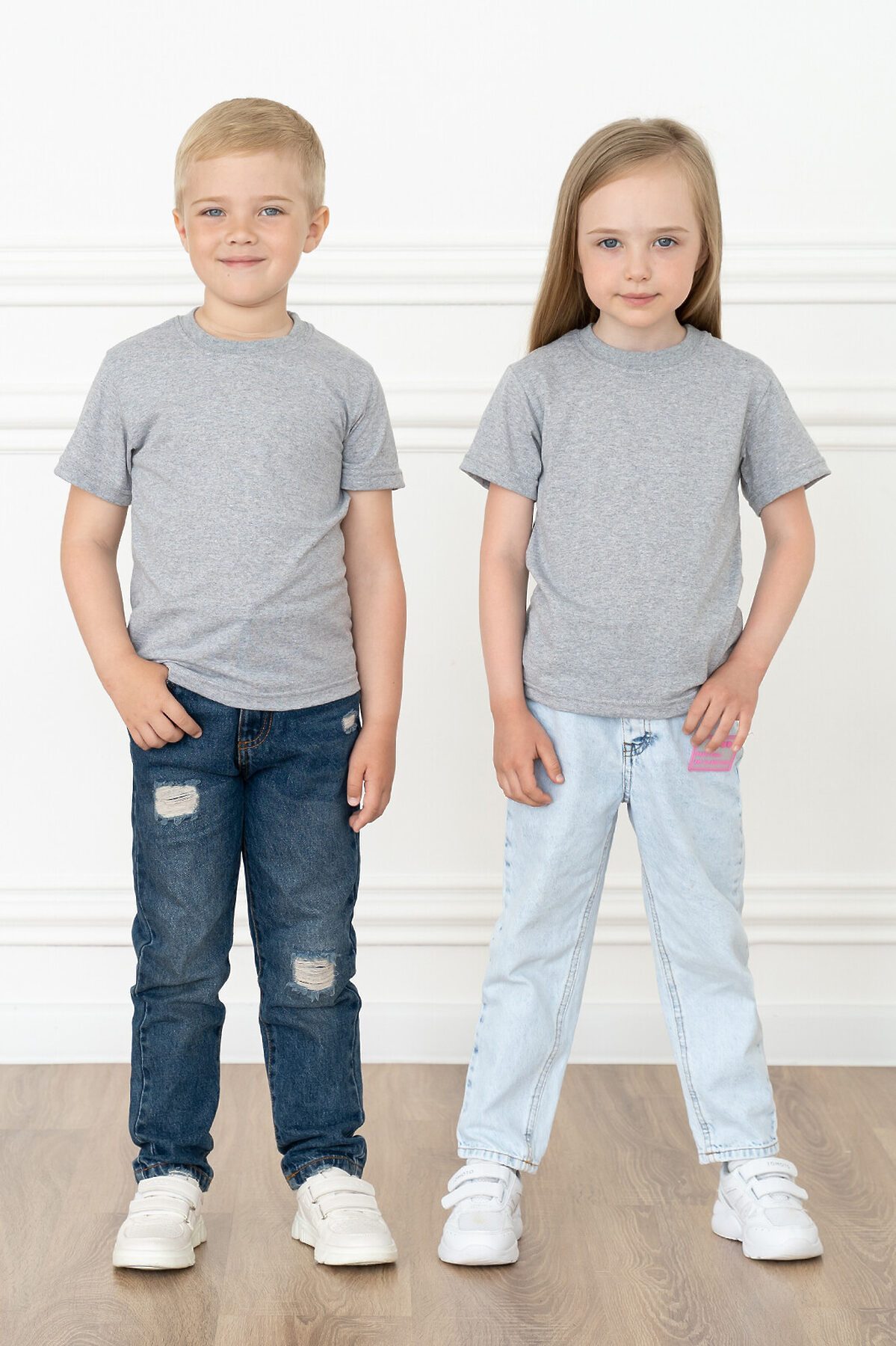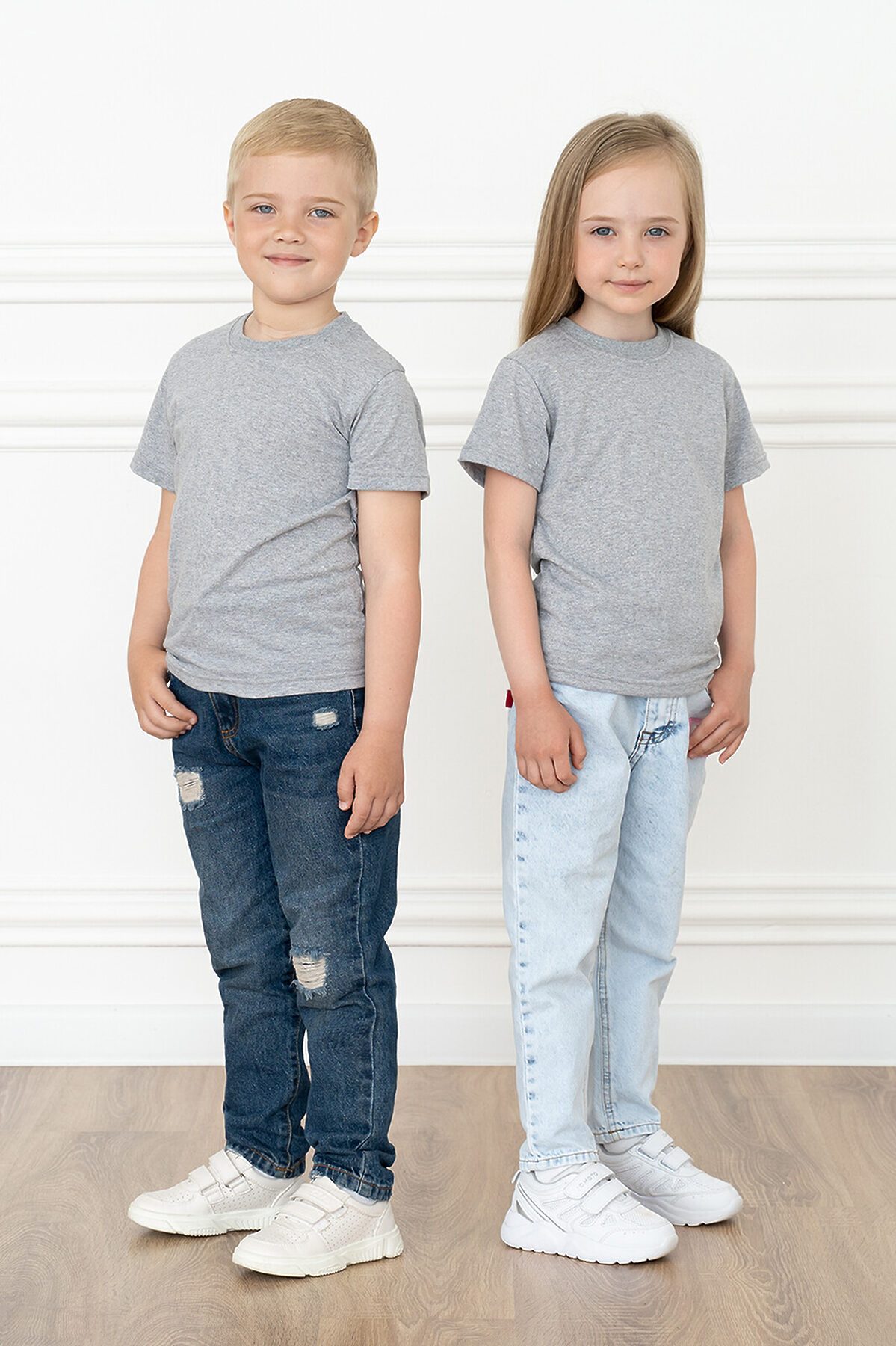 Удобный и универсальный предмет гардероба. Футболка однотонного серого цвета. Горловина отделана трикотажной бейкой. Край рукавов и низ прошиты швом вподгибку. >