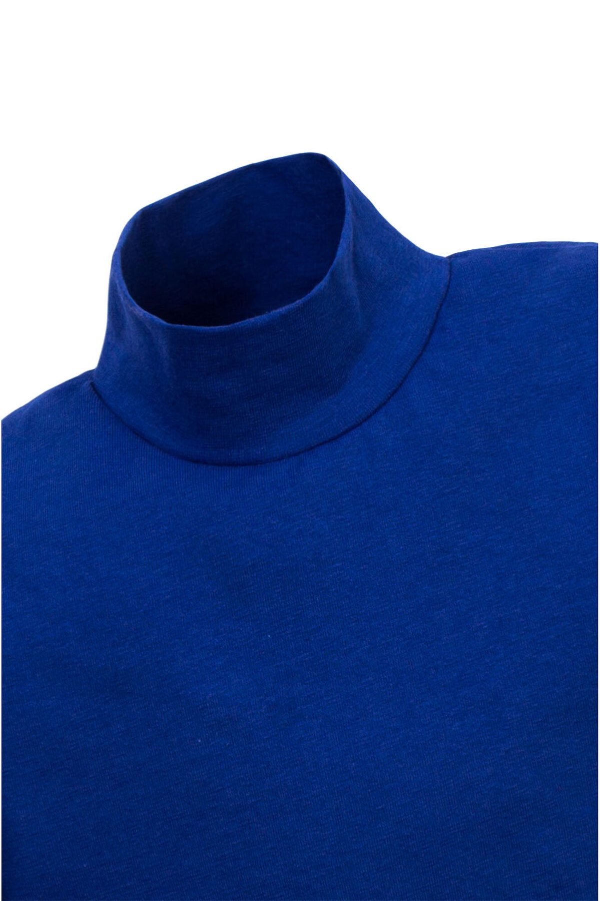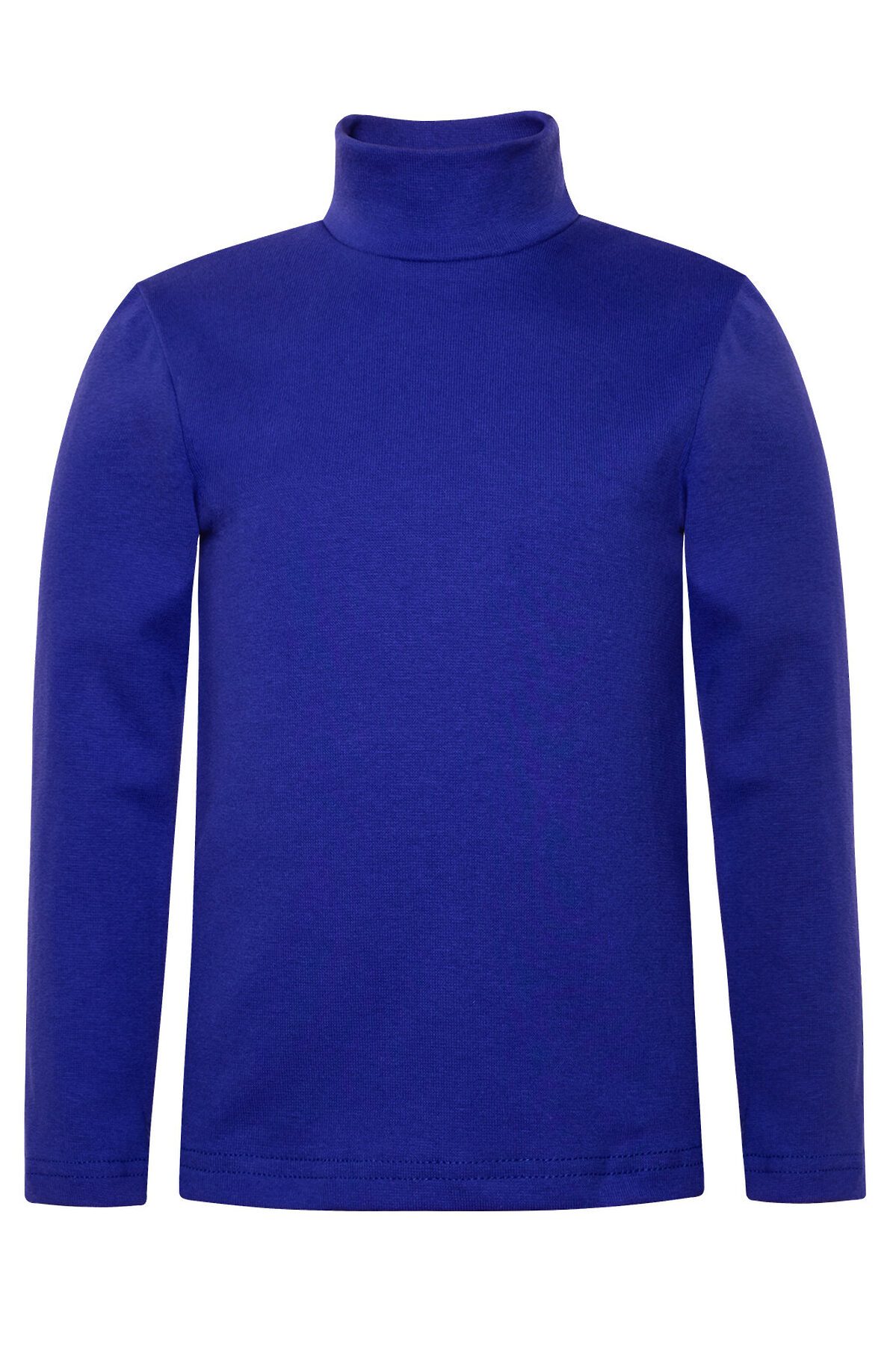 Удобная детская водолазка василькового цвета одинаково хорошо будет смотреться как с юбками, так и с брючками. Изделие сшито из хлопковой рибаны с добавлением нитей лайкры – водолазка хорошо тянется и плотно облегает тело, при этом она довольно нежная на ощупь. Небольшая двуслойная горловина надежно закрывает шею ребёнка.>