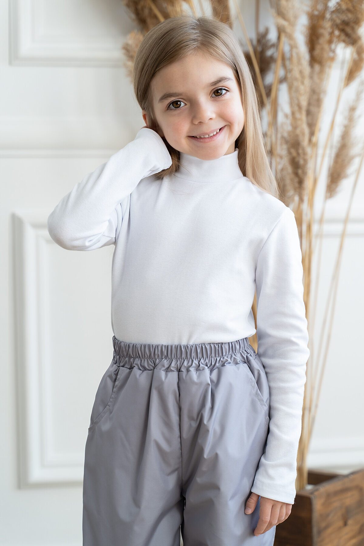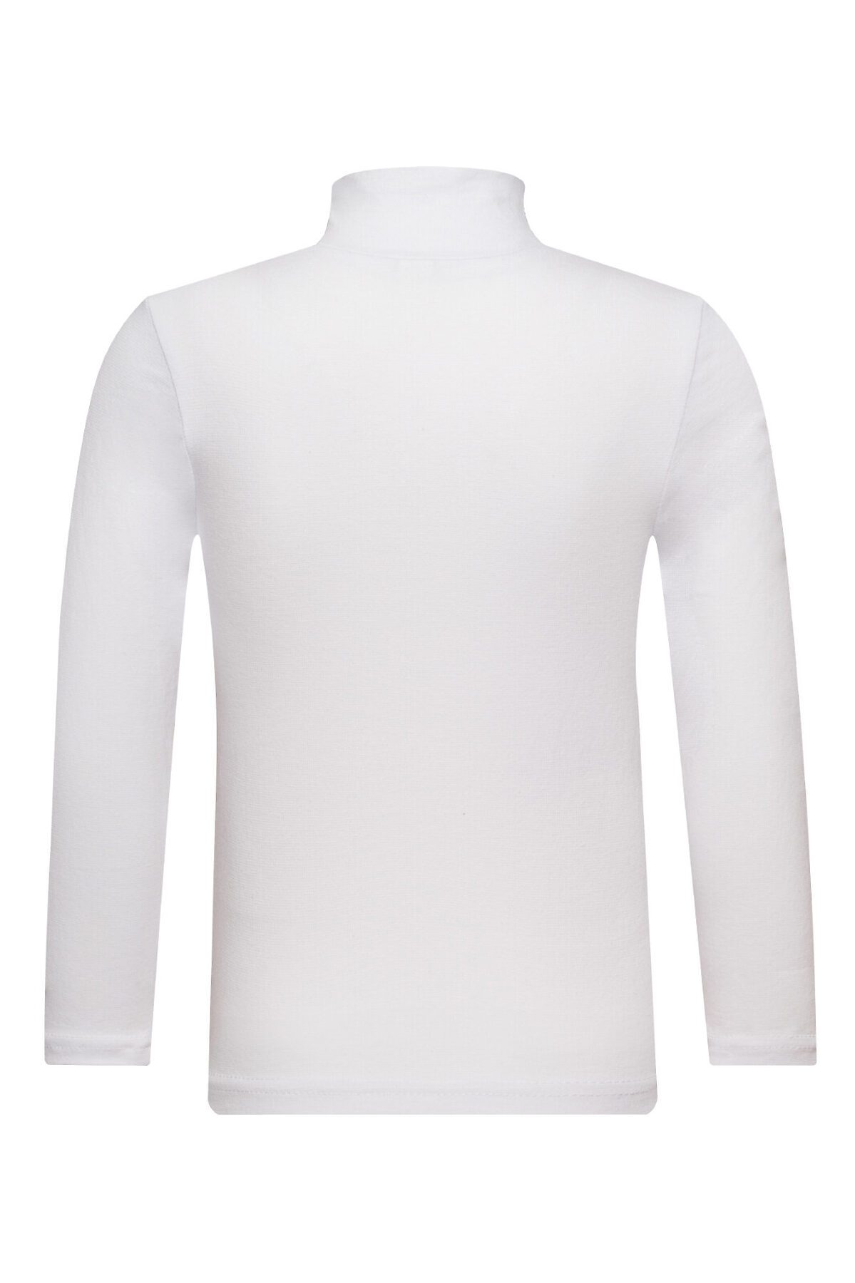 Удобная детская водолазка однотонного цвета одинаково хорошо будет смотреться как с юбками, так и с брючками. Изделие сшито из хлопковой рибаны с добавлением нитей лайкры – водолазка хорошо тянется и плотно облегает тело, при этом она довольно нежная на ощупь. Небольшая двуслойная горловина надежно закрывает шею ребёнка. >