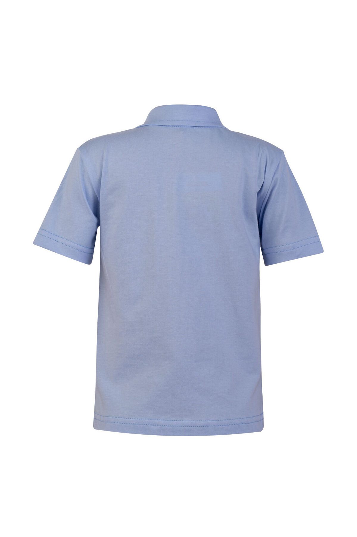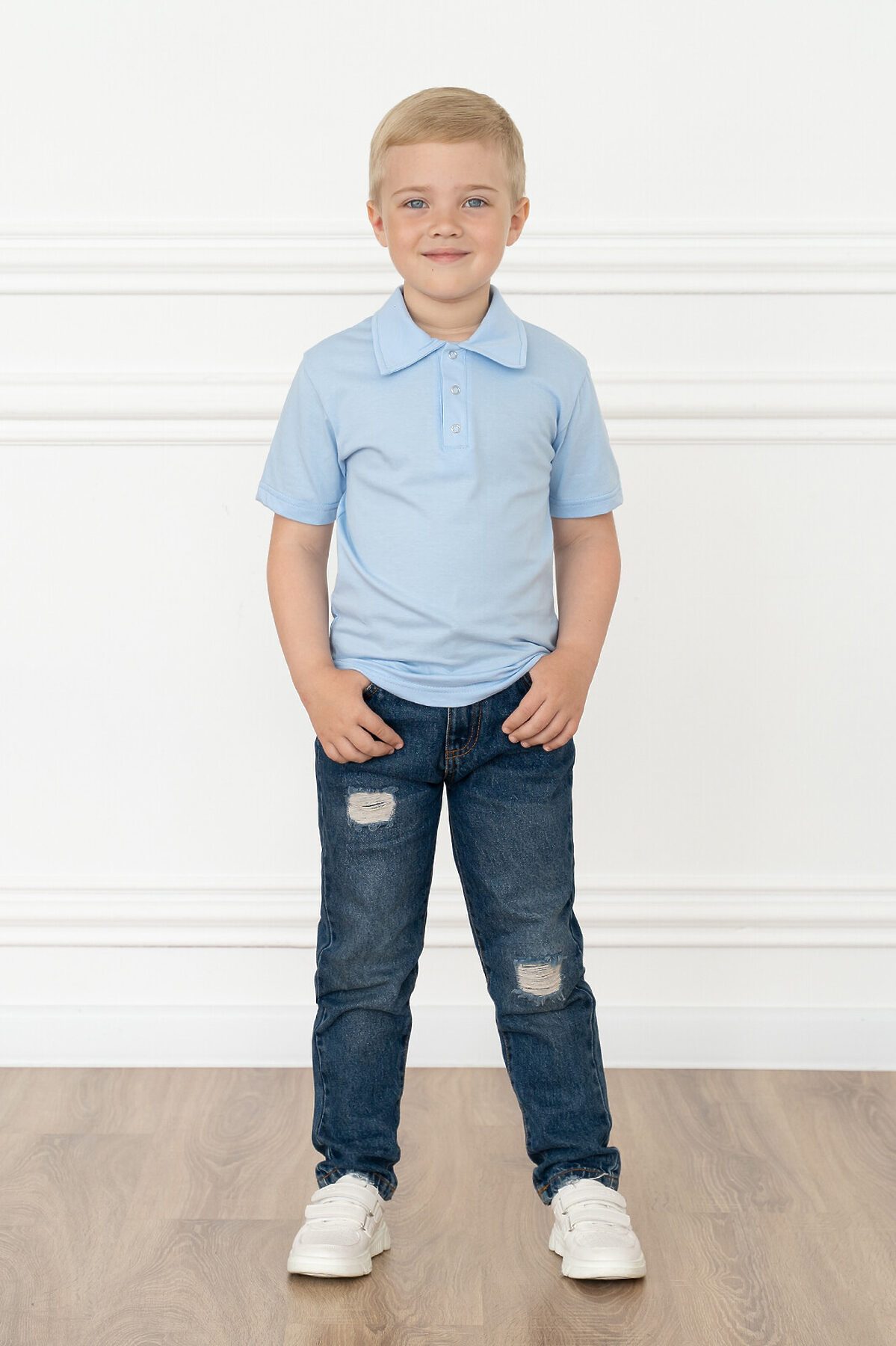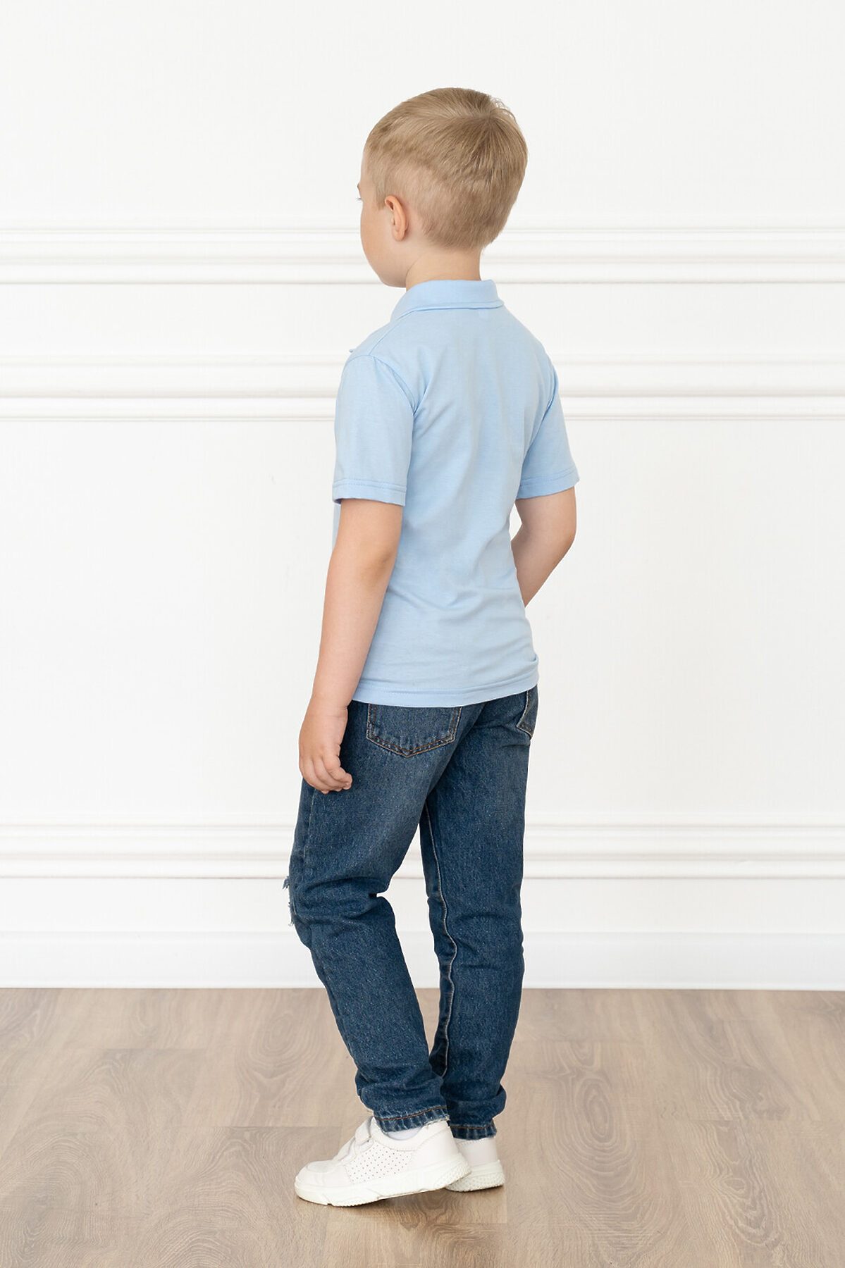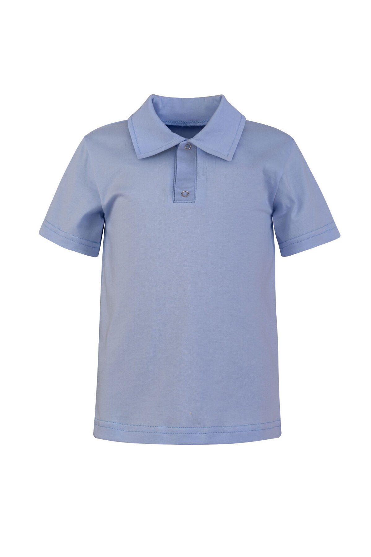 Футболка поло нежного голубого цвета с короткими рукавами понравится мальчику своим качеством и стильным дизайном. Горловина изделия обработана отложным воротником, снизу от которого расположены застёжки в стиле “поло”. Подол и края рукавов аккуратно прошиты крепкими швами. >