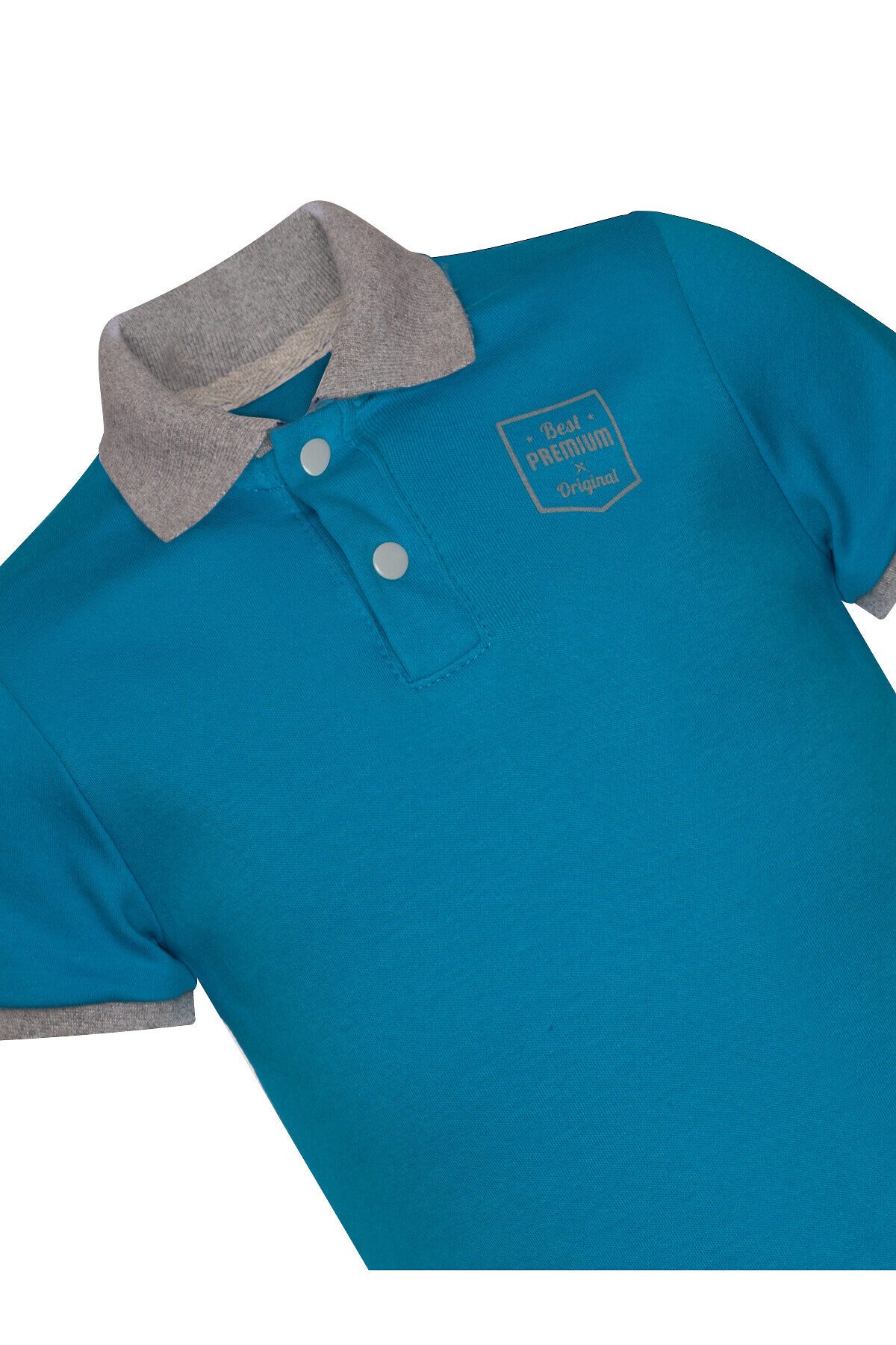 Дома или в детском саду мальчику будет удобно в трикотажном джемпере с короткими рукавами. Модель выполнена в стиле “поло”: горловина декорирована отложным воротником, под котором расположены кнопки-застёжки. Футболка-поло сшита из лёгкого, прочного и нежного на ощупь интерлока пенье. Край рукавов обработан трикотажной окантовкой. Выпускается модель в ярком бирюзовом цвете. Воротник и низ рукавов выполнены в сером цвете, сочетающимся с небольшим принтом на груди. >