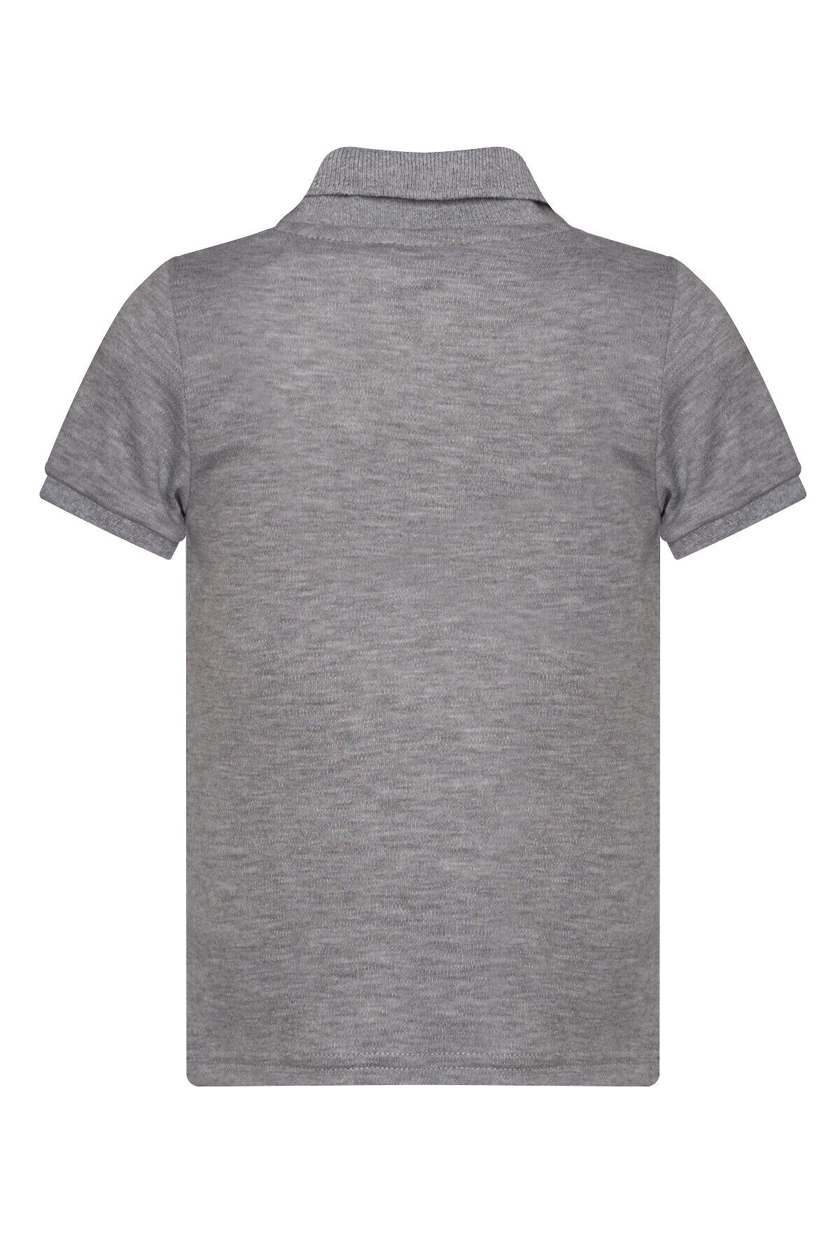 Дома или в детском саду ребенку будет удобно в трикотажной футболке с короткими рукавами. Модель выполнена в стиле “поло”: горловина декорирована отложным воротником, под котором расположены кнопки-застёжки. Футболка-поло сшита из лёгкого, прочного и нежного на ощупь интерлока пенье. Край рукавов обработан трикотажной окантовкой. Выпускается модель в сером цвете. Воротник и низ рукавов выполнены также в сером цвете, сочетающимся с небольшим принтом на груди. >
