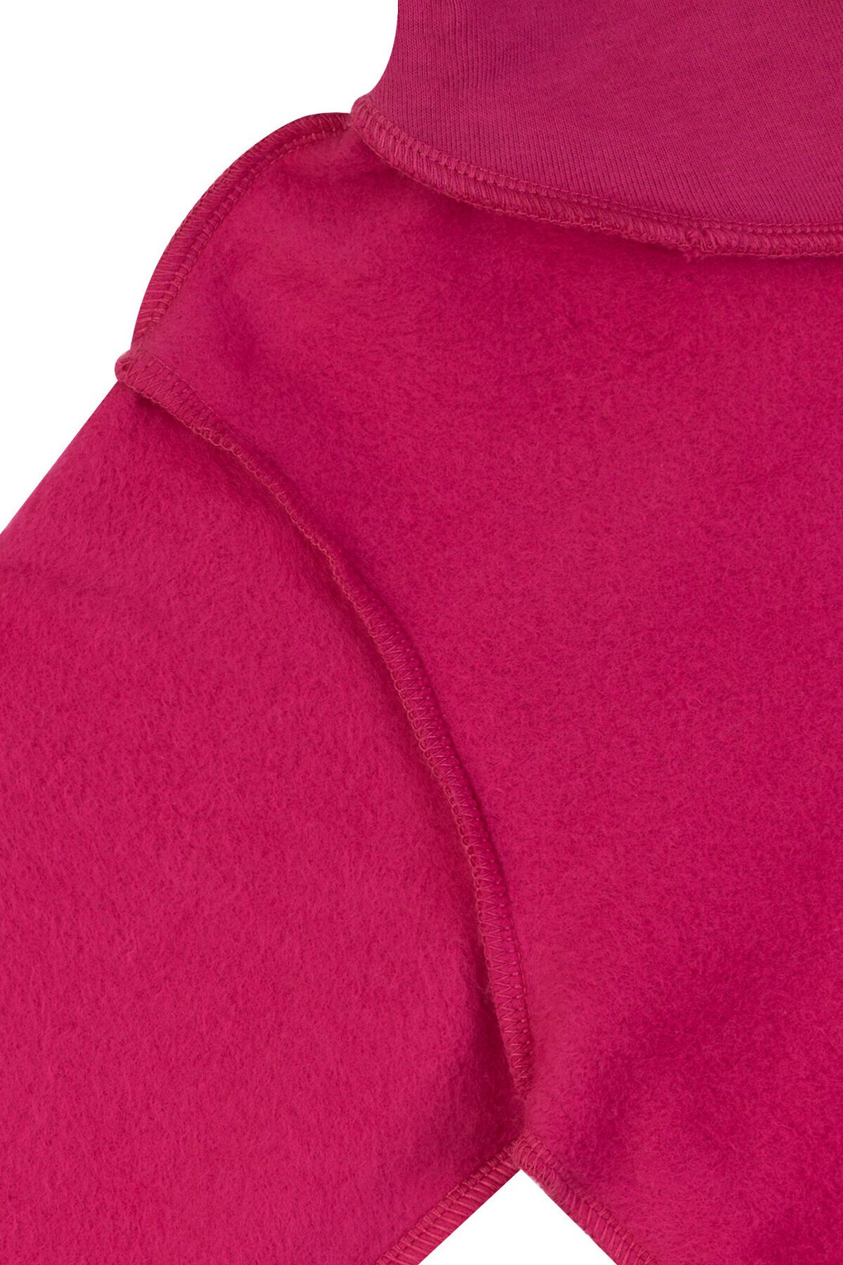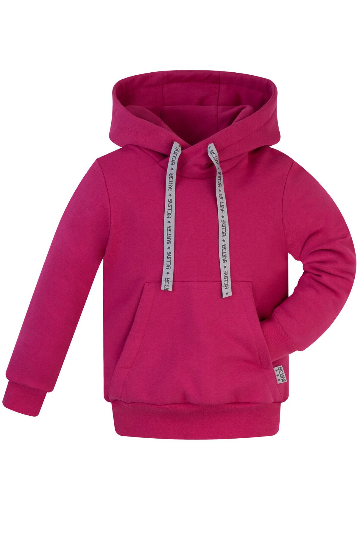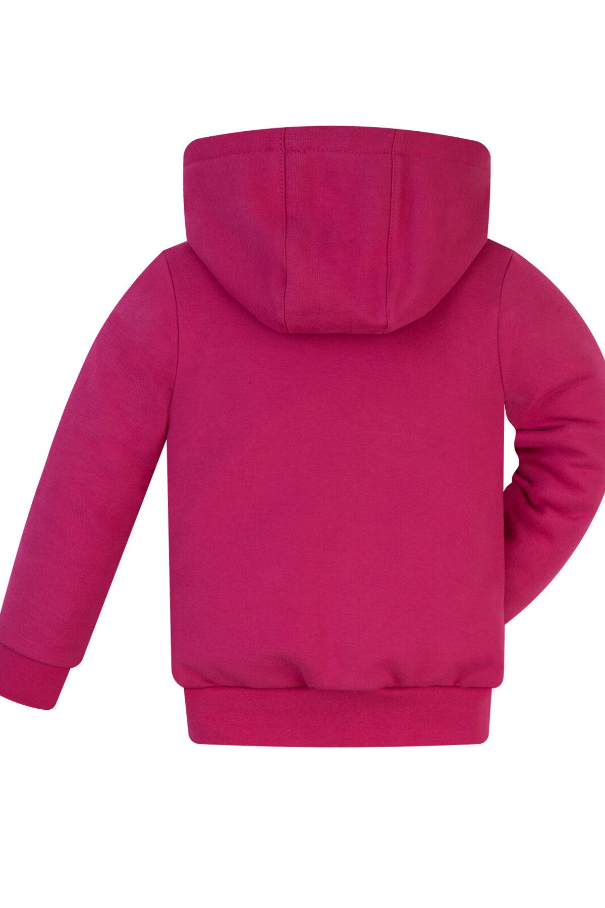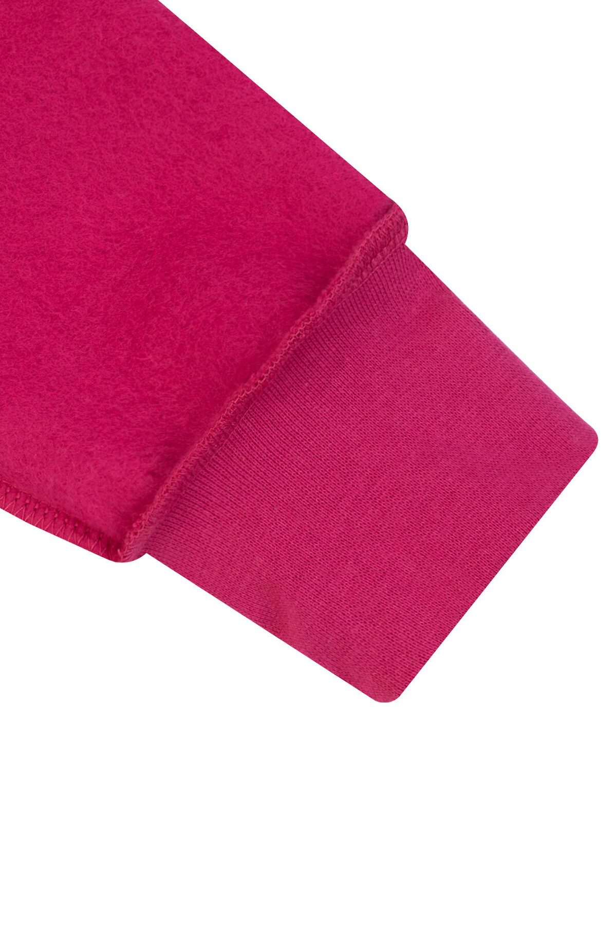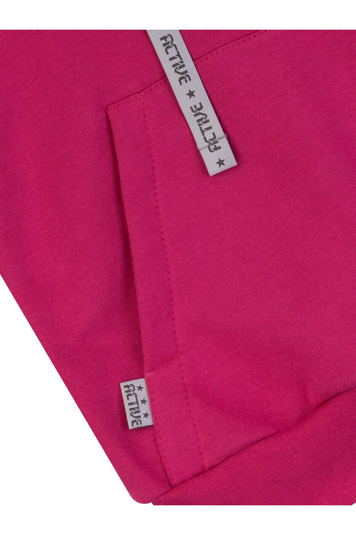 Детский спортивный костюм из однотонного футера с начесом цвета фуксии. Состоит из уютной свободной толстовки и брюк. Капюшон объемный двухслойный со шнурком для регулировки, спереди карман “кенгуру”. Штаны на широком эластичном поясе также со шнурком. По низу толстовки, штанин и рукавов эластичные манжеты. >