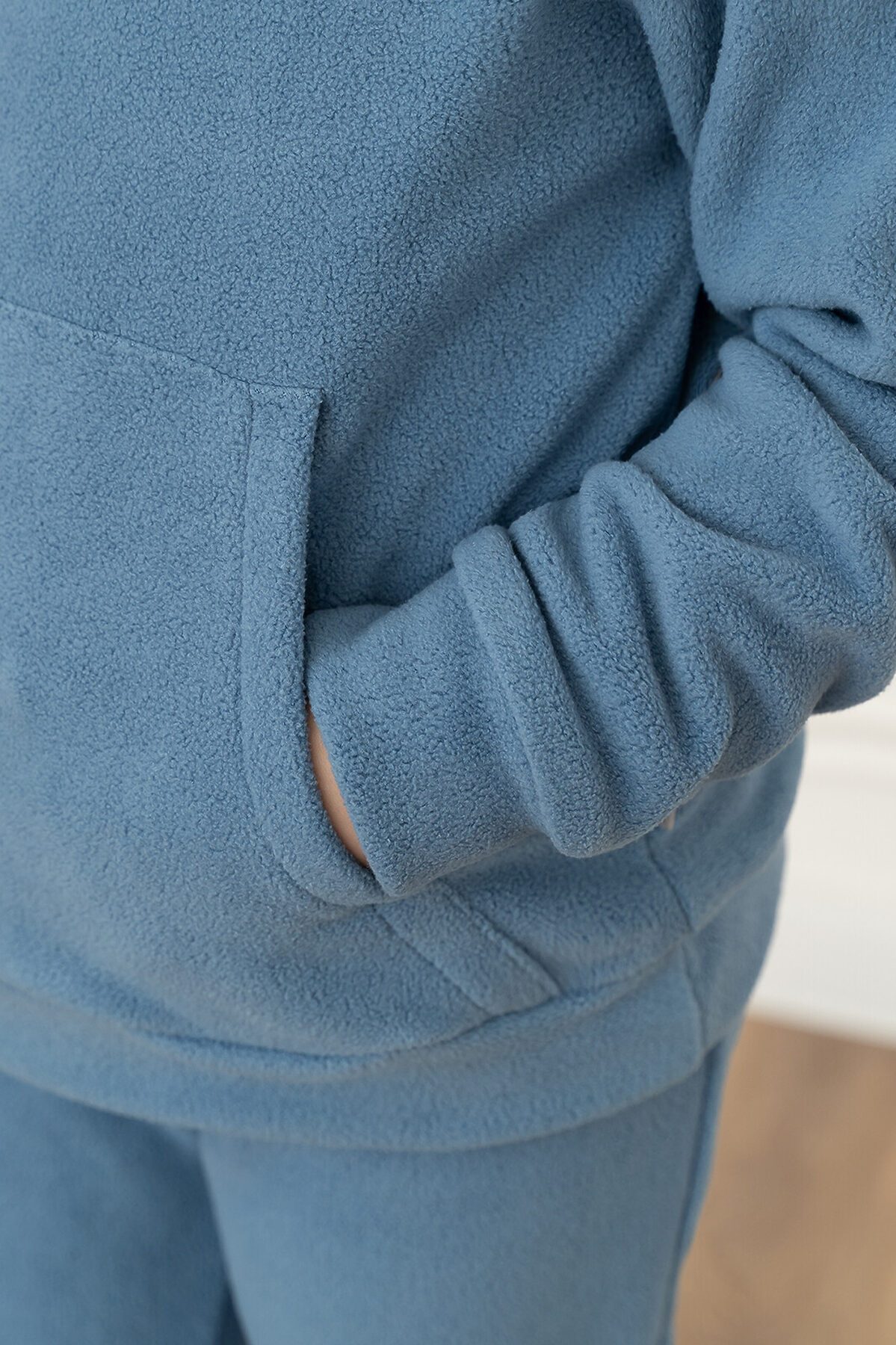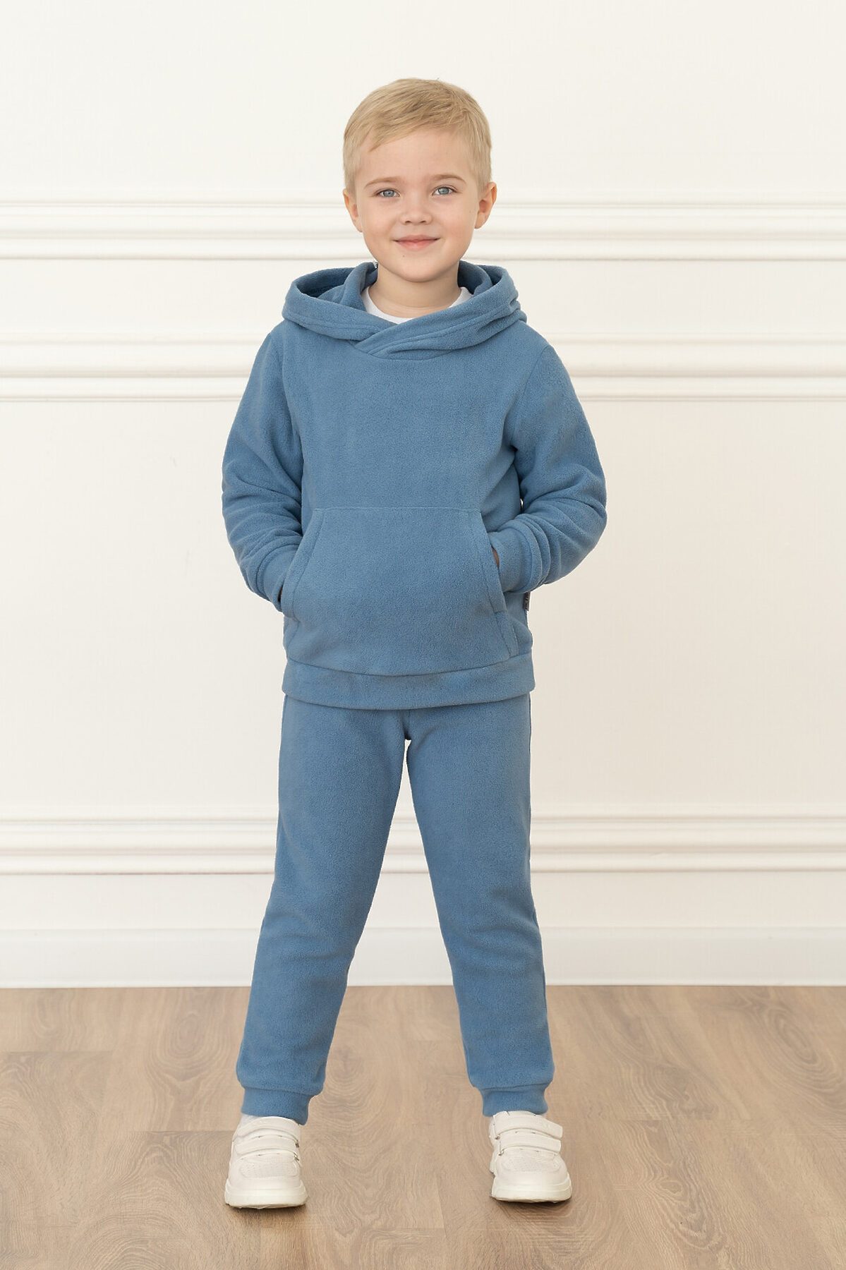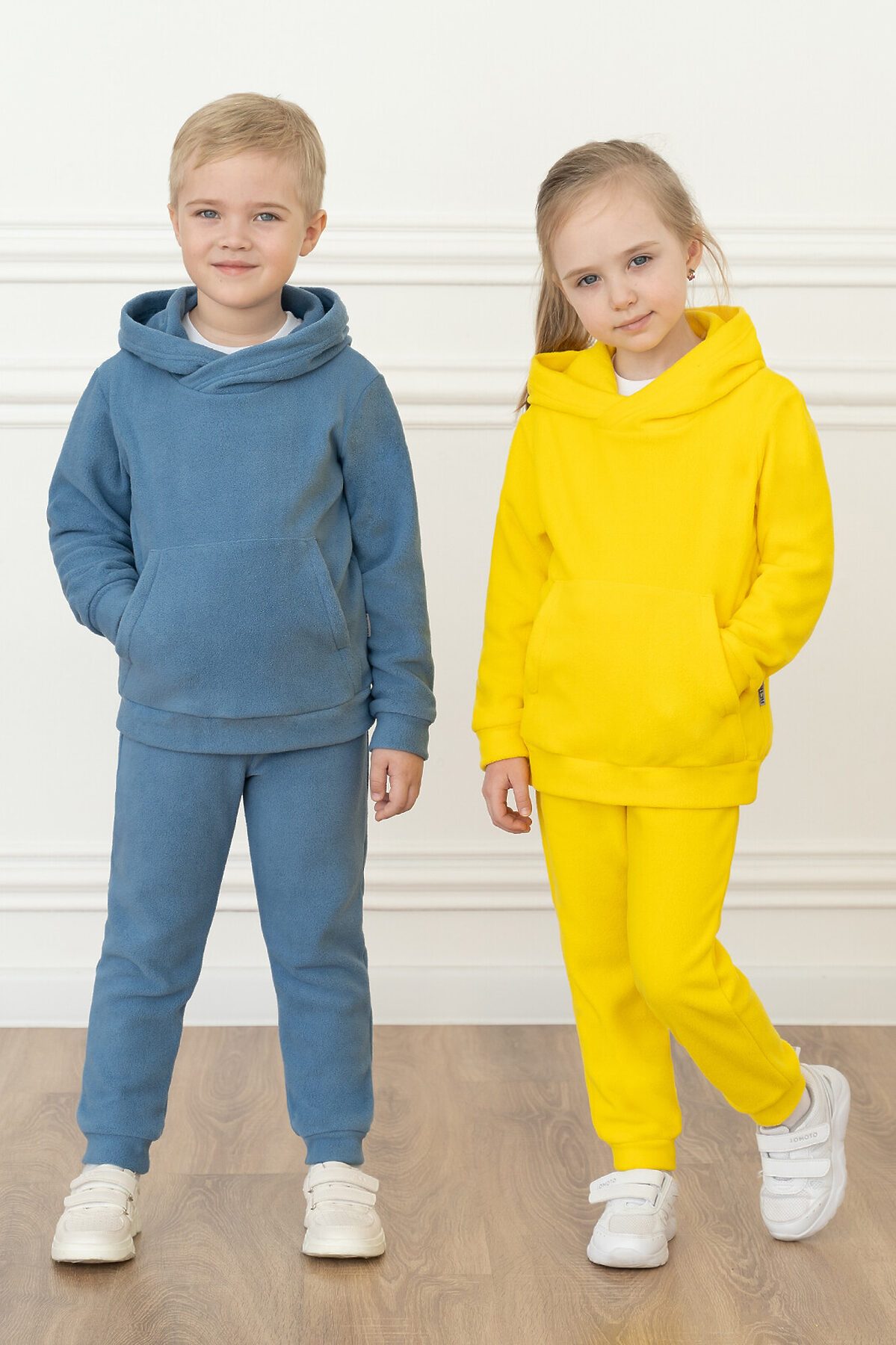 Назначение: детский комплект одежды для занятий спортом, прогулок и дома для мальчиков и девочек. Свойства ткани: прочный, мягкий на ощупь, приятный к телу, тёплый флис. Удерживает тепло и согревает даже во влажном состоянии. Особенности модели: детский флисовый костюм. Брюки на резинке в поясе, манжеты на штанинах. Толстовка с капюшоном и карманом-кенгуру. Низ и рукава на манжете. Костюм сшит в однотонном цвете джинс. >