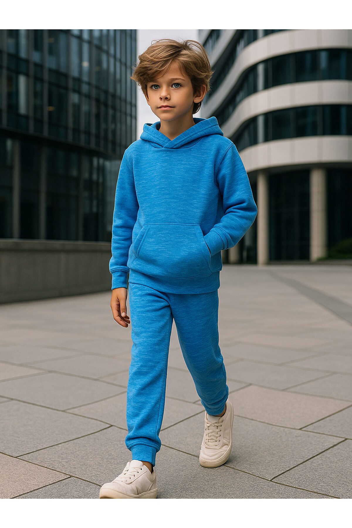 Флисовый костюм предназначен детям для повседневной носки в качестве самостоятельной вещи прохладным летом и тёплой весной или в качестве поддёвы под детскую верхнюю одежду зимой и осенью. Костюм для детей выполнен из тёплого, износостойкого, мягкого на ощупь флиса (100% полиэстер), который хорошо согревает в холодную погоду. Детский костюм состоит из толстовки и брюк. Толстовка с карманом-кенгуру, капюшоном, манжетами по низу и на рукавах. Брюки на резинке в поясе (можно регулировать через отверстие сбоку) и с манжетами на штанинах. Костюм однотонного бирюзового цвета с меланжевым эффектом – комплект одежды смотрится стильно и отлично подойдёт в качестве подарка, для носки в детский сад, в школу, на прогулки, для активного отдыха. >