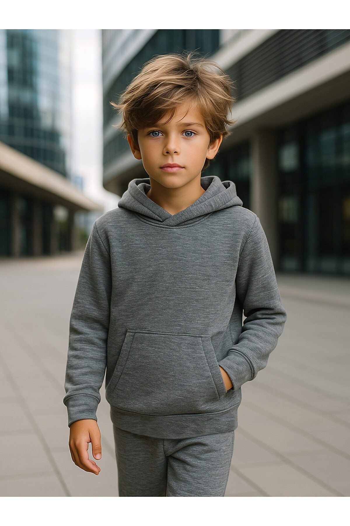 Флисовый костюм предназначен детям для повседневной носки в качестве самостоятельной вещи прохладным летом и тёплой весной или в качестве поддёвы под детскую верхнюю одежду зимой и осенью. Костюм для детей выполнен из тёплого, износостойкого, мягкого на ощупь флиса (100% полиэстер), который хорошо согревает в холодную погоду. Детский костюм состоит из толстовки и брюк. Толстовка с карманом-кенгуру, капюшоном, манжетами по низу и на рукавах. Брюки на резинке в поясе (можно регулировать через отверстие сбоку) и с манжетами на штанинах. Костюм однотонного серого цвета с меланжевым эффектом – комплект одежды смотрится стильно и отлично подойдёт в качестве подарка, для носки в детский сад, в школу, на прогулки, для активного отдыха. >