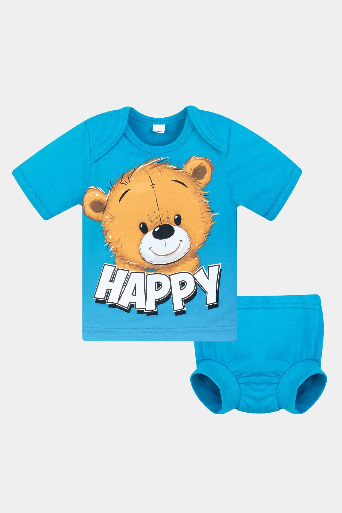 Комплект (Футболка+Трусики) УТЁНОК, бирюза_мишка_сердечки