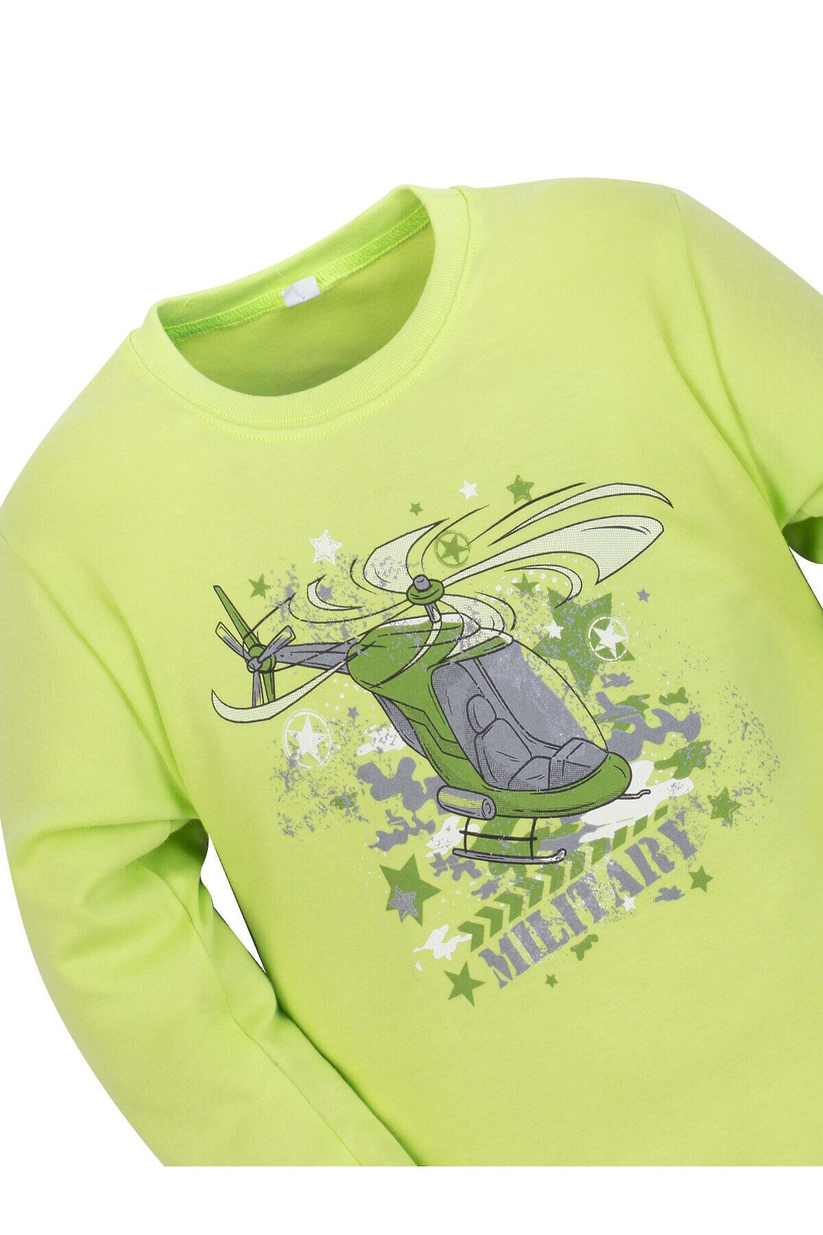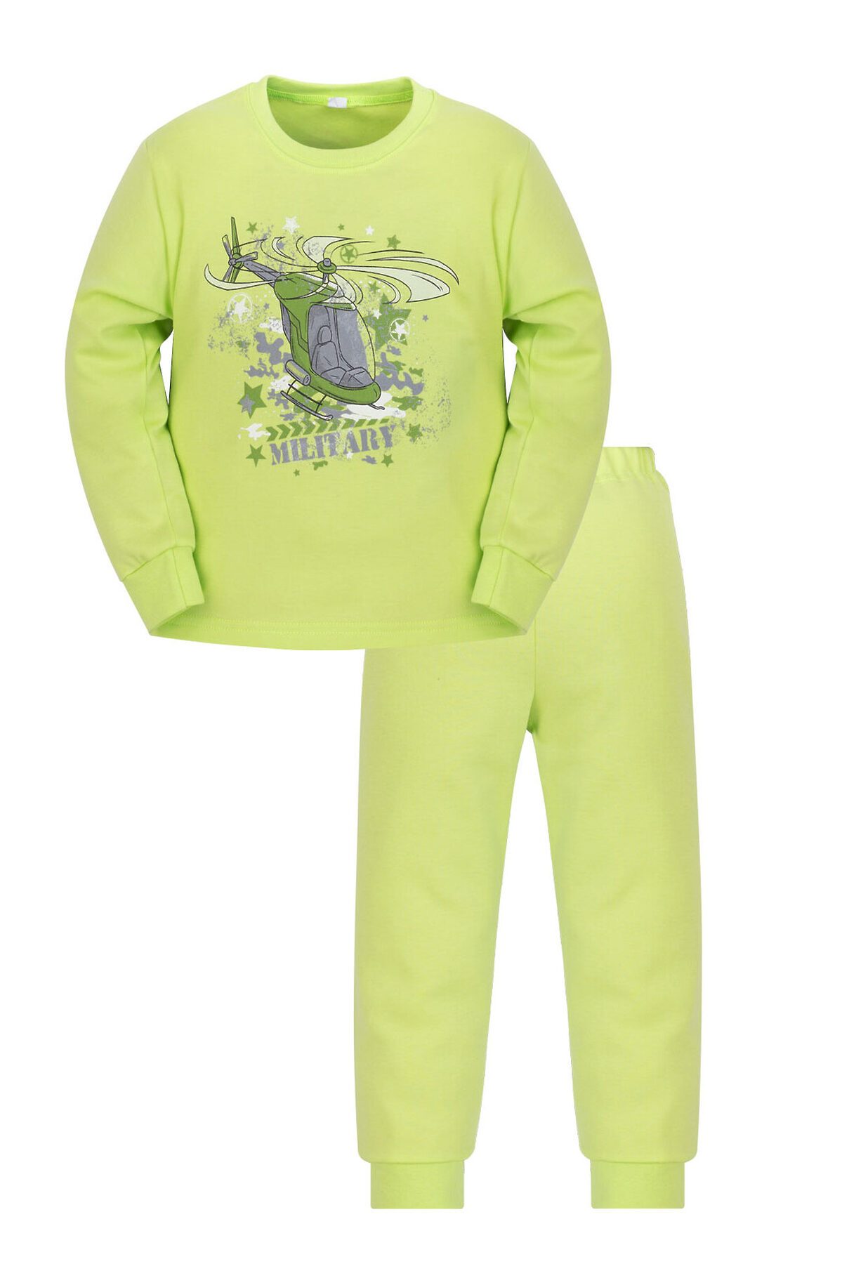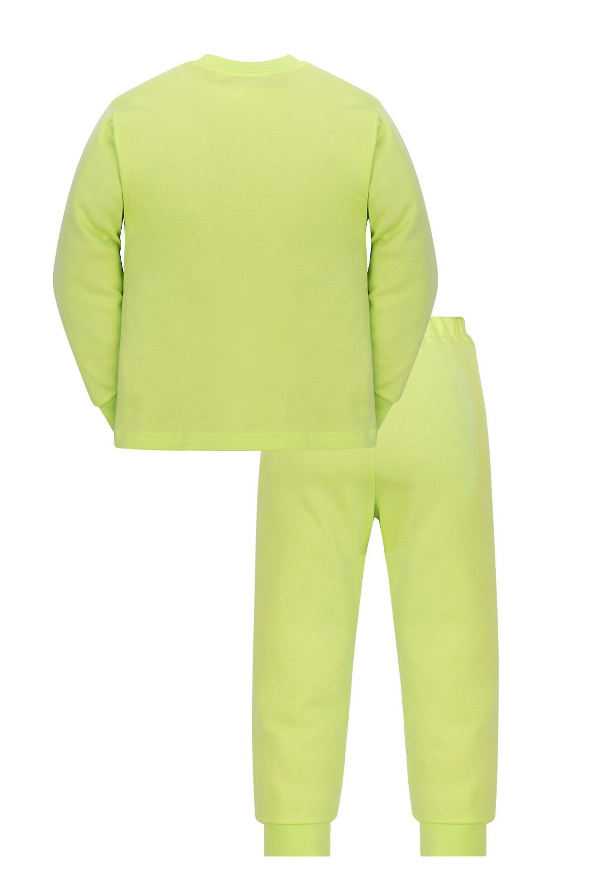 Назначение: одежда для сна, детская пижама, пижама для мальчика, пижама для девочки, пижама в детский сад, пижамный комплект. Посадка по фигуре: прямого кроя. Свойства ткани: приятная и нежная на ощупь, плотная, эластичная, износостойкая. Особенности модели: двухслойные манжеты на рукавах и на штанинах. Эластичная горловина у свитшота. Пояс брюк на резинке. Комплект сшит в однотонном цвете, спереди большой принт. >