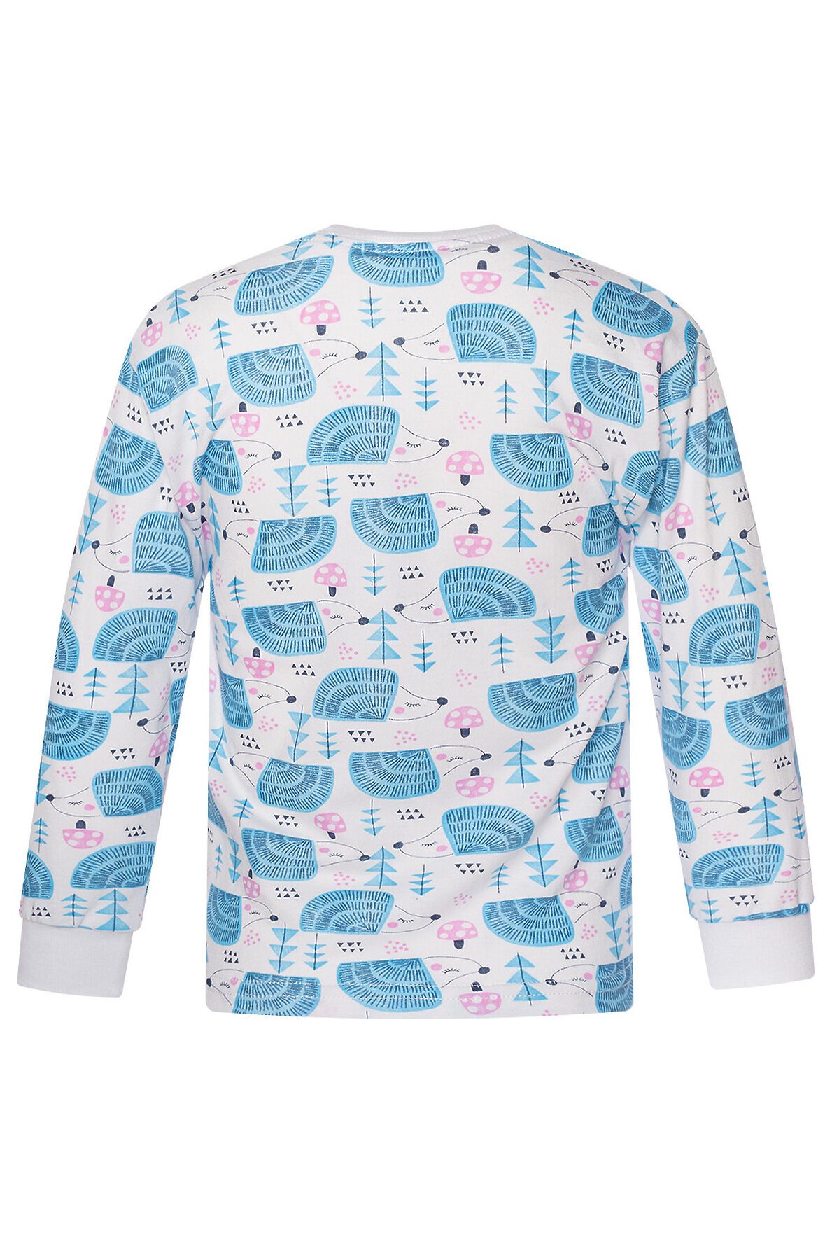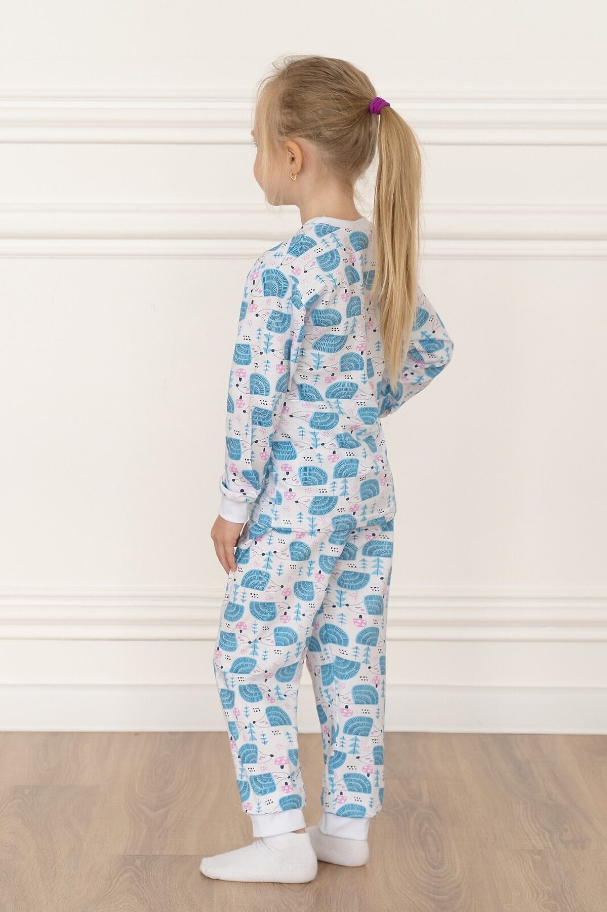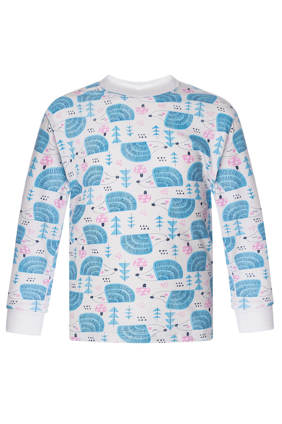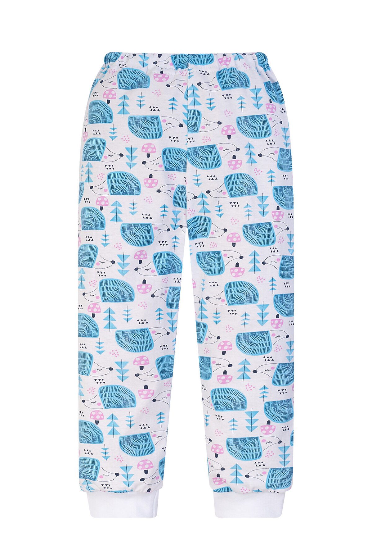Легкая детская пижама из хлопковой дышащей кулирки белого цвета. Универсальный узор бирюзовые ежики подойдет мальчикам и девочкам. Комплект из свитшота с длинными рукавами и брючек на поясе с резинкой. Для лучшей посадки по низу штанин и рукавов манжеты. >