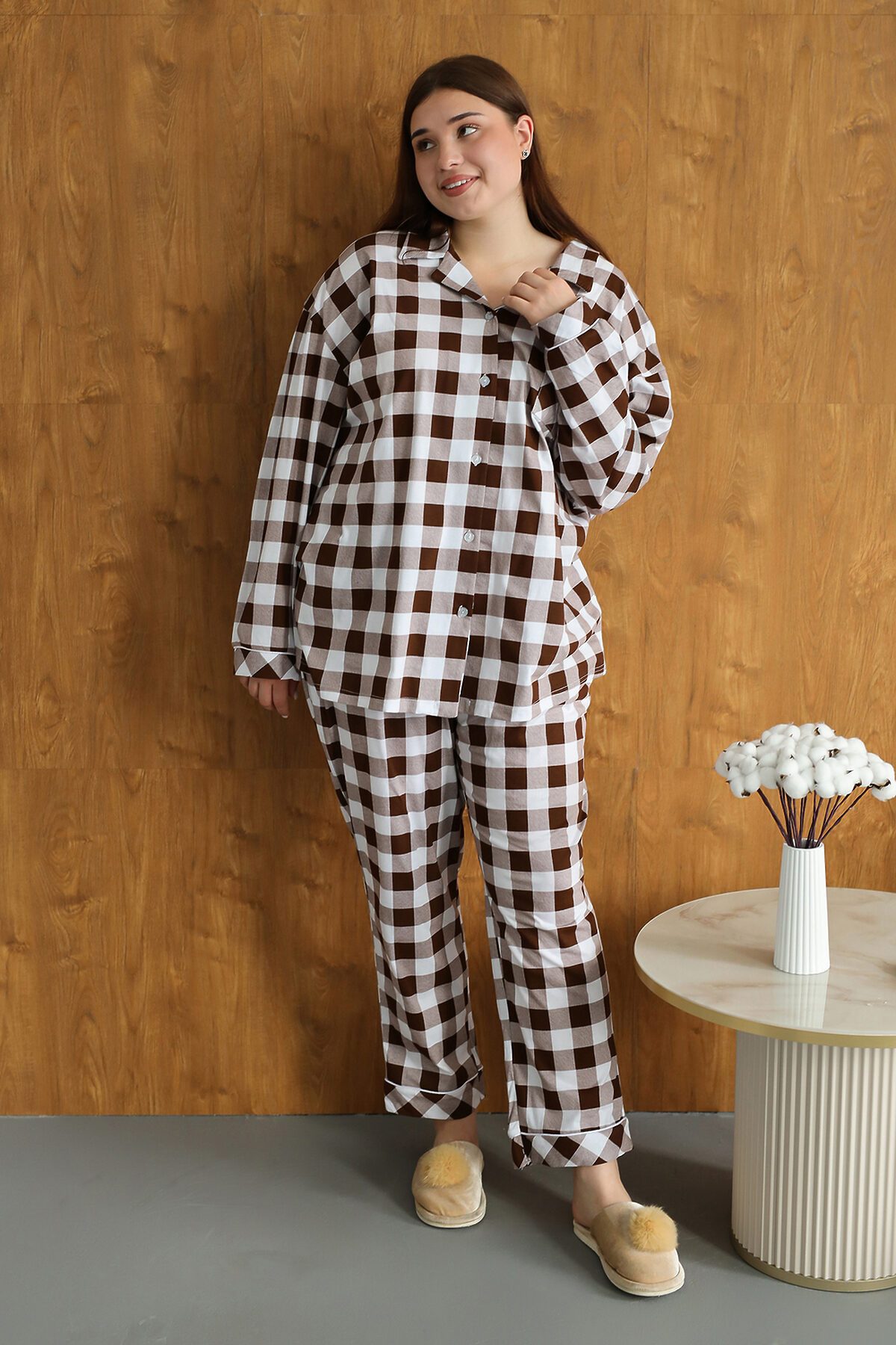 Представляем вам уютную и стильную пижаму, созданную специально для женщин, ценящих комфорт и элегантность. Эта пижама станет идеальным выбором для холодных зимних вечеров, обеспечивая вам тепло и уют в любое время суток. Она сшита из 100% хлопка, что гарантирует мягкость, приятную тактильность и комфорт при ношении. Модель выполнена в классическом клетчатом дизайне, который никогда не выходит из моды. Пижама состоит из стильной рубашки с длинными рукавами на пуговицах и просторных брюк с высокой посадкой, обеспечивая свободу движений и максимальный комфорт. Благодаря свободному крою и мягкой ткани, эта пижама идеально подходит для женщин больших размеров, обеспечивая им комфорт и уверенность. Она станет отличным подарком на Рождество для любимых женщин, а также прекрасным вариантом для ношения в больнице или дома.