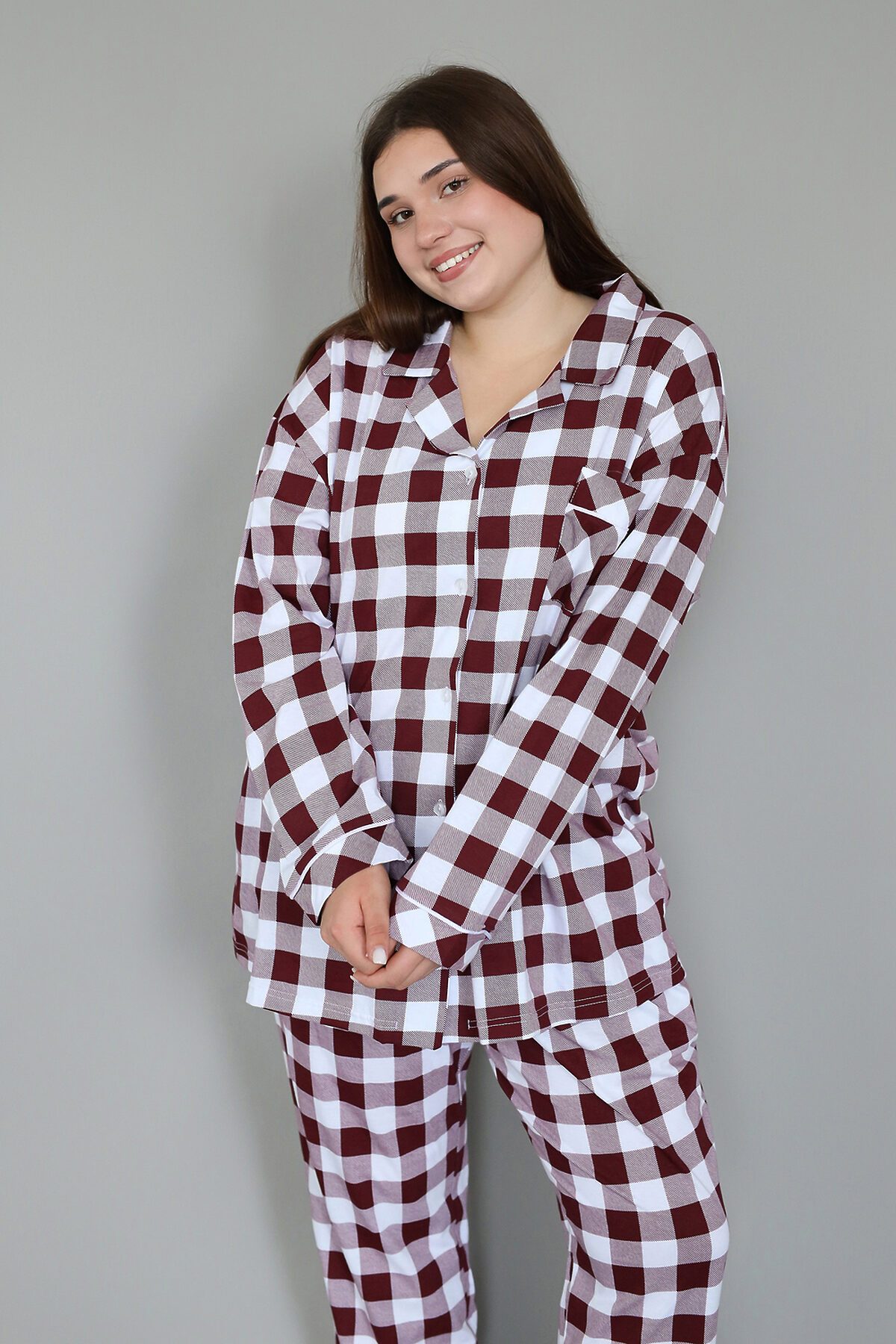 Представляем вам уютную и стильную пижаму, созданную специально для женщин, ценящих комфорт и элегантность. Эта пижама станет идеальным выбором для холодных зимних вечеров, обеспечивая вам тепло и уют в любое время суток. Она сшита из 100% хлопка, что гарантирует мягкость, приятную тактильность и комфорт при ношении. Модель выполнена в классическом клетчатом дизайне, который никогда не выходит из моды. Пижама состоит из стильной рубашки с длинными рукавами на пуговицах и просторных брюк с высокой посадкой, обеспечивая свободу движений и максимальный комфорт. Благодаря свободному крою и мягкой ткани, эта пижама идеально подходит для женщин больших размеров, обеспечивая им комфорт и уверенность. Она станет отличным подарком на Рождество для любимых женщин, а также прекрасным вариантом для ношения в больнице или дома.