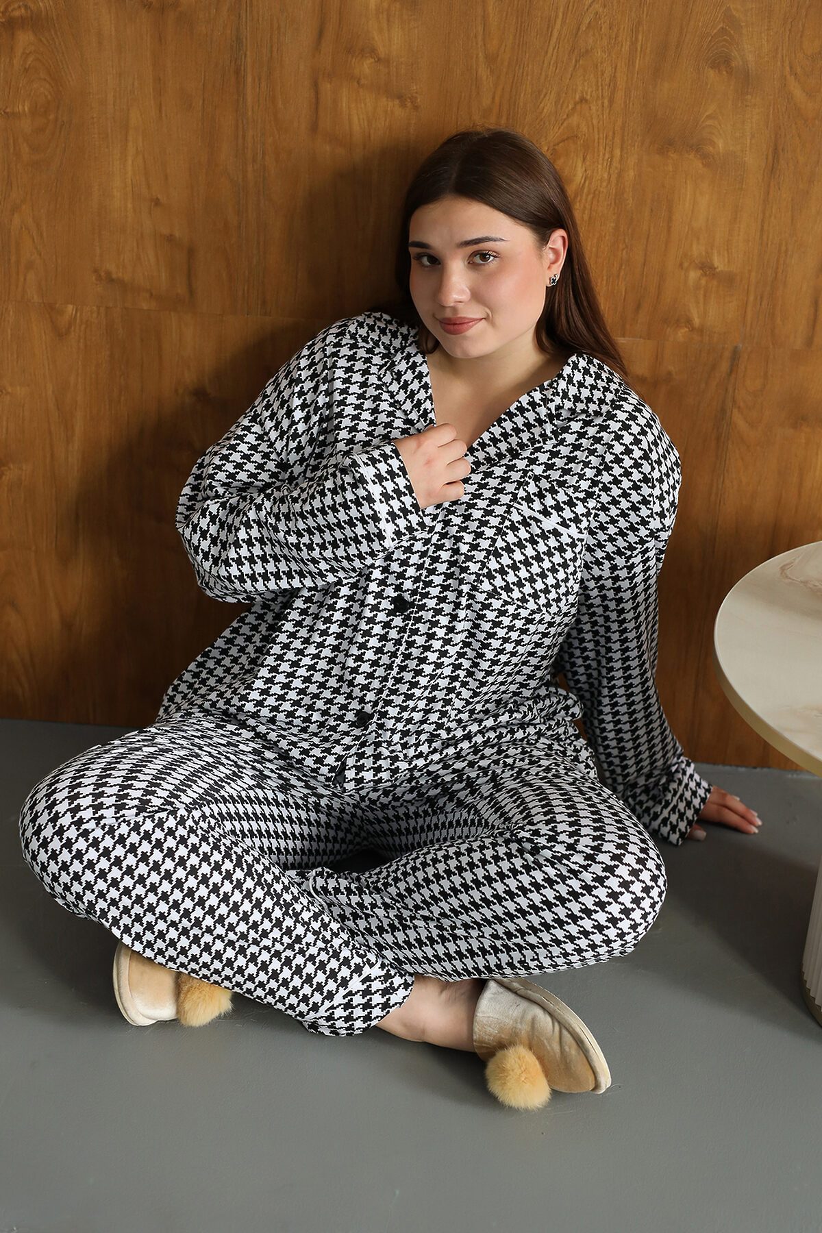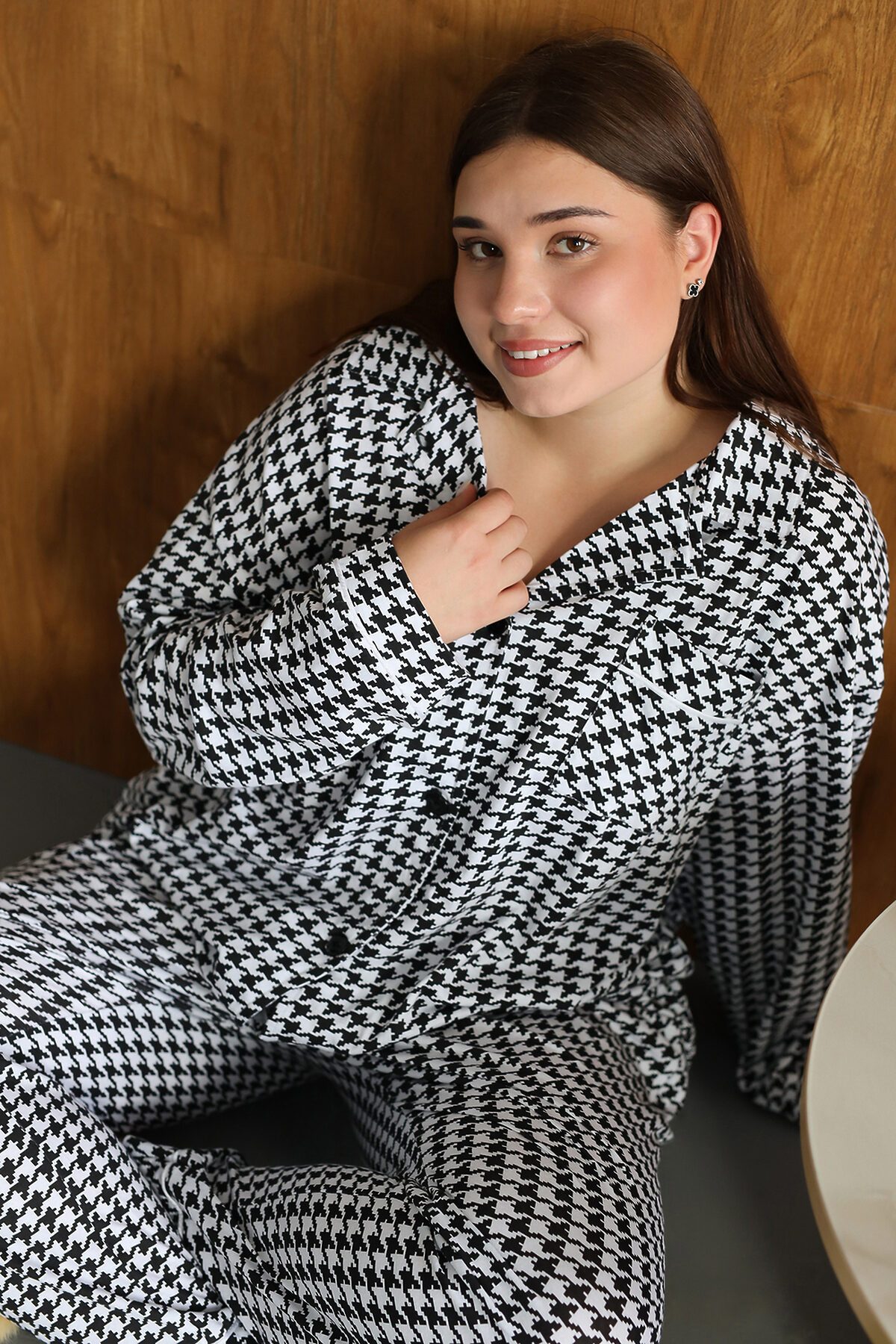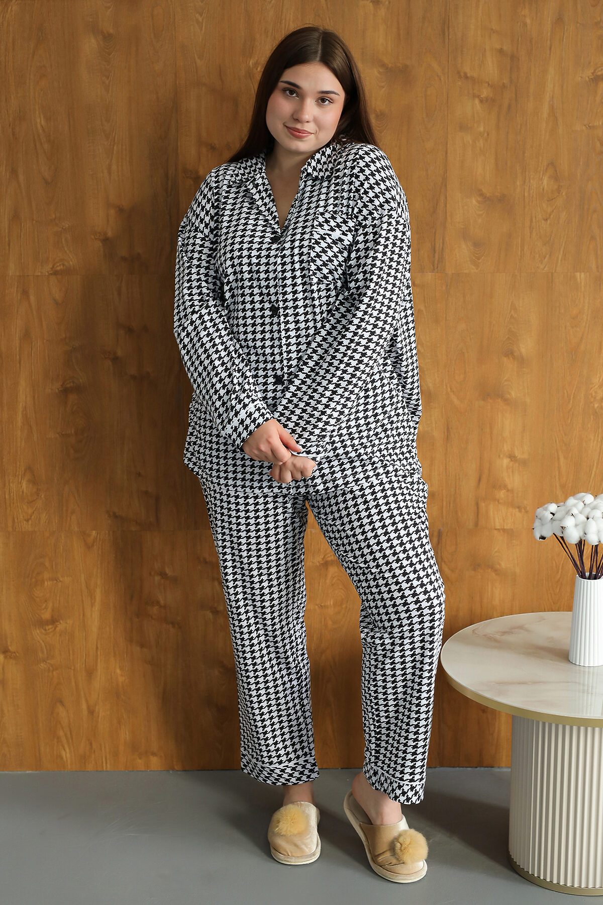 Представляем вам уютную и стильную пижаму, созданную специально для женщин, ценящих комфорт и элегантность. Эта пижама станет идеальным выбором для холодных зимних вечеров, обеспечивая вам тепло и уют в любое время суток. Она сшита из 100% хлопка, что гарантирует мягкость, приятную тактильность и комфорт при ношении. Модель выполнена в классическом клетчатом дизайне, который никогда не выходит из моды. Пижама состоит из стильной рубашки с длинными рукавами на пуговицах и просторных брюк с высокой посадкой, обеспечивая свободу движений и максимальный комфорт. Благодаря свободному крою и мягкой ткани, эта пижама идеально подходит для женщин больших размеров, обеспечивая им комфорт и уверенность. Она станет отличным подарком на Рождество для любимых женщин, а также прекрасным вариантом для ношения в больнице или дома.