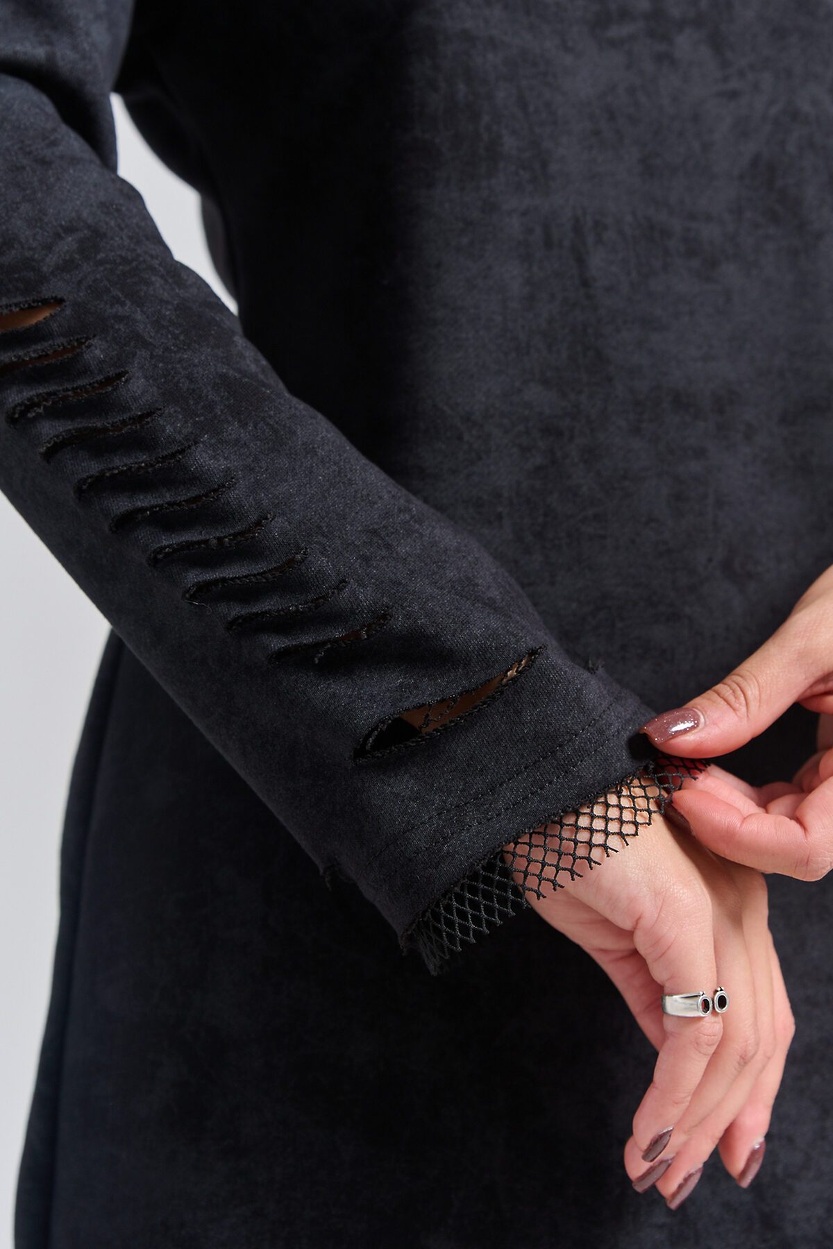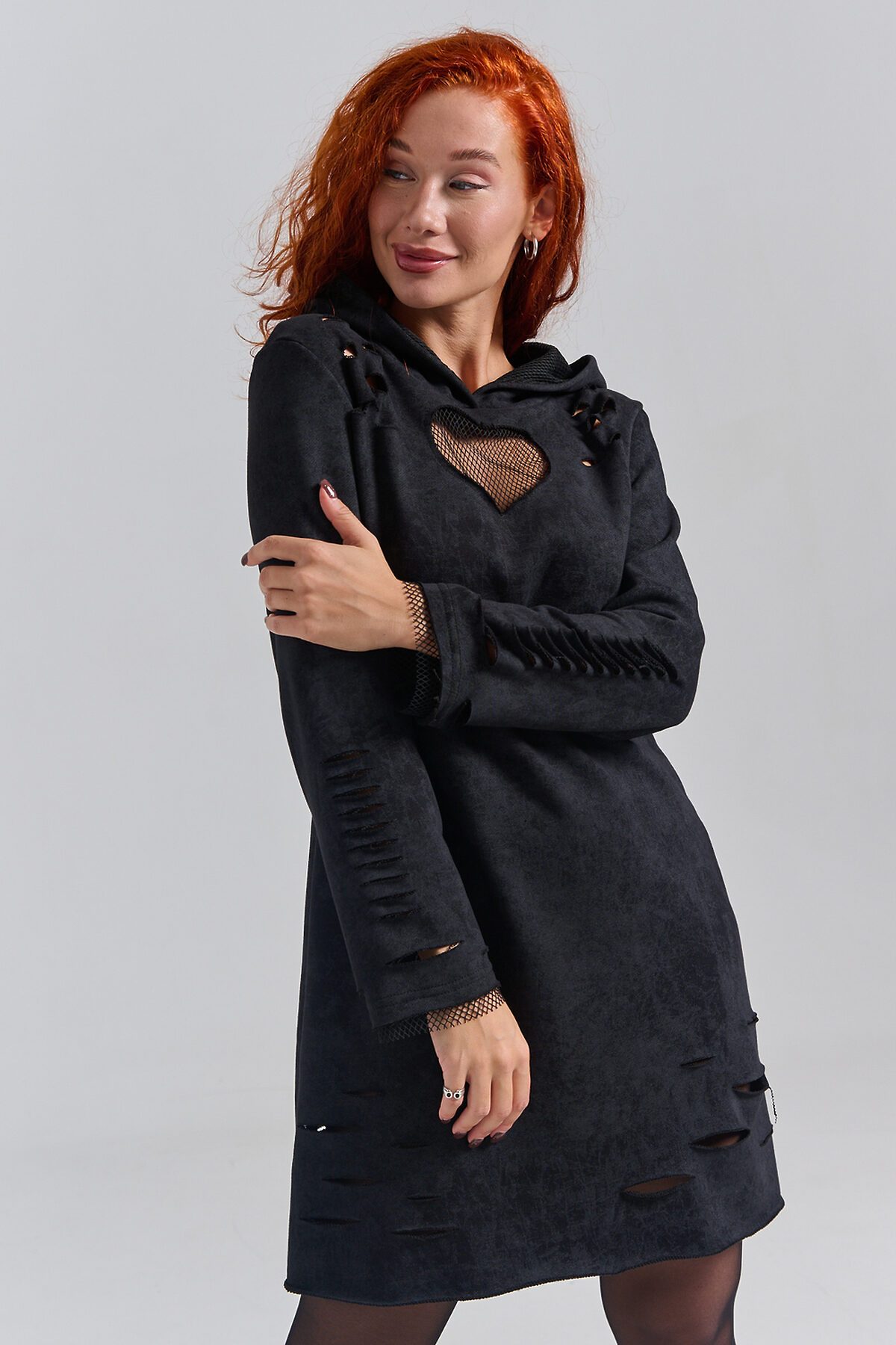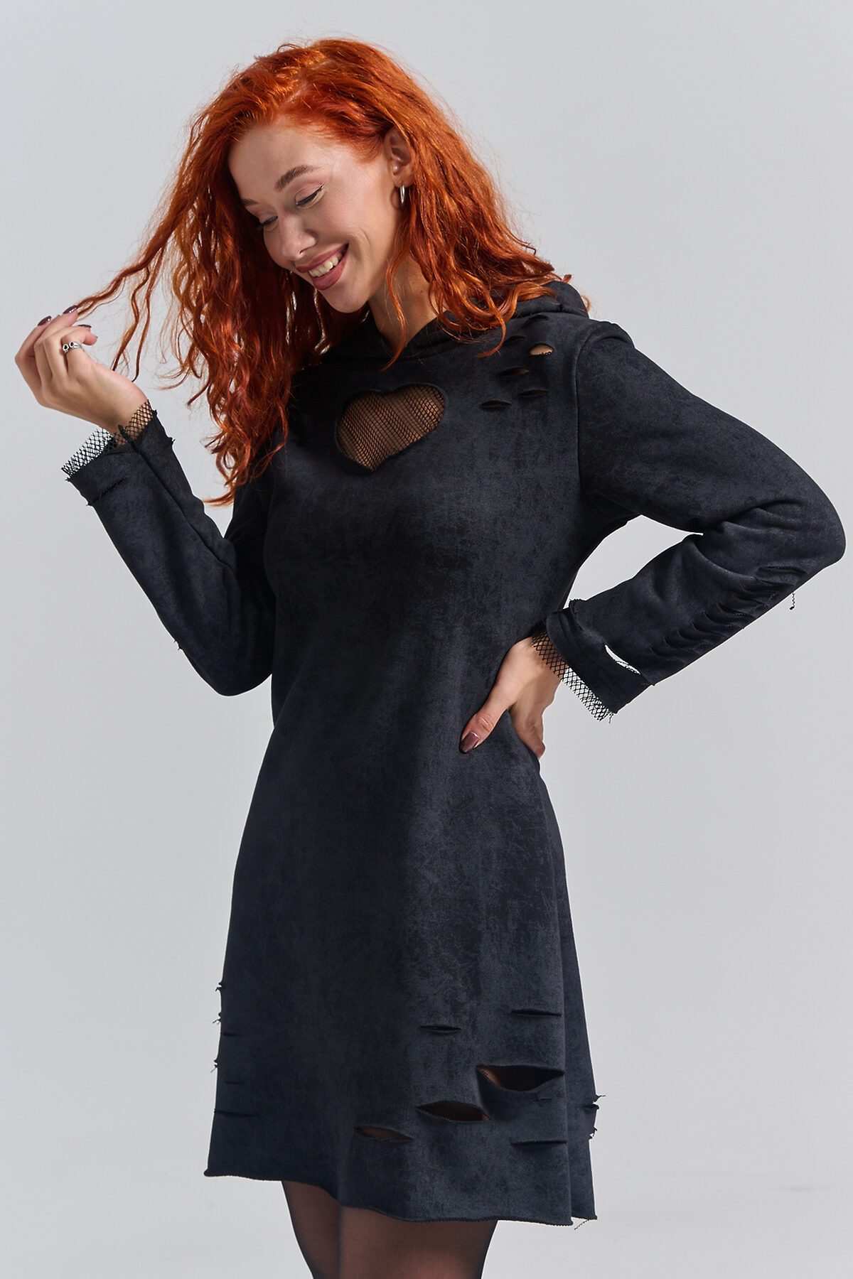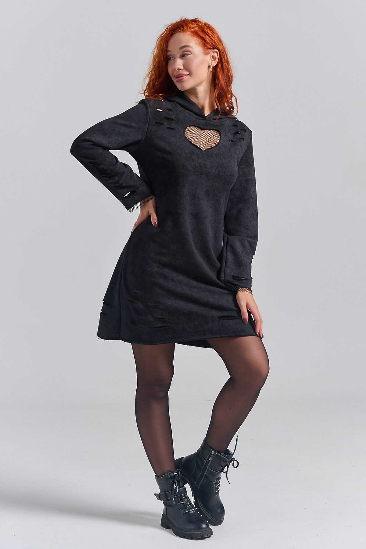 В спортивном платье со рваными краями вы будите в центре внимания. Дырявая одежда - новый тренд нашего времени. Модный в этом сезоне узор из спущенных петель и дырок на платье сделает образ более дерзким и хулиганистым, добавит непринужденности и легкой небрежности.