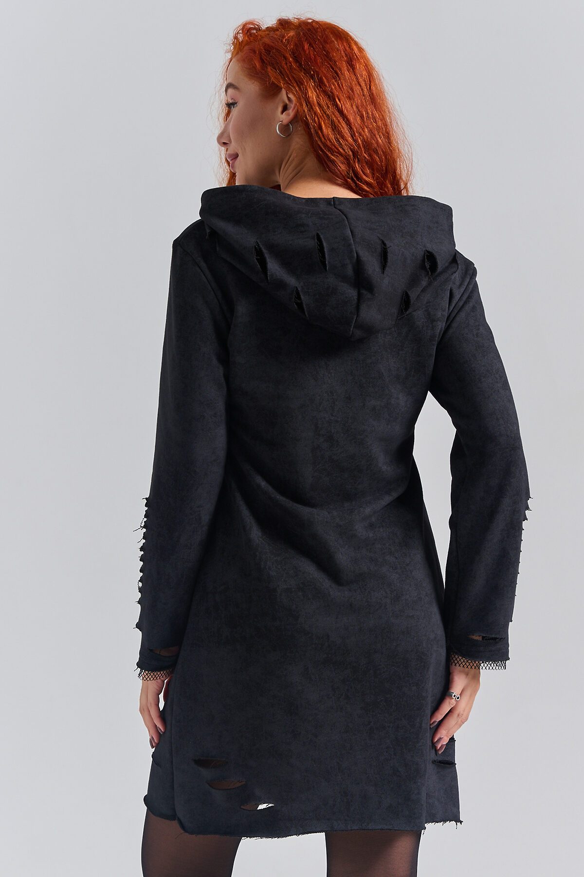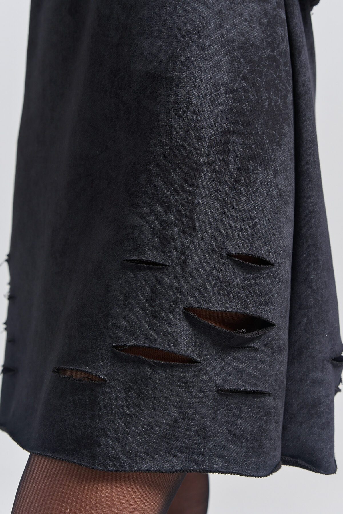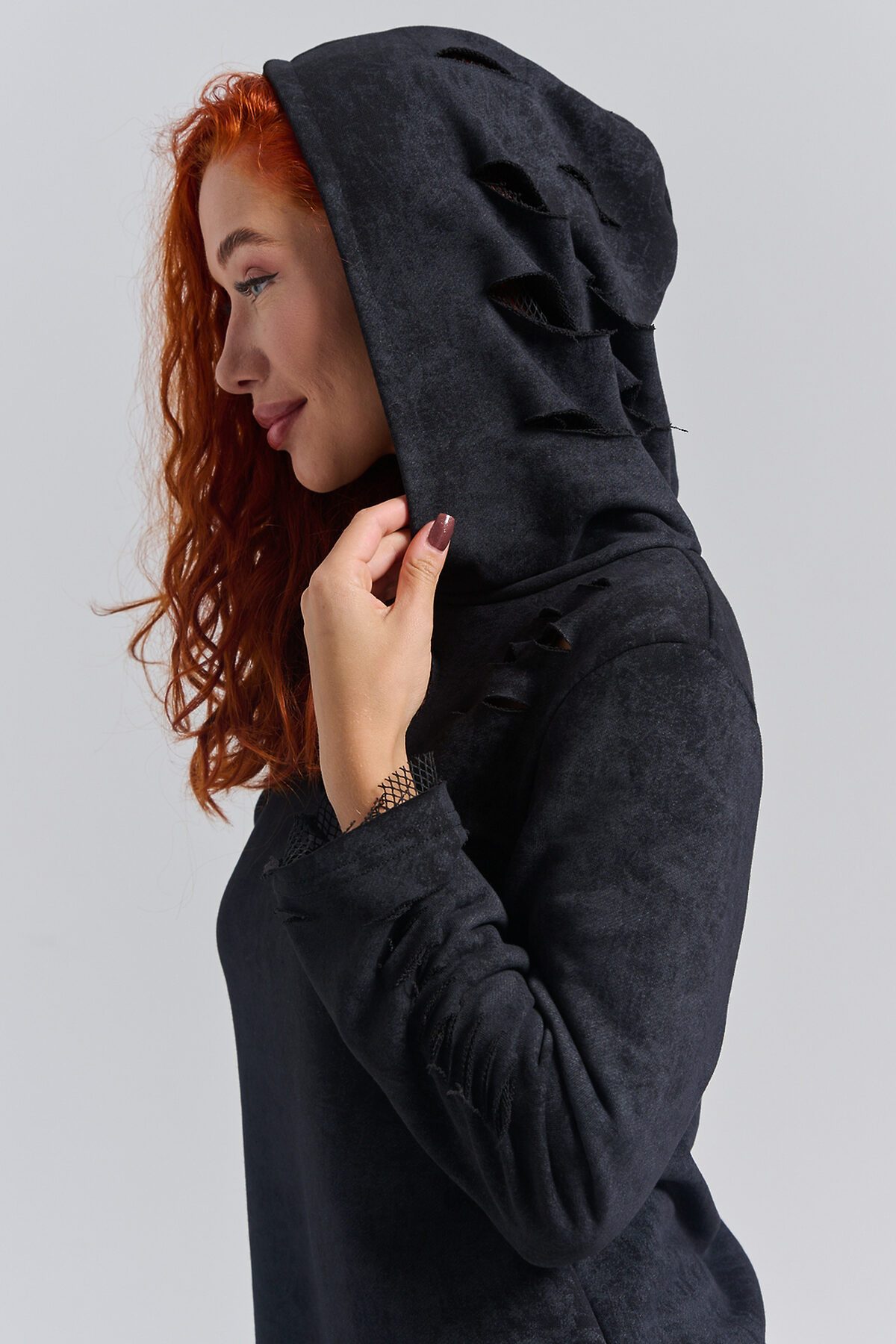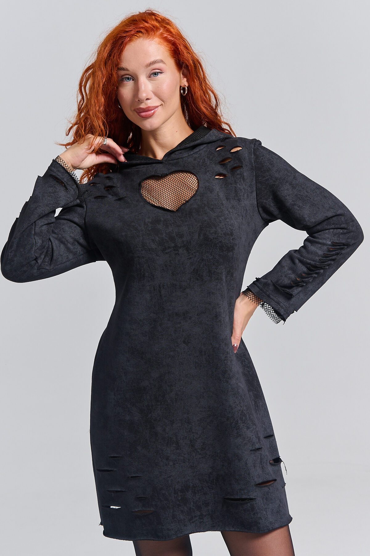 В спортивном платье со рваными краями вы будите в центре внимания. Дырявая одежда - новый тренд нашего времени. Модный в этом сезоне узор из спущенных петель и дырок на платье сделает образ более дерзким и хулиганистым, добавит непринужденности и легкой небрежности.