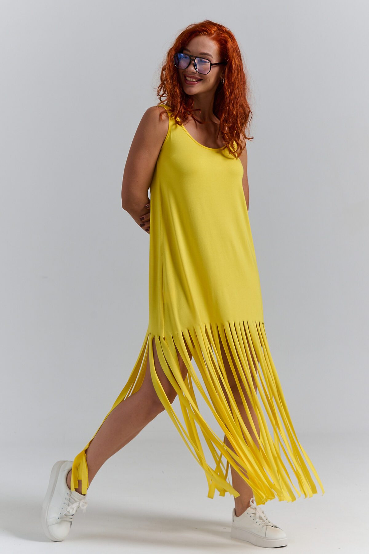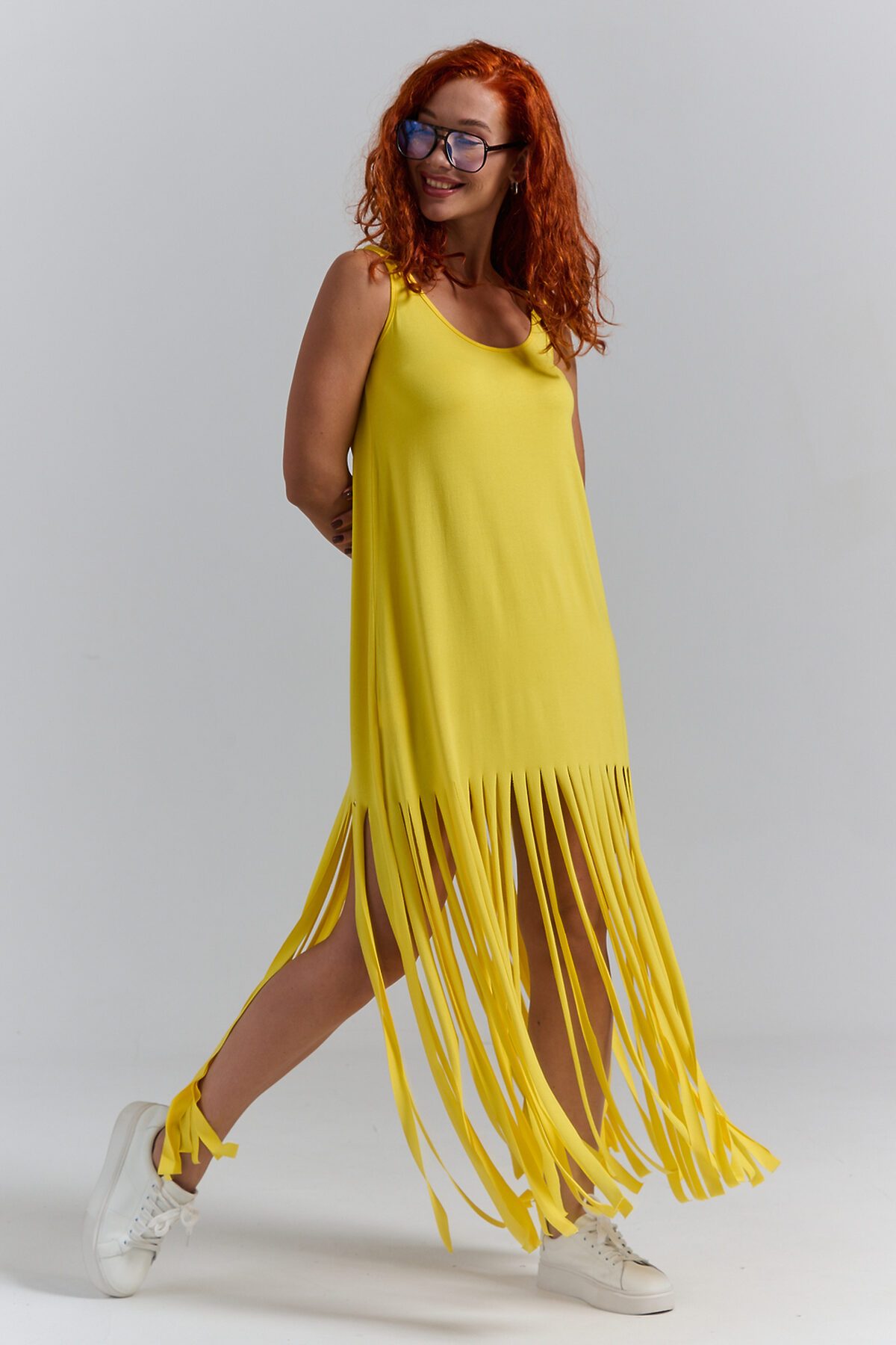 Платье с бахромой из струящейся вискозы. Лёгкое, летящее, манящее. Дарит невероятное ощущение женственности! Собираетесь на курорт? Благодаря легкости материала - отлично подойдёт как сарафан, летнее платье в отпуск. Платье с бахромой очень комфортно в жару. Это платье надо брать! Отлично впишется в Ваш гардероб! Прекрасно садится на фигуру!