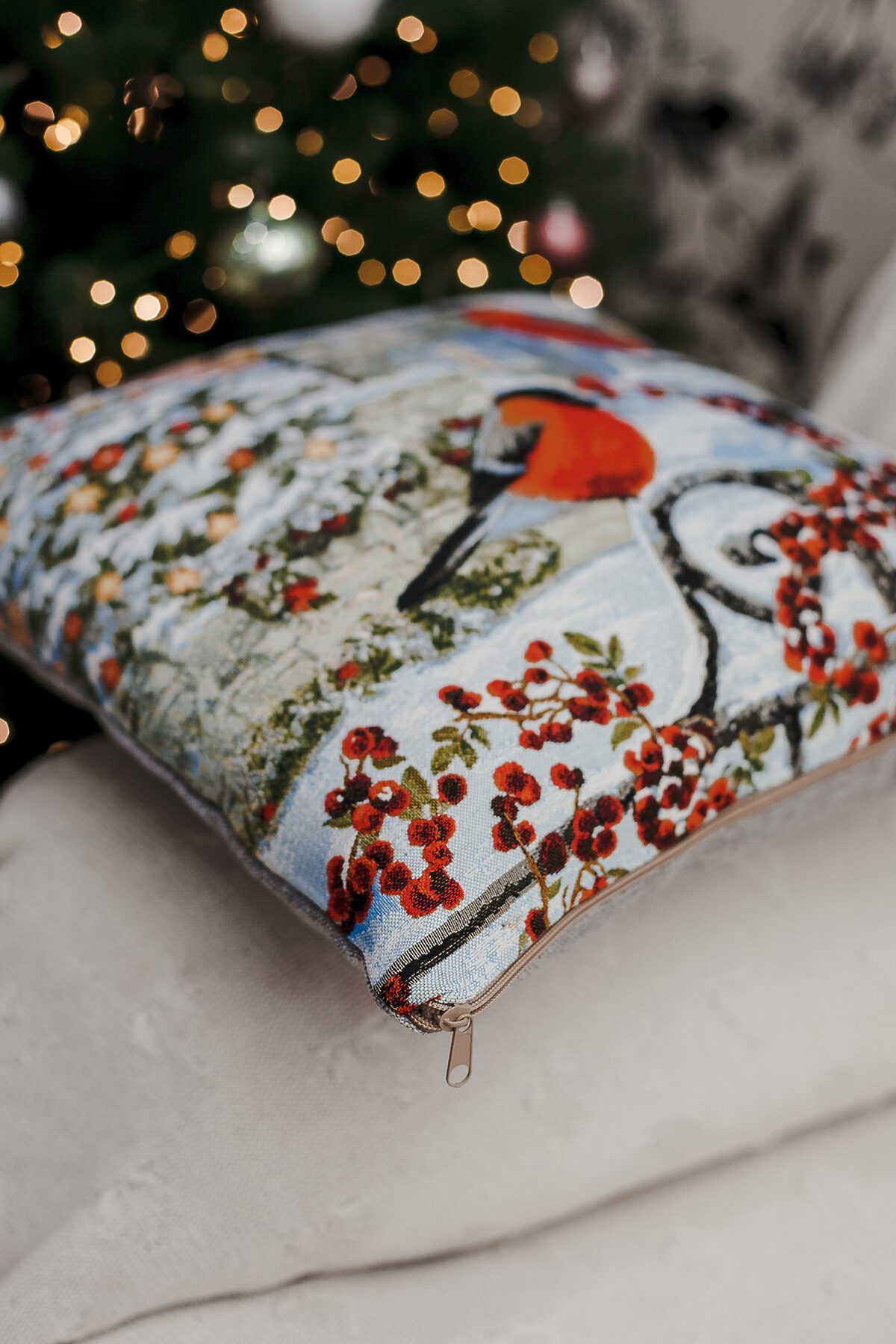 Наволочка декоративная 45х45 Снегирь с фонарем НАТАЛИ, красный