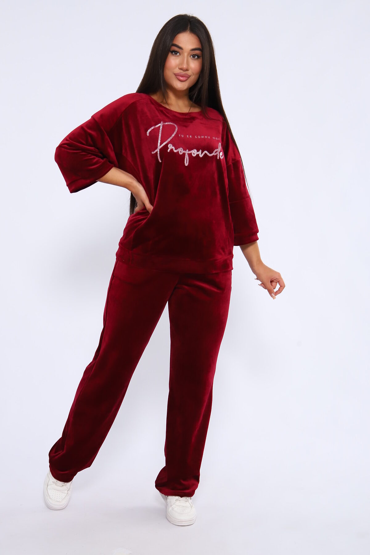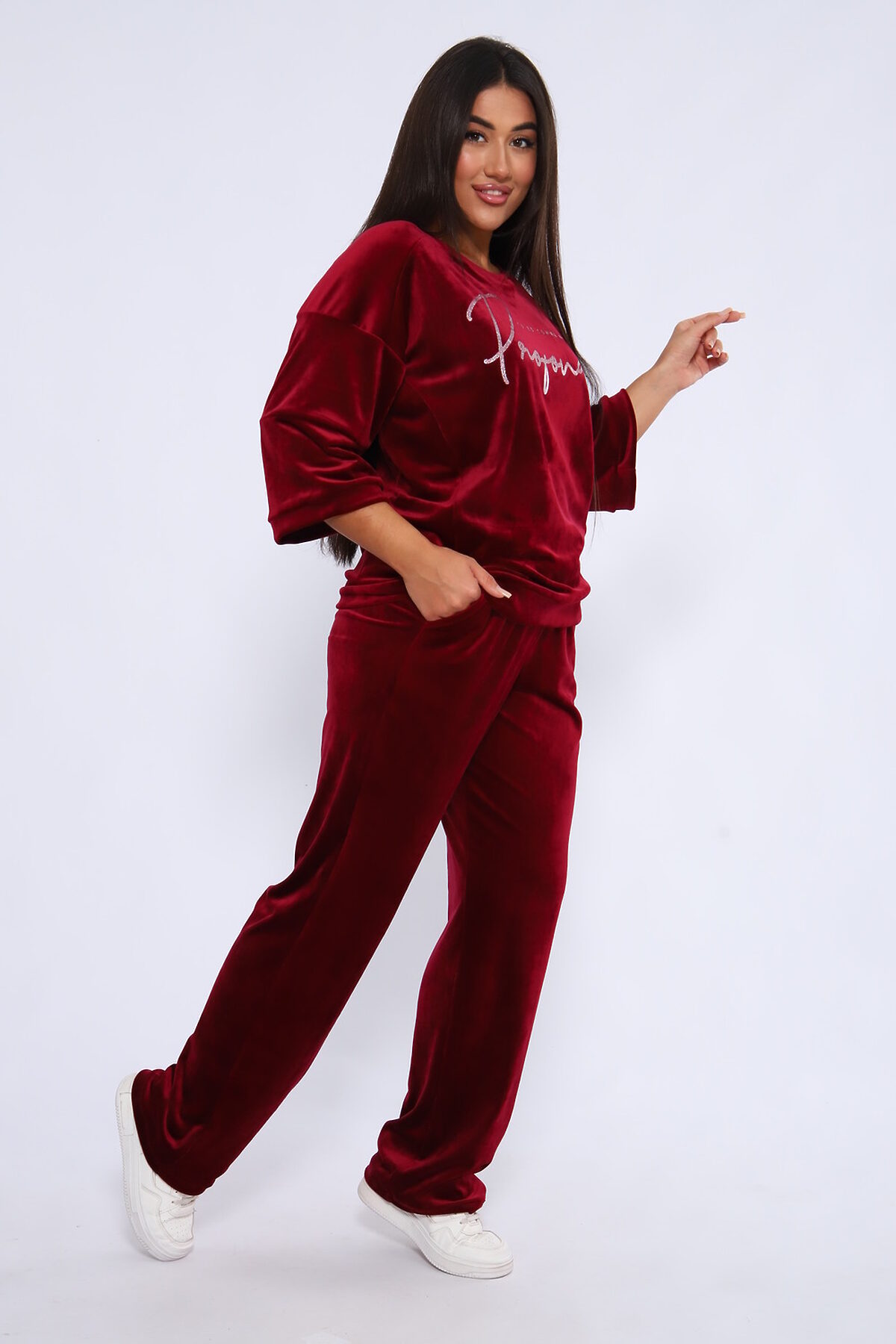 Костюм женский с широкими брюками и свободной кофтой с рукавами 3/4. Модель выполнена из премиального велюра.