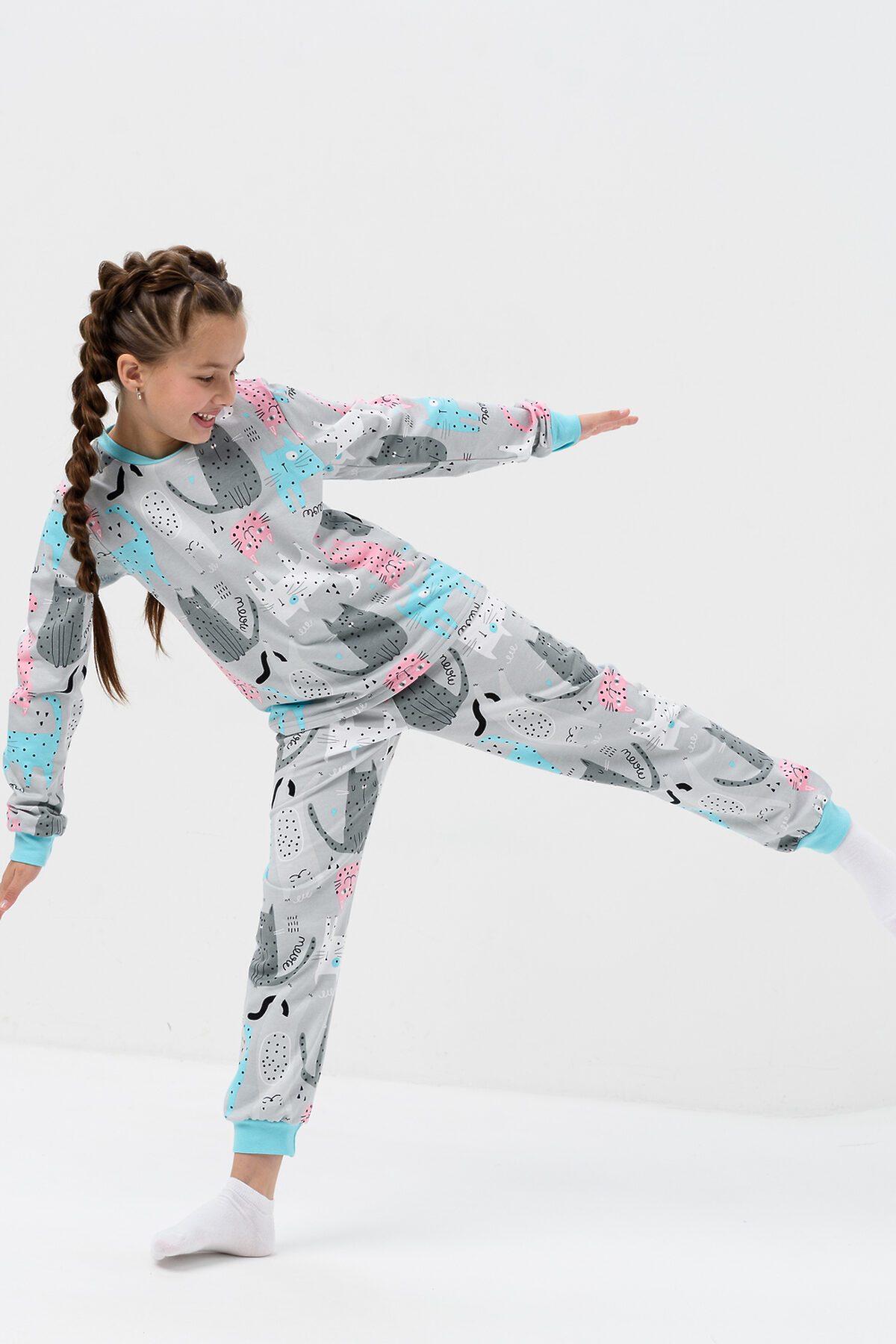 Пижама с брюками Счастье начес футер детская НАТАЛИ, светло-серый