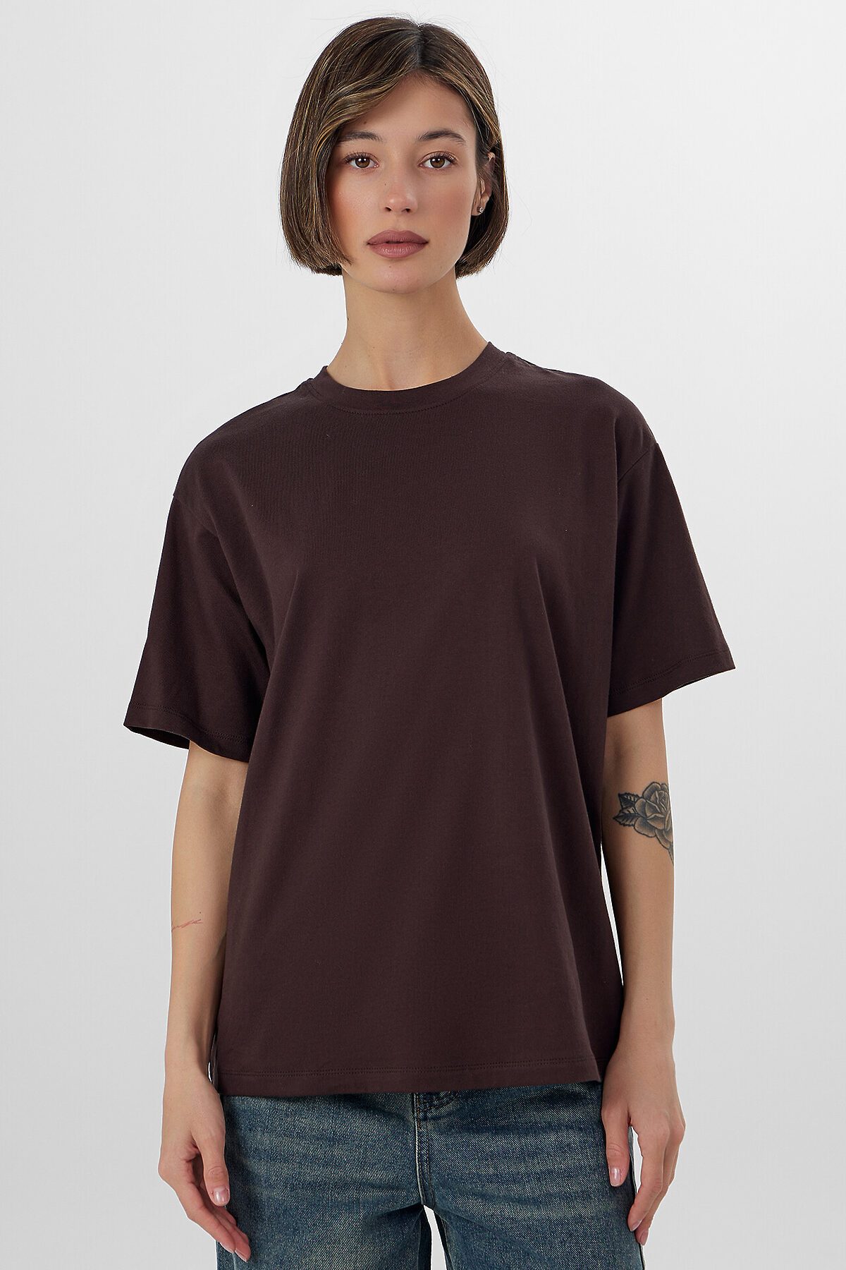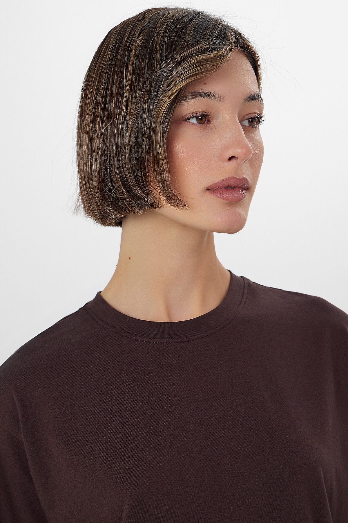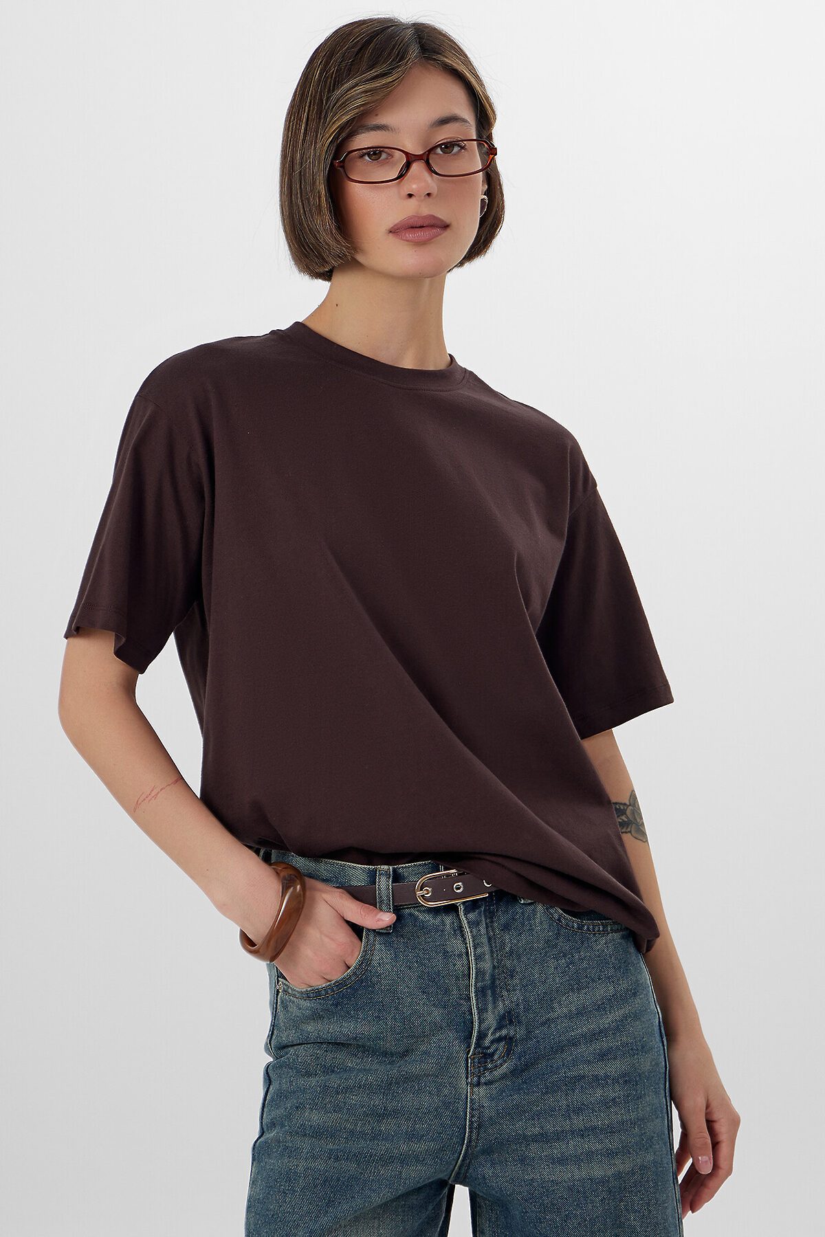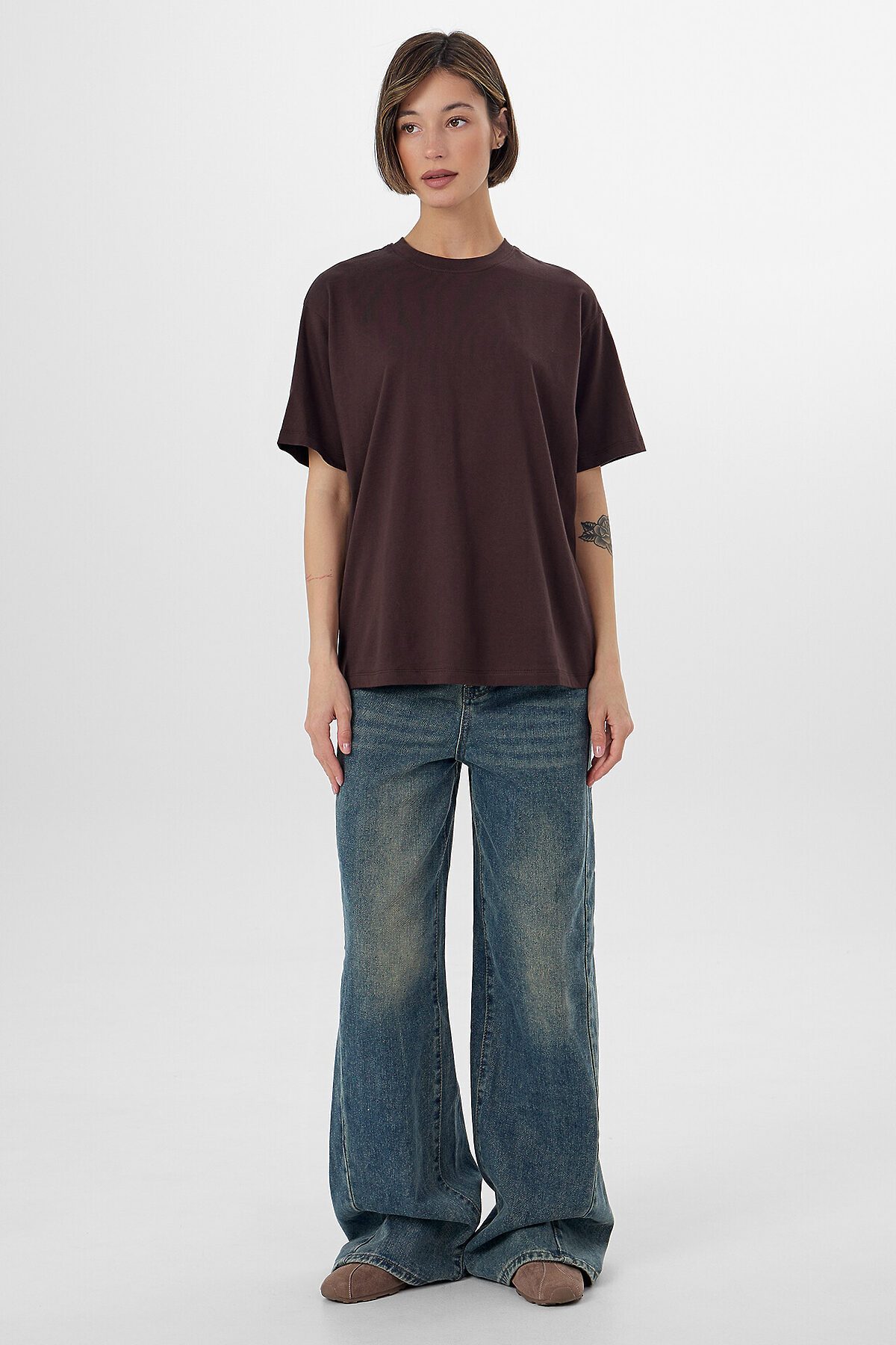 Элегантность в простоте — женская футболка для вашего базового гардероба. Модель свободного силуэта станет основой для множества стильных образов. Она выполнена из мягкой и дышащей хлопковой кулирки, что делает ее идеальным выбором для повседневного ношения. Круглая горловина придает аккуратный вид, а спущенная линия плеча и углубленная пройма обеспечивают свободу движений. Широкие рукава, длиной чуть выше локтя, придают изделию современный и непринужденный вид. Эта футболка идеально сочетается с джинсами, шортами или юбкой, позволяя вам создавать как повседневные, так и более элегантные образы. Стильная удобная и универсальная — незаменимый элемент вашего гардероба!