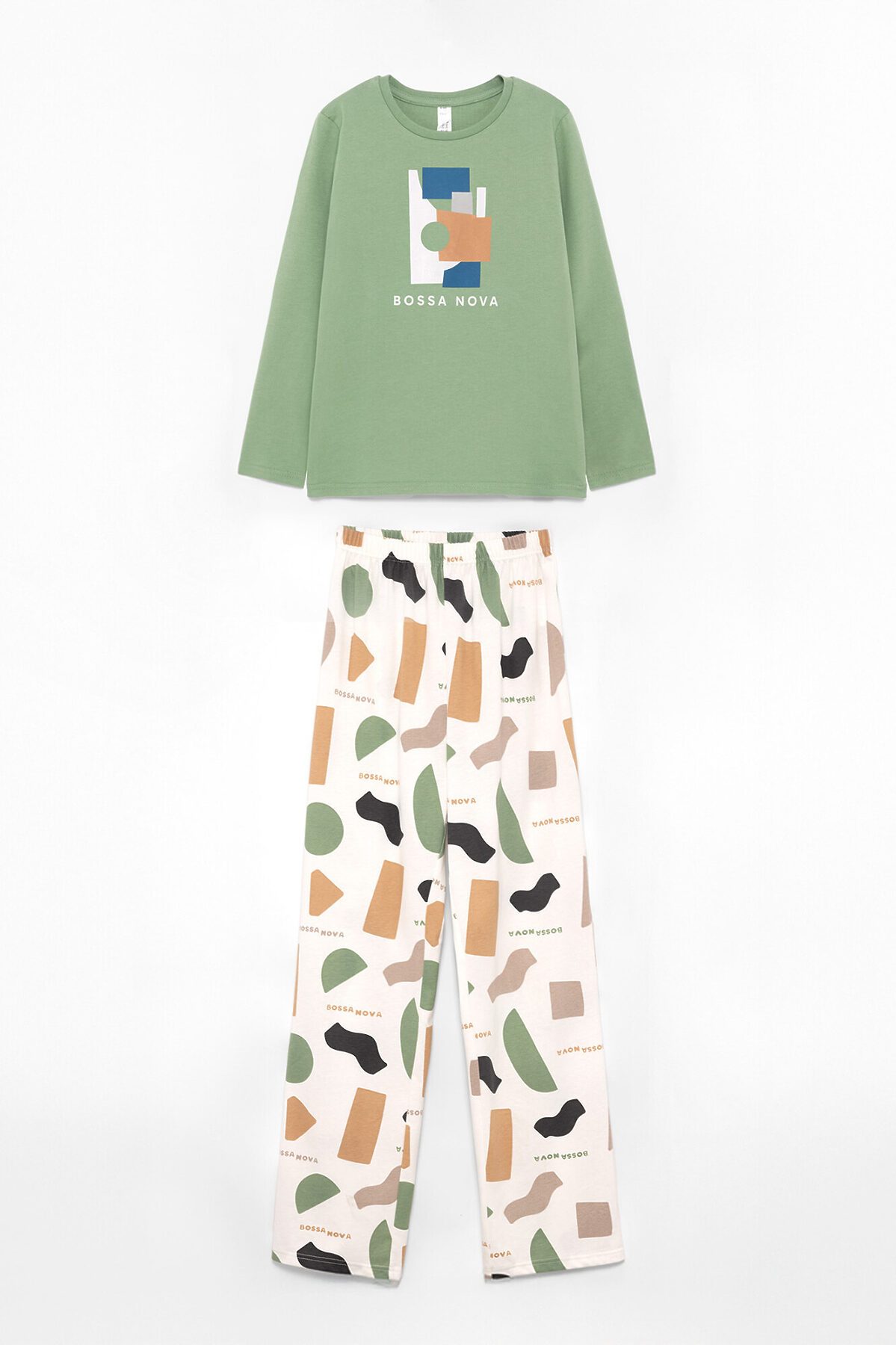 Пижама Bossa Nova (брюки и лонгслив) выполнена из супрема. Детали: принт на лонгсливе.