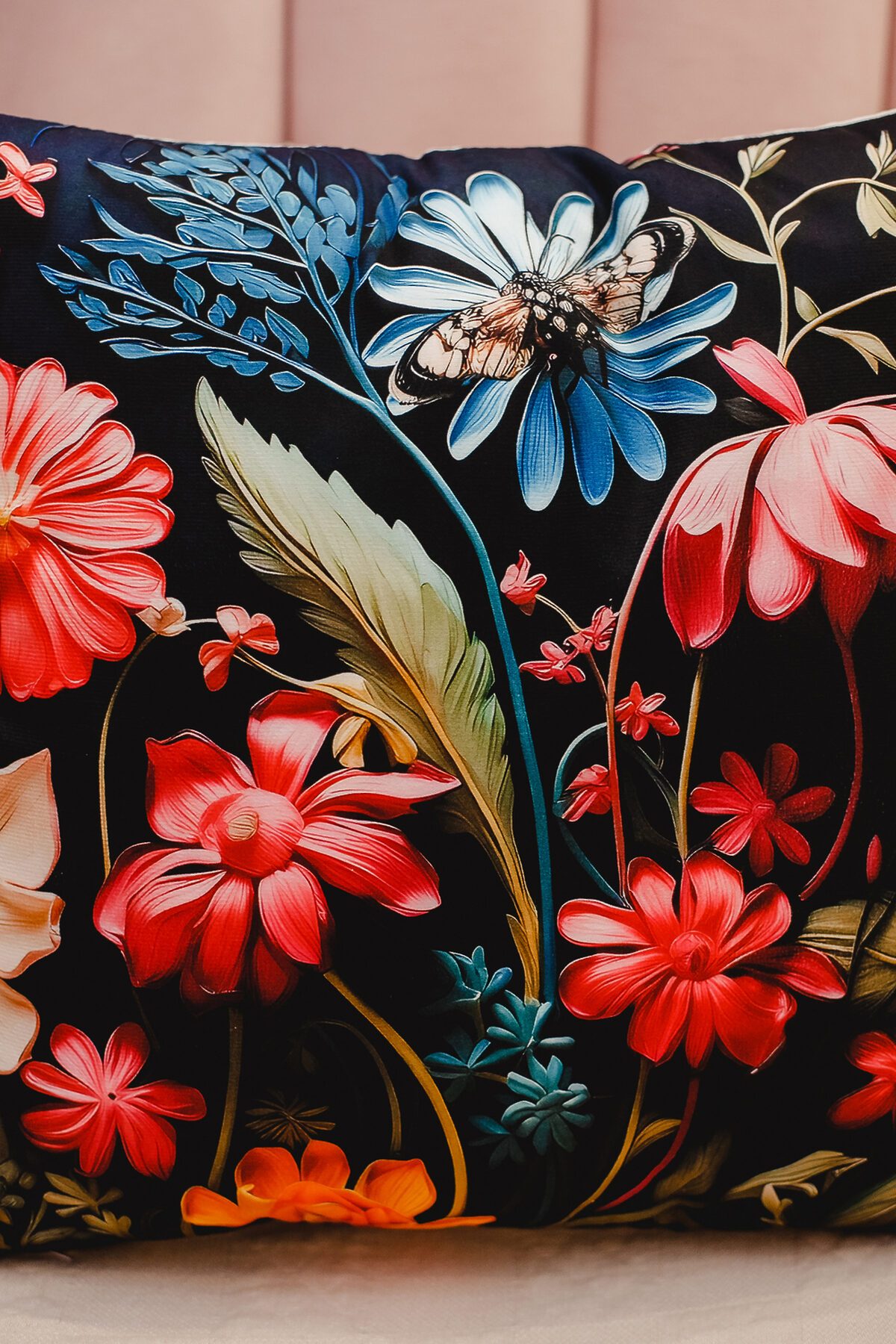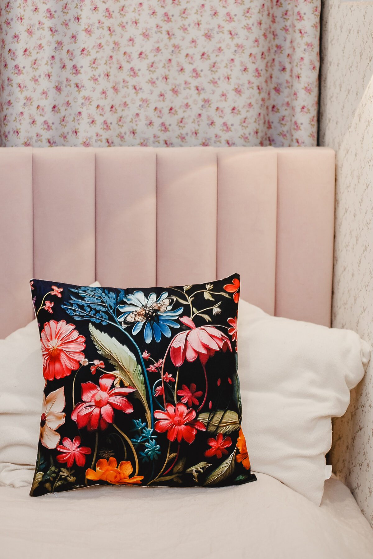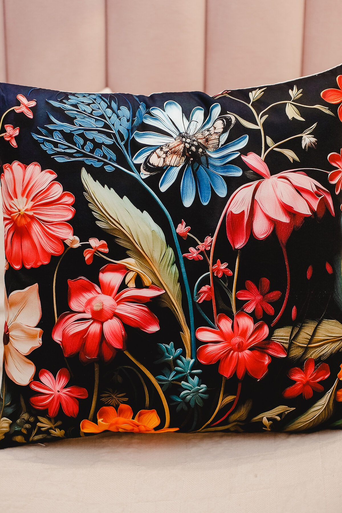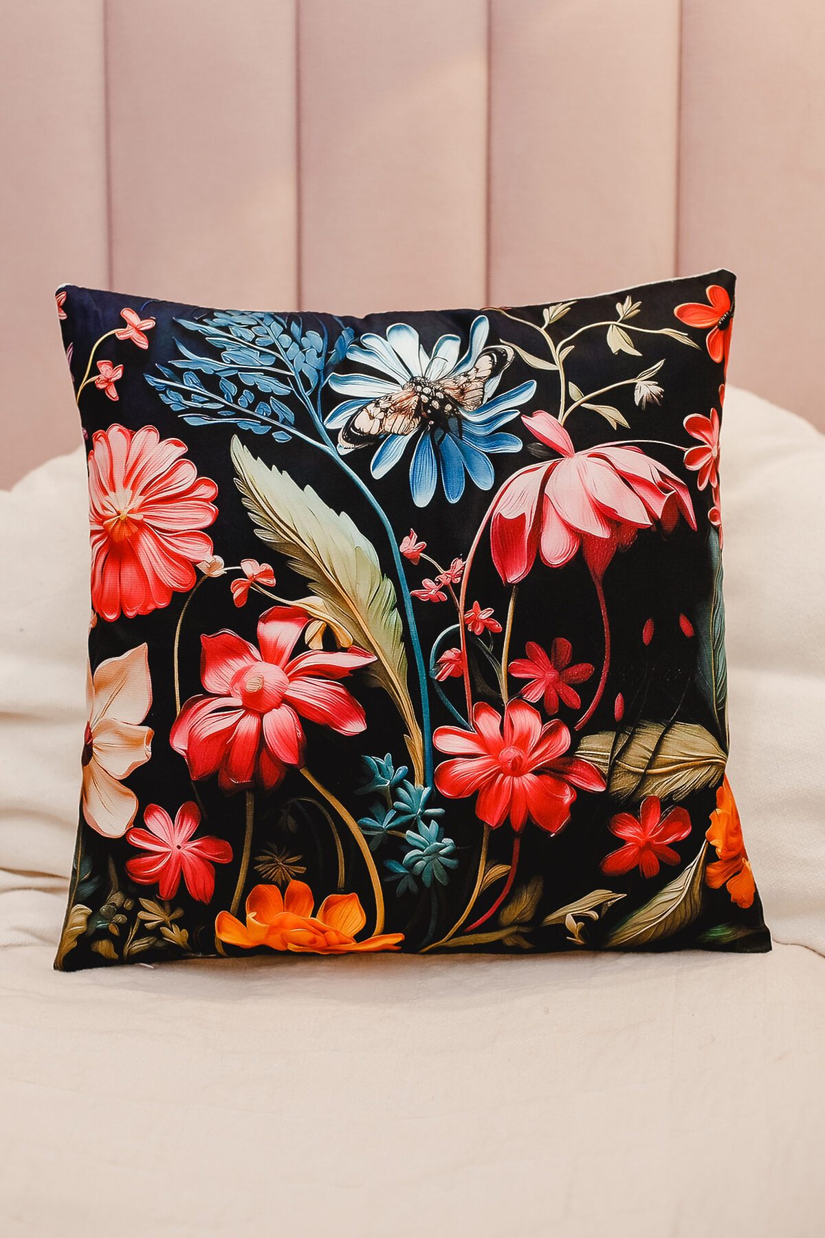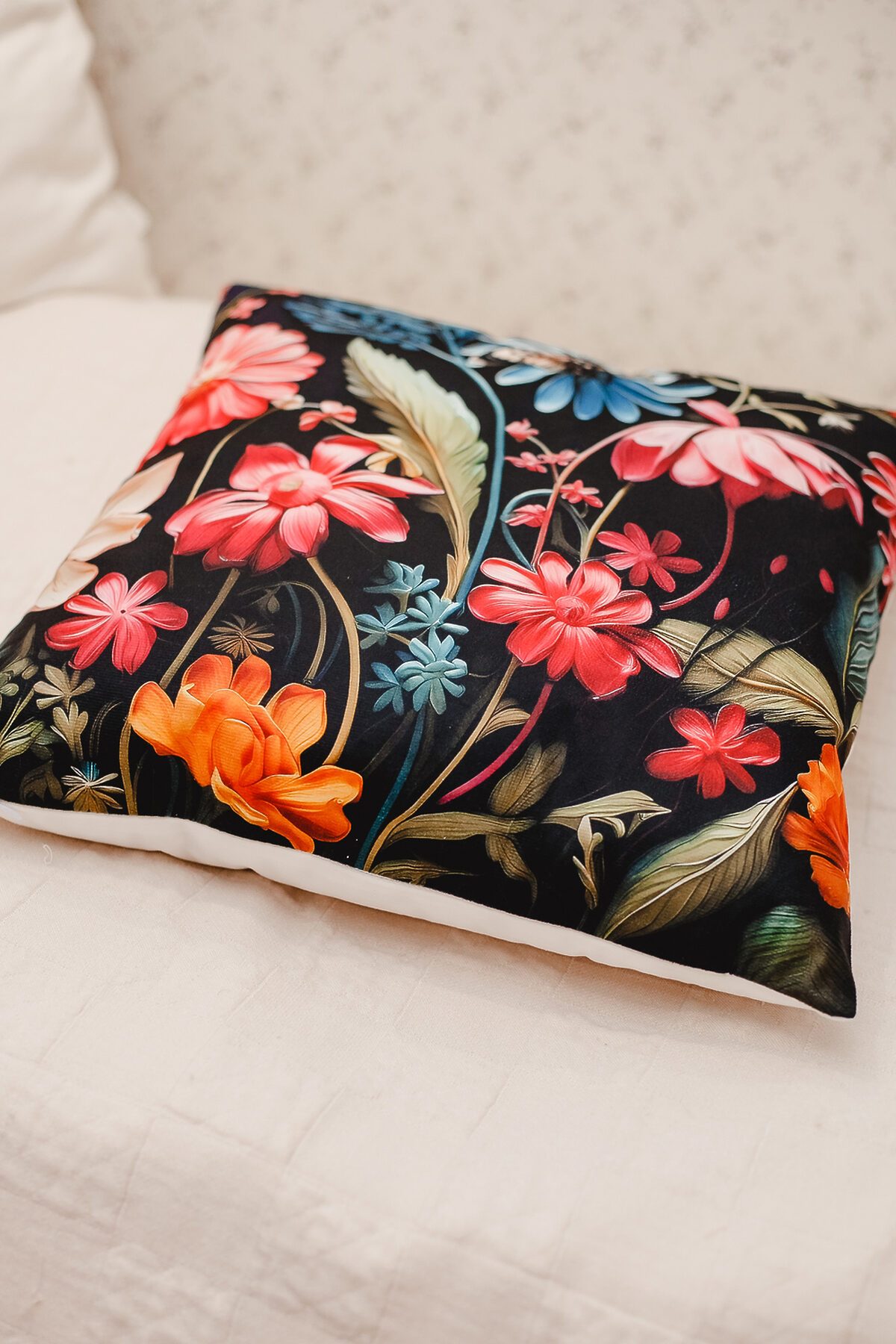 Наволочка декоративная декоративная 1 шт 3D эффект НАТАЛИ, черный+букет