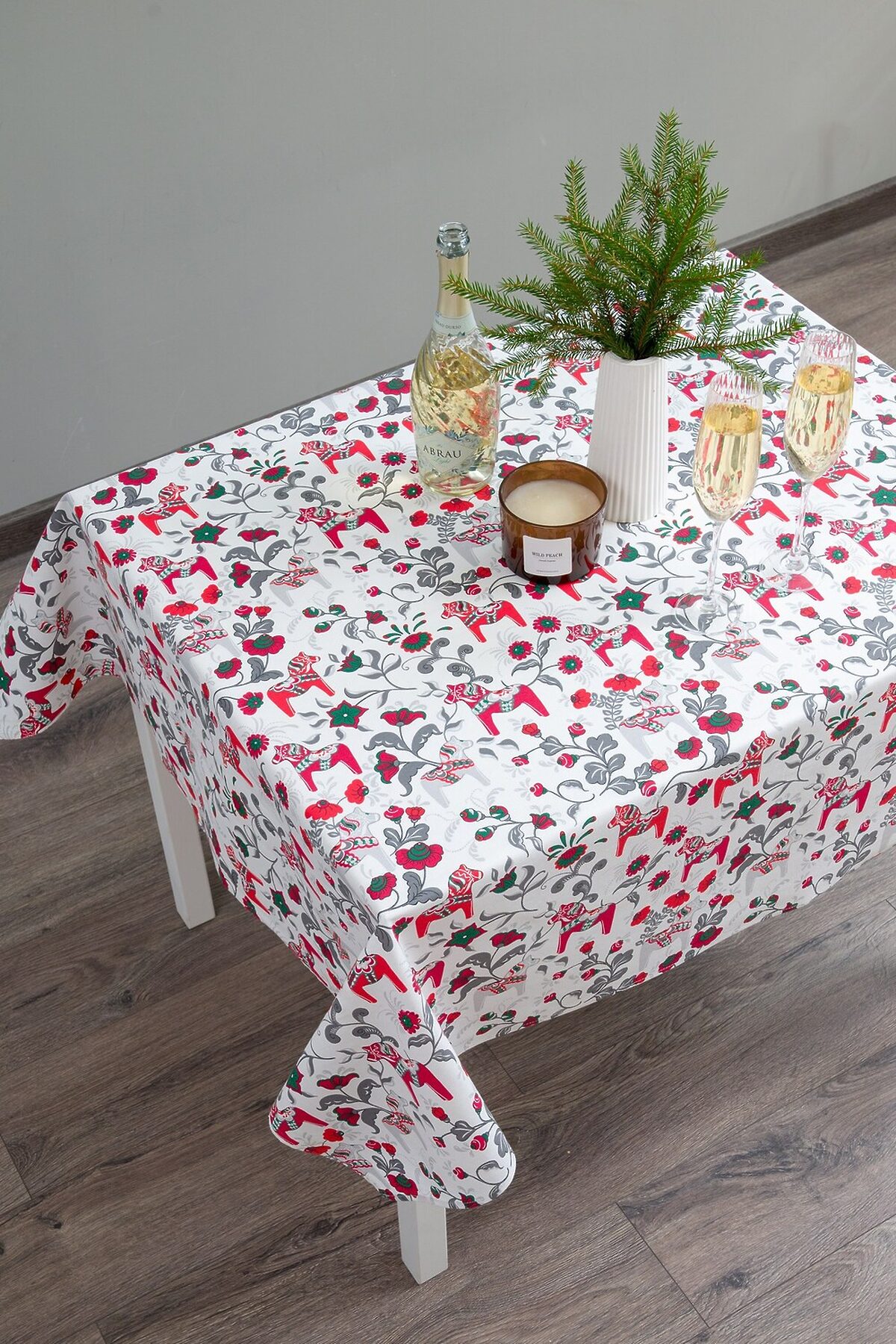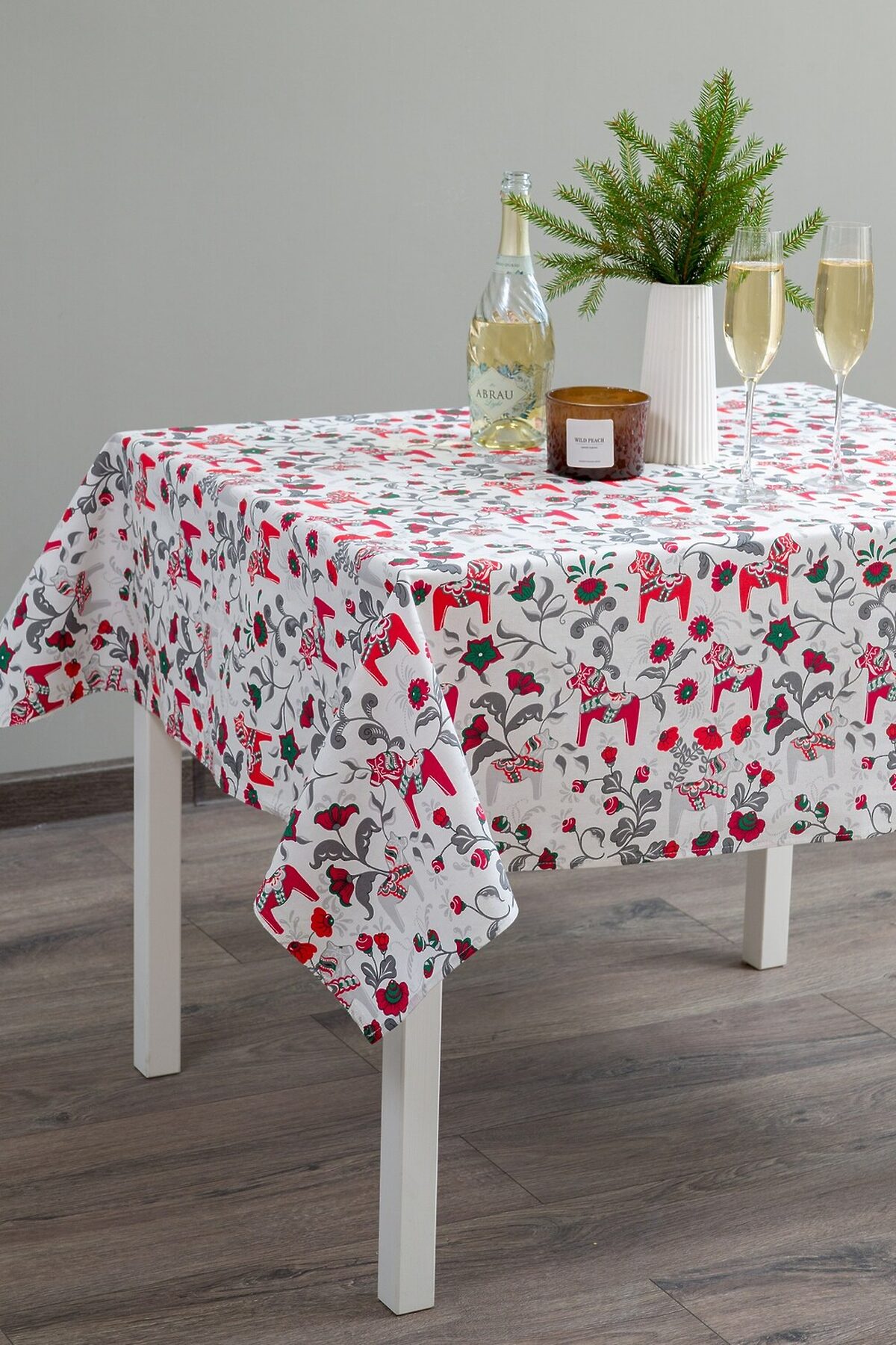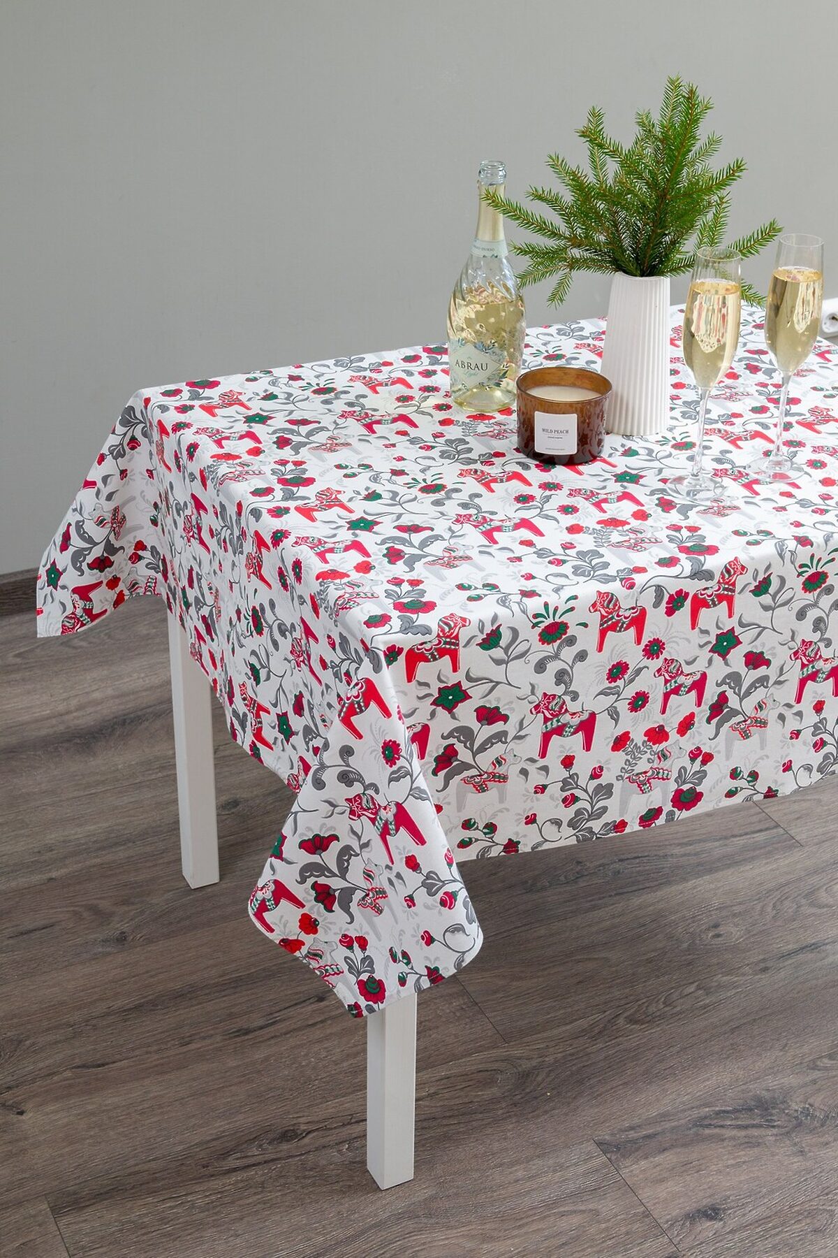Создайте новогоднее настроение с Городецкой сказкой! Погрузитесь в атмосферу волшебства и тепла с нашей новогодней скатертью Городецкая лошадка! Эта очаровательная скатерть станет прекрасным украшением вашего праздничного стола и отличным подарком на Новый год. Особенности скатерти: Уникальный дизайн: Скатерть выполнена в традиционном стиле Городецкой росписи. Белый фон украшен яркими красными лошадками, символами наступающего 2026 года, и зимними атрибутами, создающими атмосферу праздника и радости. Натуральный материал: Изготовлена из 100% натурального хлопка (рогожка), что обеспечивает прочность, долговечность и приятные тактильные ощущения. Три удобных размера: 150*120 см - идеально подойдет для небольшого стола или чаепития. 180*150 см - оптимальный размер для стандартного обеденного стола. 220*150 см - прекрасный выбор для большого праздничного стола. Отличный подарок: Скатерть Городецкая лошадка станет замечательным и запоминающимся подарком для ваших близких и друзей, символизируя удачу и благополучие в наступающем году. Символ года: Лошадь - символ 2026 года, принесет в ваш дом счастье, энергию и позитив. Преимущества: Создает праздничную атмосферу. Изготовлена из натурального и качественного материала. Легко стирается и гладится. Прекрасно сочетается с любой посудой и декором. Подарите себе и своим близким частичку русской сказки с новогодней скатертью Городецкая лошадка! Пусть ваш новогодний стол будет самым красивым и запоминающимся!