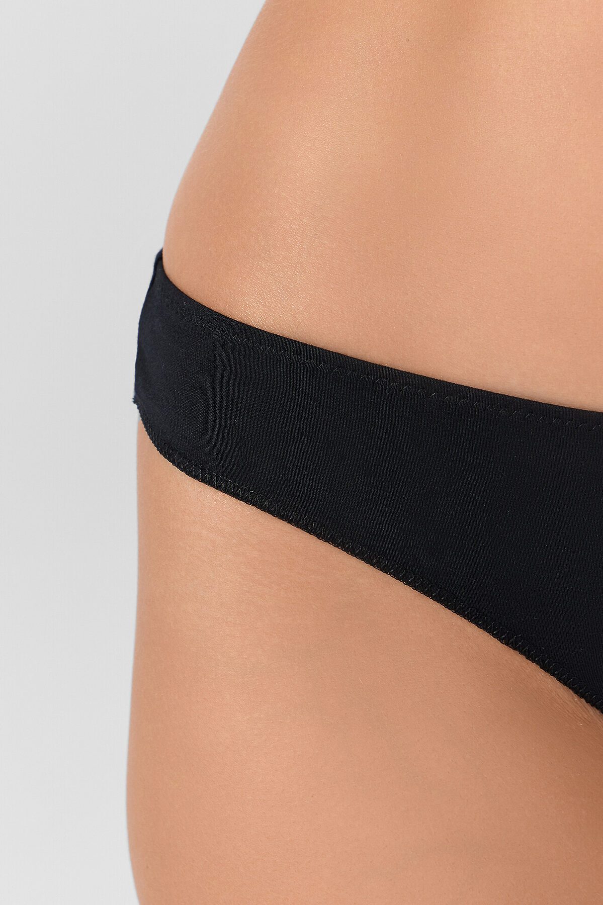 Трусы-бразилиана — элегантный вариант для повседневной носки. Модель с чуть заниженной линией талии выполнена из мягкого хлопка, который хорошо пропускает воздух и не вызывает раздражения кожи. Тонкая эластичная тесьма по верхнему краю обеспечивает аккуратную посадку, не оставляя следов на теле даже при длительном ношении.