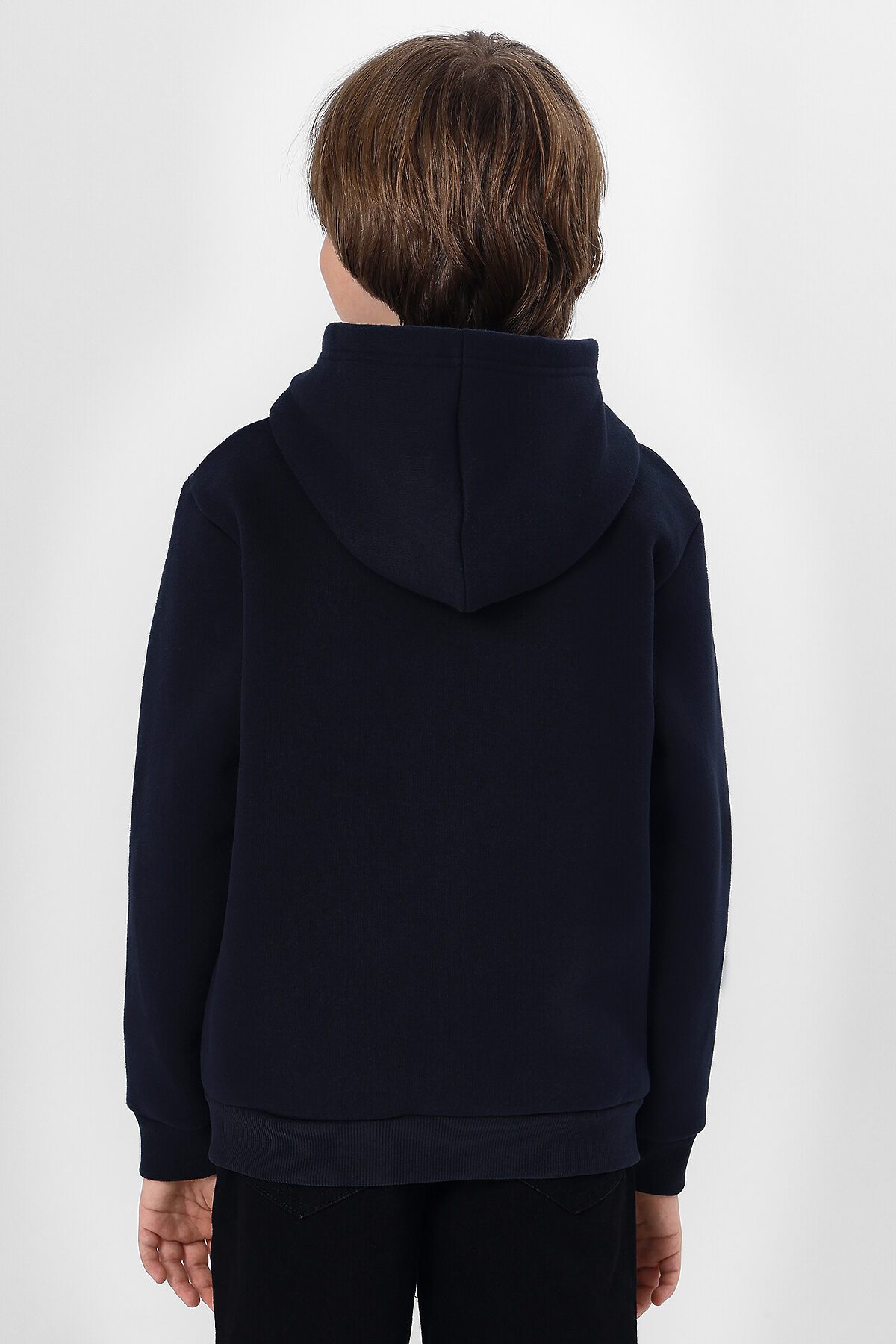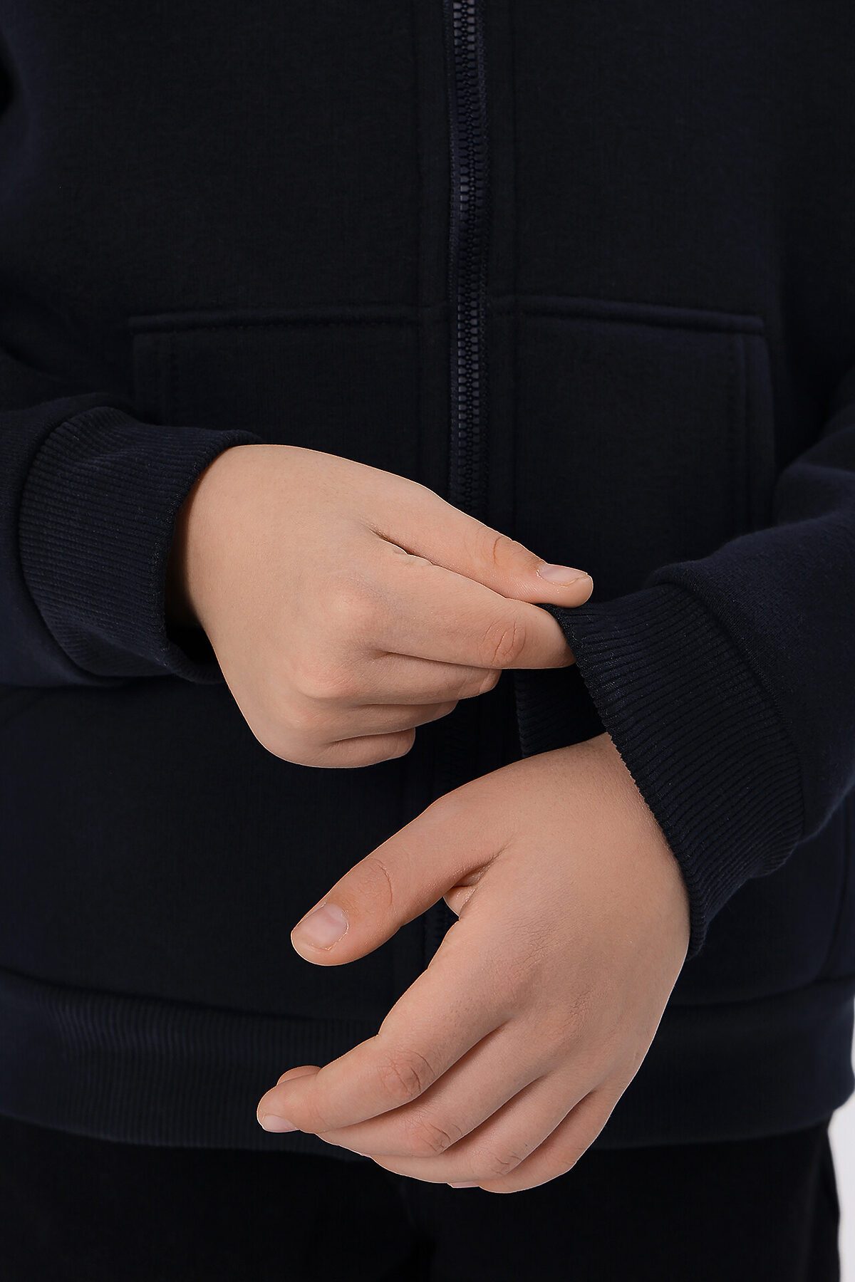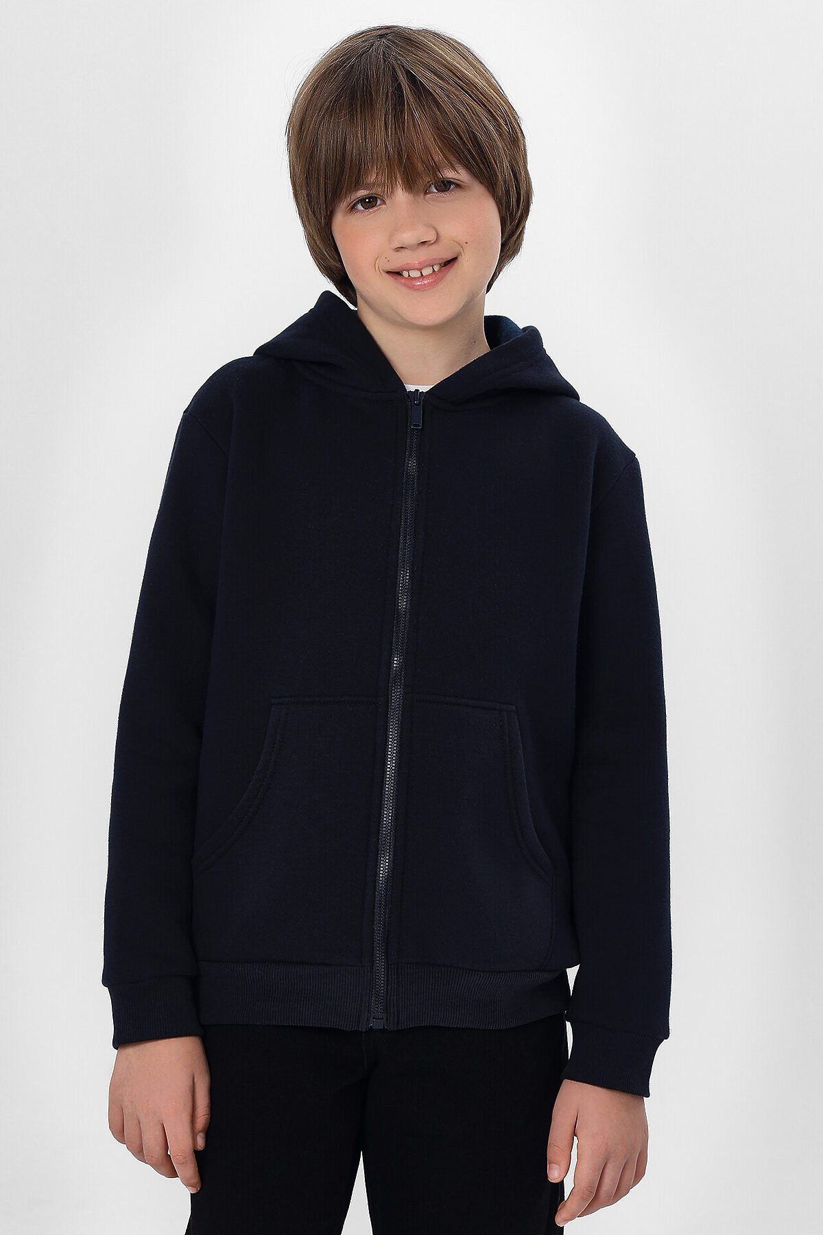 Стильная спортивная толстовка на молнии для мальчиков. Выполнена из теплого и нежного трикотажного футера с подчесом. Прямой свободный силуэт дополнен уютным капюшоном и удобным карманом-кенгуру. Рукава длинные, линия плеча немного спущена. Рекомендуем для прохладной погоды!