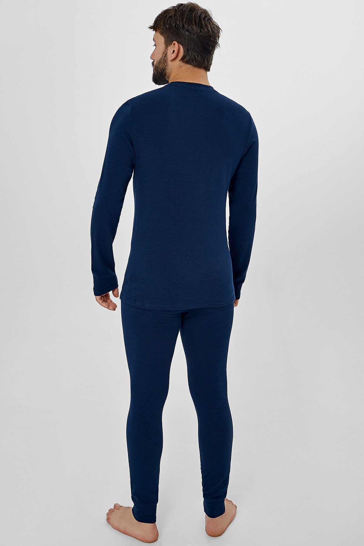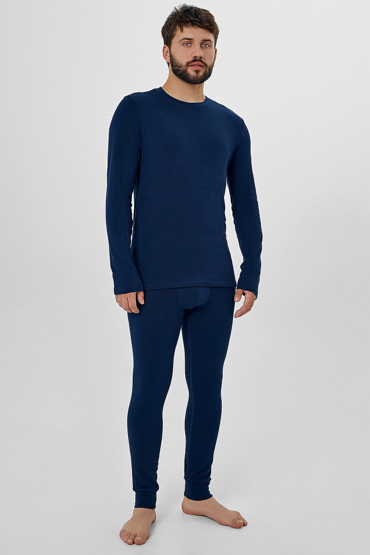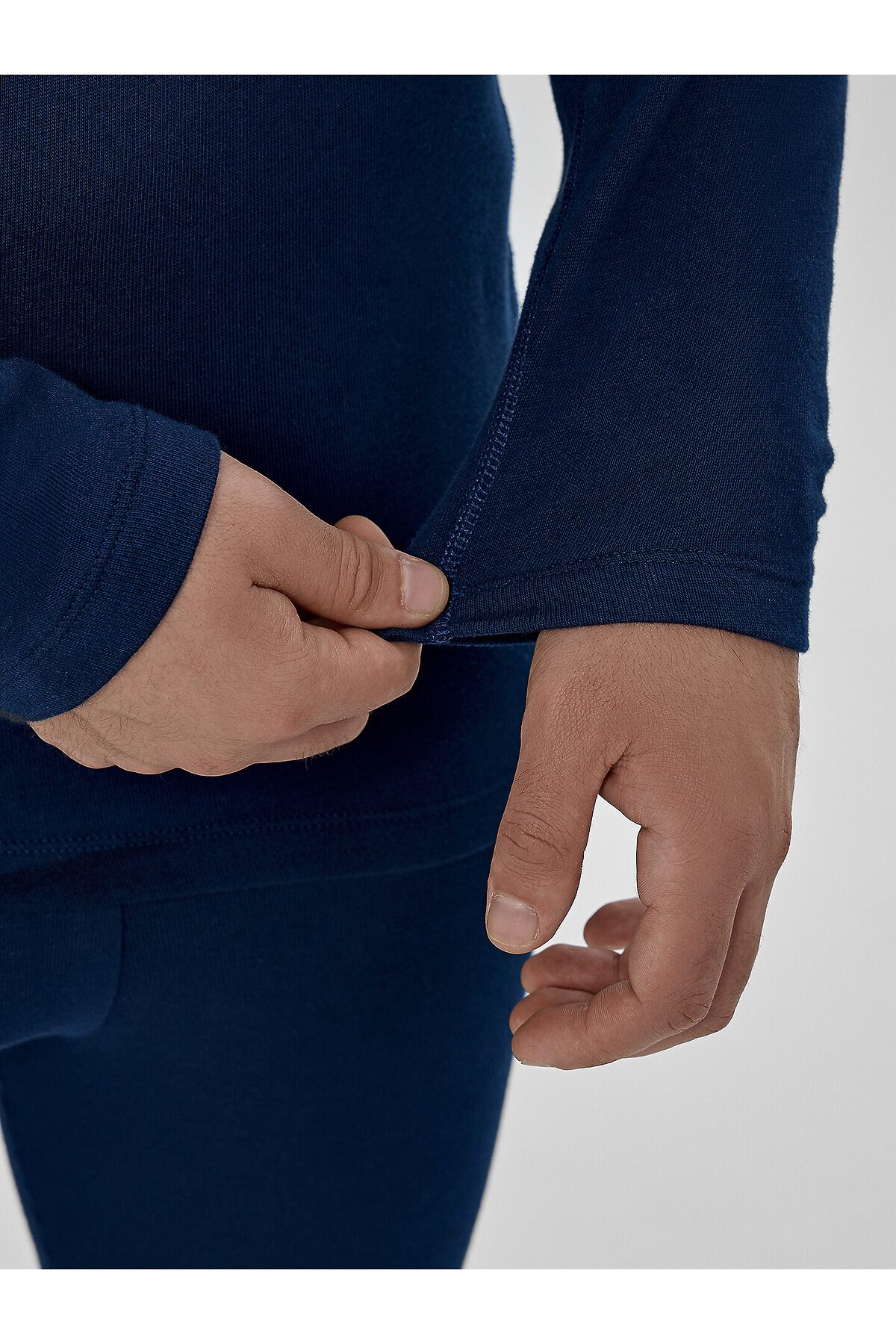 Фуфайка мужская на базе 721466 для спорта и отдыха изготовлен из трикотажного полотна-ЭКО-хлопок с эластаном (теплое белье). Силуэт прямой. Длина до середины бедер. Горловина с притачной обтачкой. По горловине проложена декоративная строчка на 0,2 мм (по изделию). Вырез круглый. Перед и спинка цельнокроенные. Рукава втачные одношовные длинные. Боковые швы распошиты на плоскошовной машине. Низ рукавов и изделия застрочены швом вподгиб на 2-хигольной плоскошовной машине. Кальсоны мужские на базе 741209 из трикотажного полотна (хлопок, эластан), плотно облегающие бедра и ноги по всей длине. На передней части усилительная планка и подкладка из 2 частей. Задняя часть со средним швом. Верхний край с эластичной фирменной трикотажной жаккардовой тесьмой, настроченной вкруговую на 2-хигольной плоскошовной машине с роликами. Нижние срезы с притачными манжетами Цвет 1 - все детали