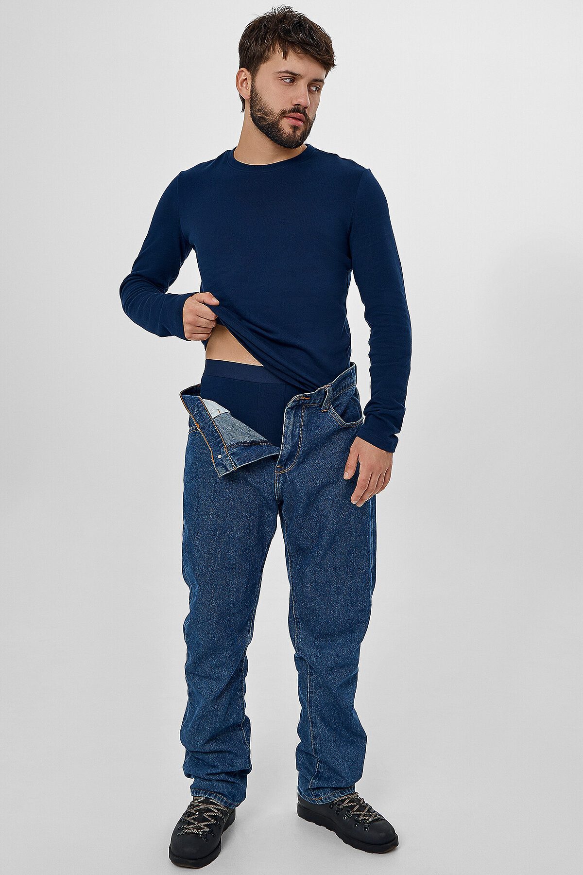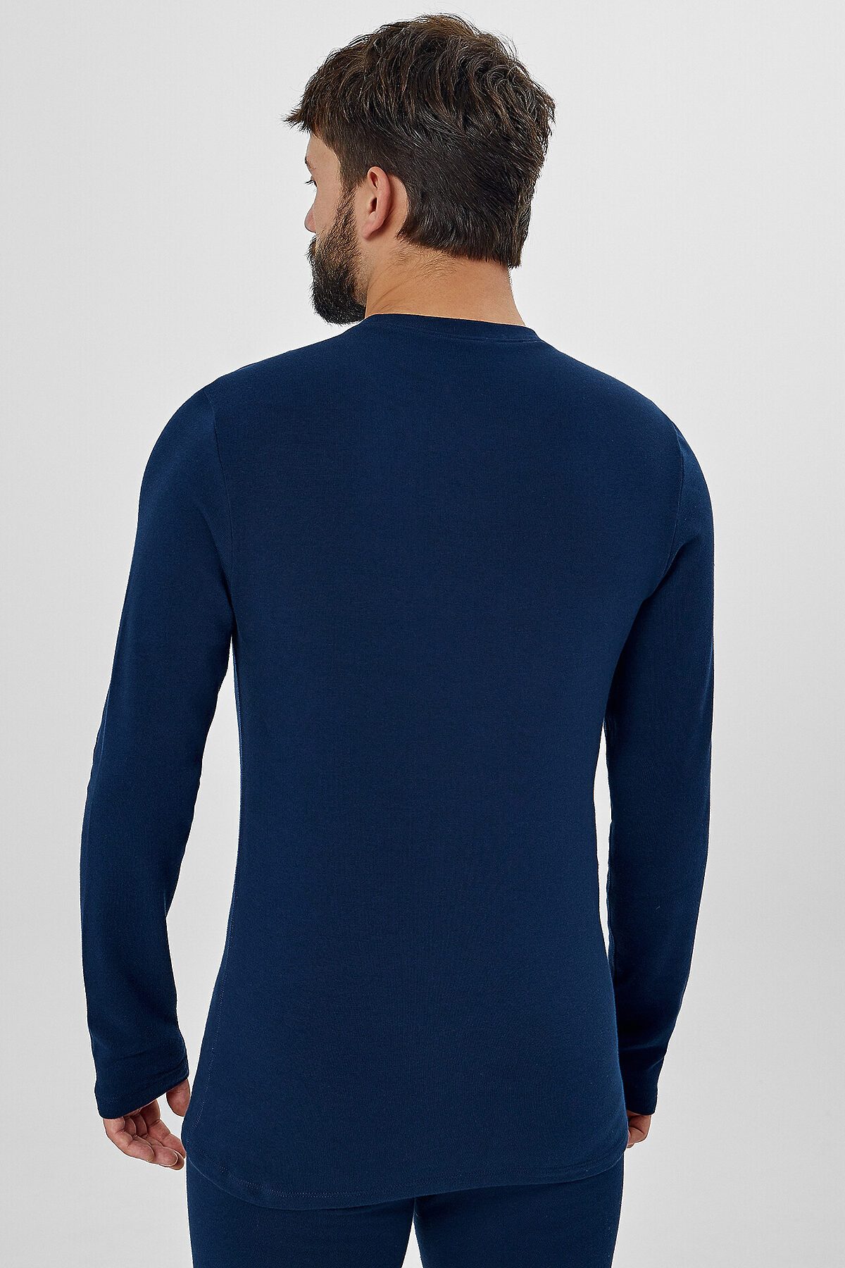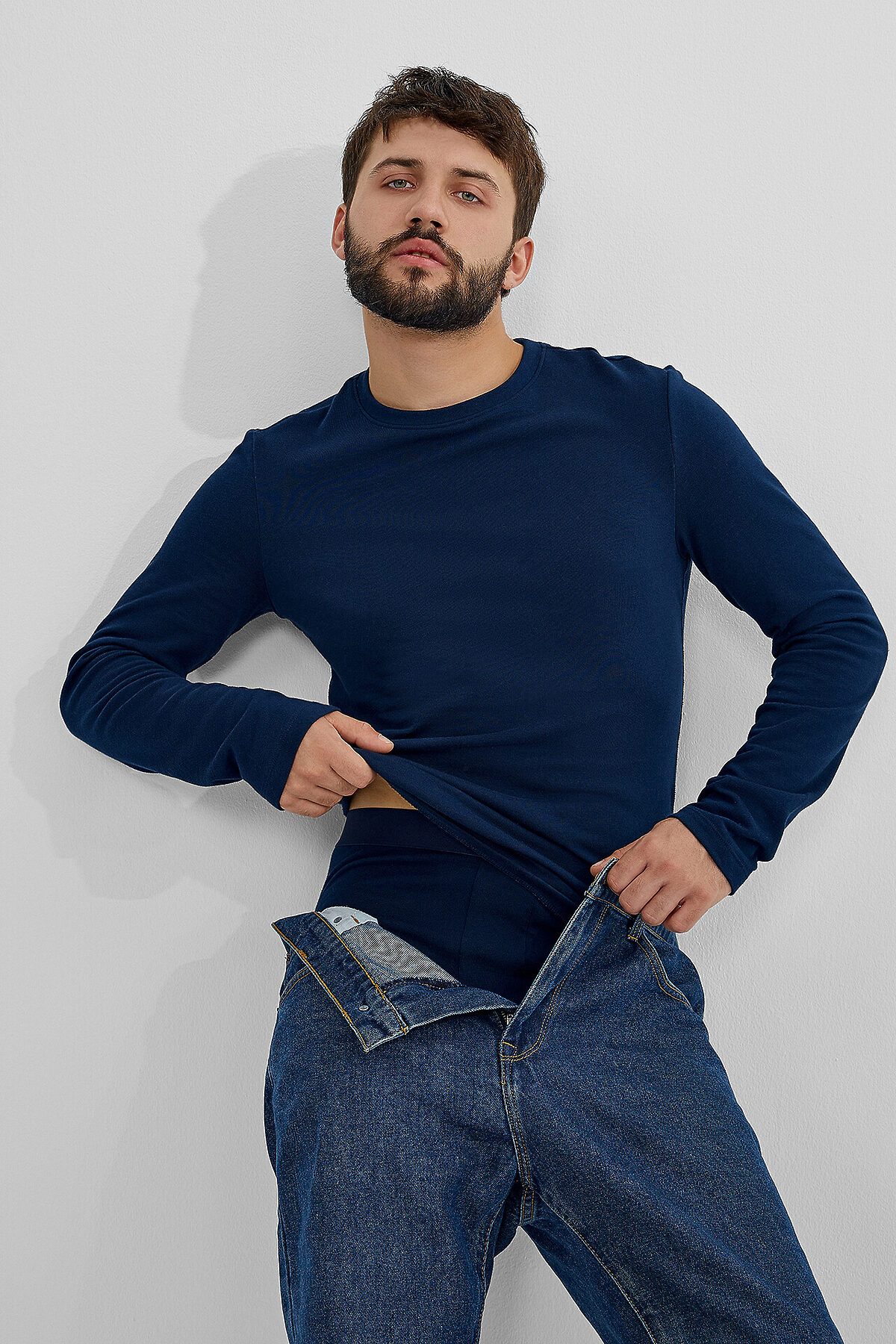 Фуфайка мужская на базе 721466 для спорта и отдыха изготовлен из трикотажного полотна-ЭКО-хлопок с эластаном (теплое белье). Силуэт прямой. Длина до середины бедер. Горловина с притачной обтачкой. По горловине проложена декоративная строчка на 0,2 мм (по изделию). Вырез круглый. Перед и спинка цельнокроенные. Рукава втачные одношовные длинные. Боковые швы распошиты на плоскошовной машине. Низ рукавов и изделия застрочены швом вподгиб на 2-хигольной плоскошовной машине. Кальсоны мужские на базе 741209 из трикотажного полотна (хлопок, эластан), плотно облегающие бедра и ноги по всей длине. На передней части усилительная планка и подкладка из 2 частей. Задняя часть со средним швом. Верхний край с эластичной фирменной трикотажной жаккардовой тесьмой, настроченной вкруговую на 2-хигольной плоскошовной машине с роликами. Нижние срезы с притачными манжетами Цвет 1 - все детали