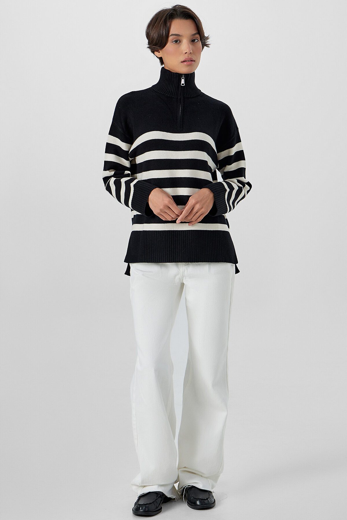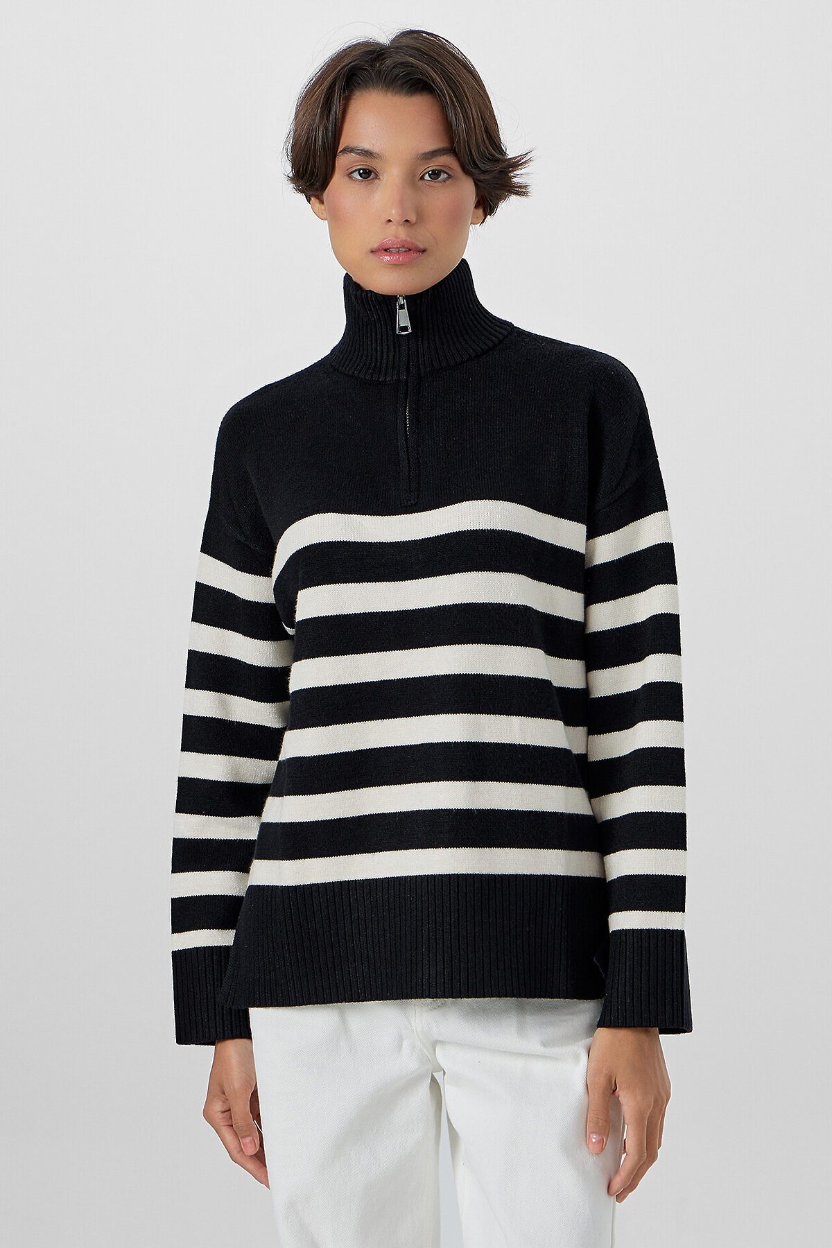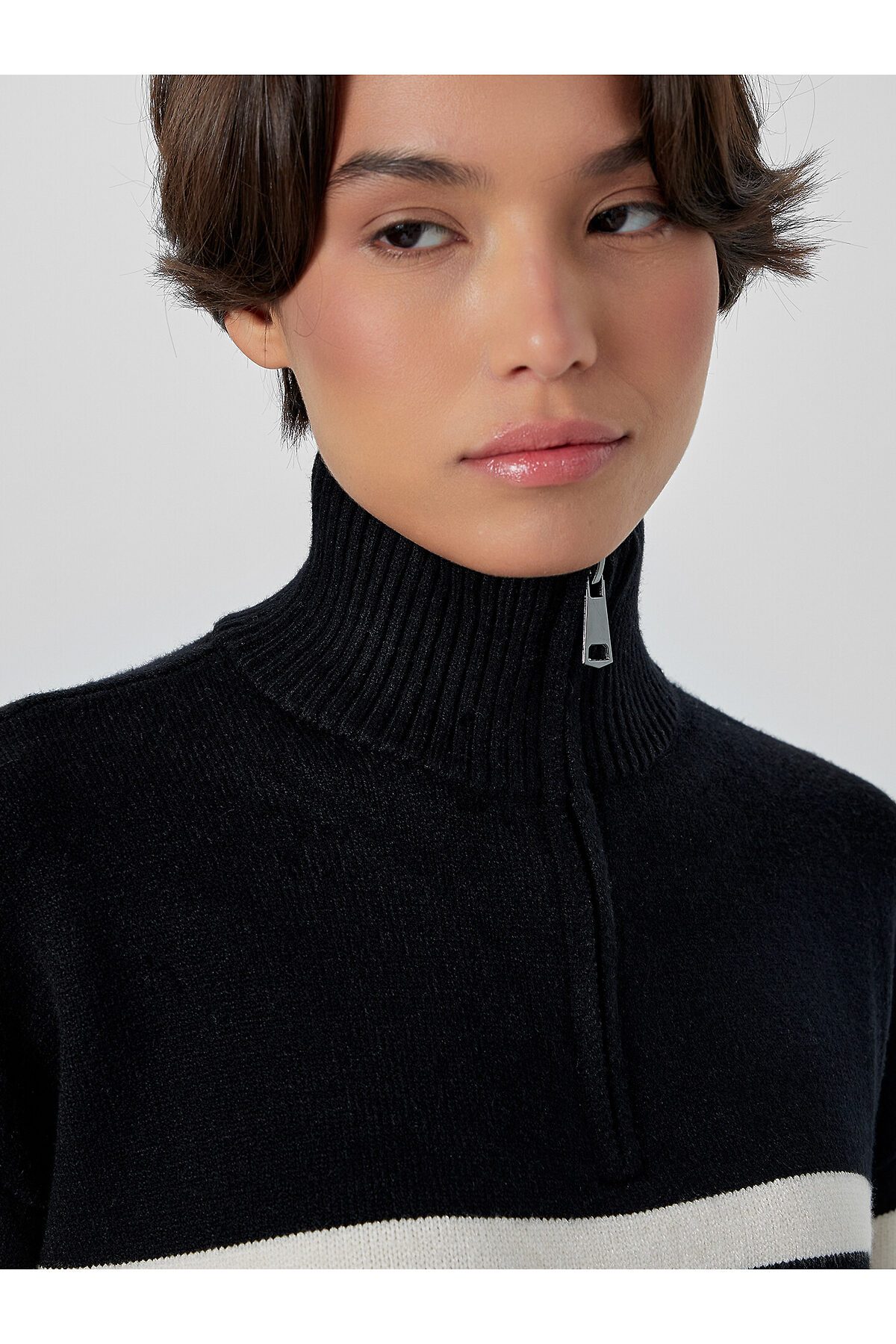 Женский вязаный джемпер — элегантная модель с практичной деталью. Удобная молния, которая расстегивается от середины груди до верха воротника, позволяет регулировать степень открытости и создавать многослойные образы. Модель выполнена из комбинированной пряжи: вискоза дарит нежность и мягкость, нейлон обеспечивает износостойкость и сохранение формы, а полиэстер добавляет практичности и упругости.