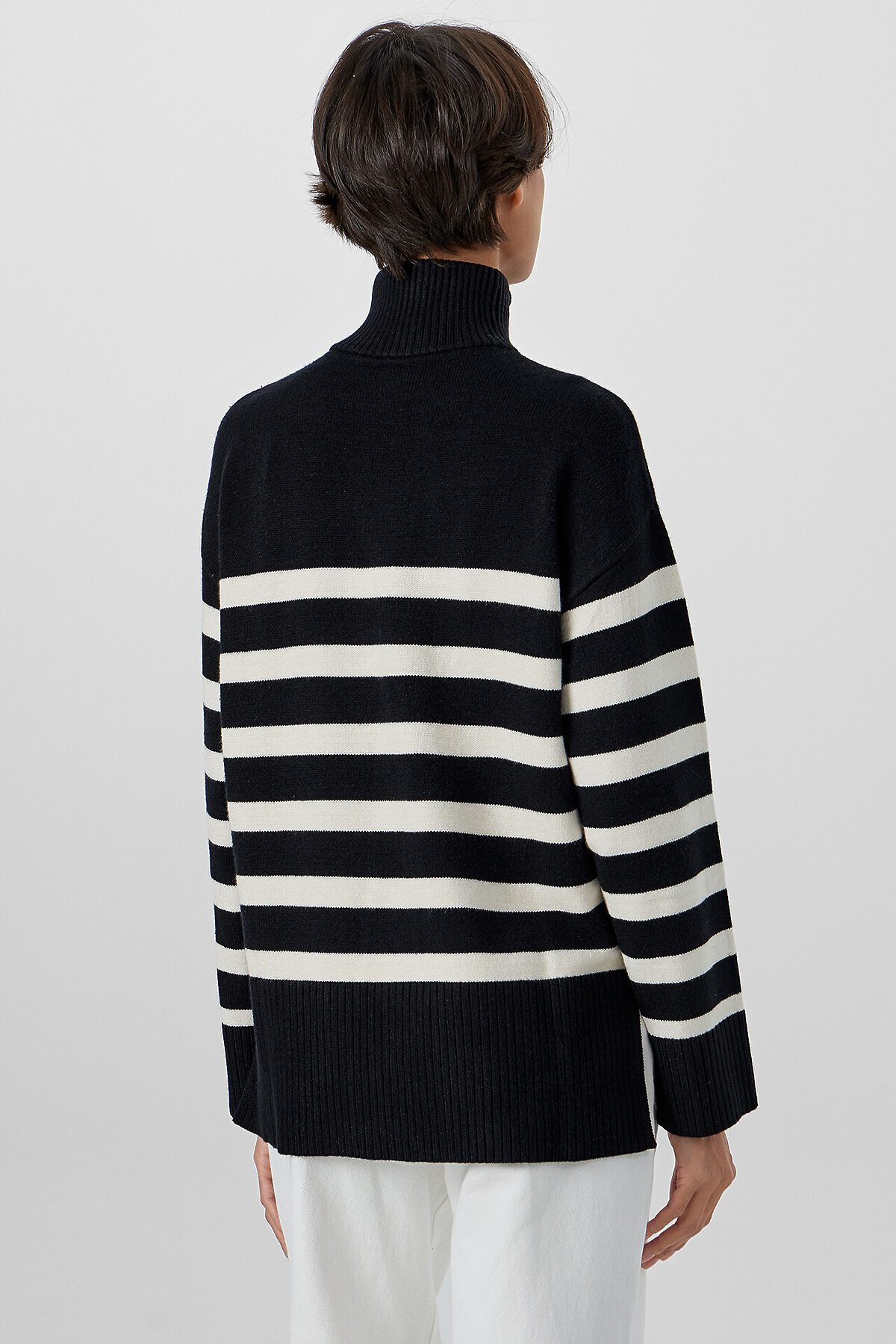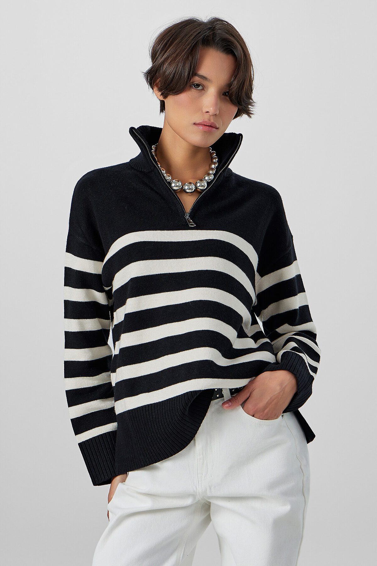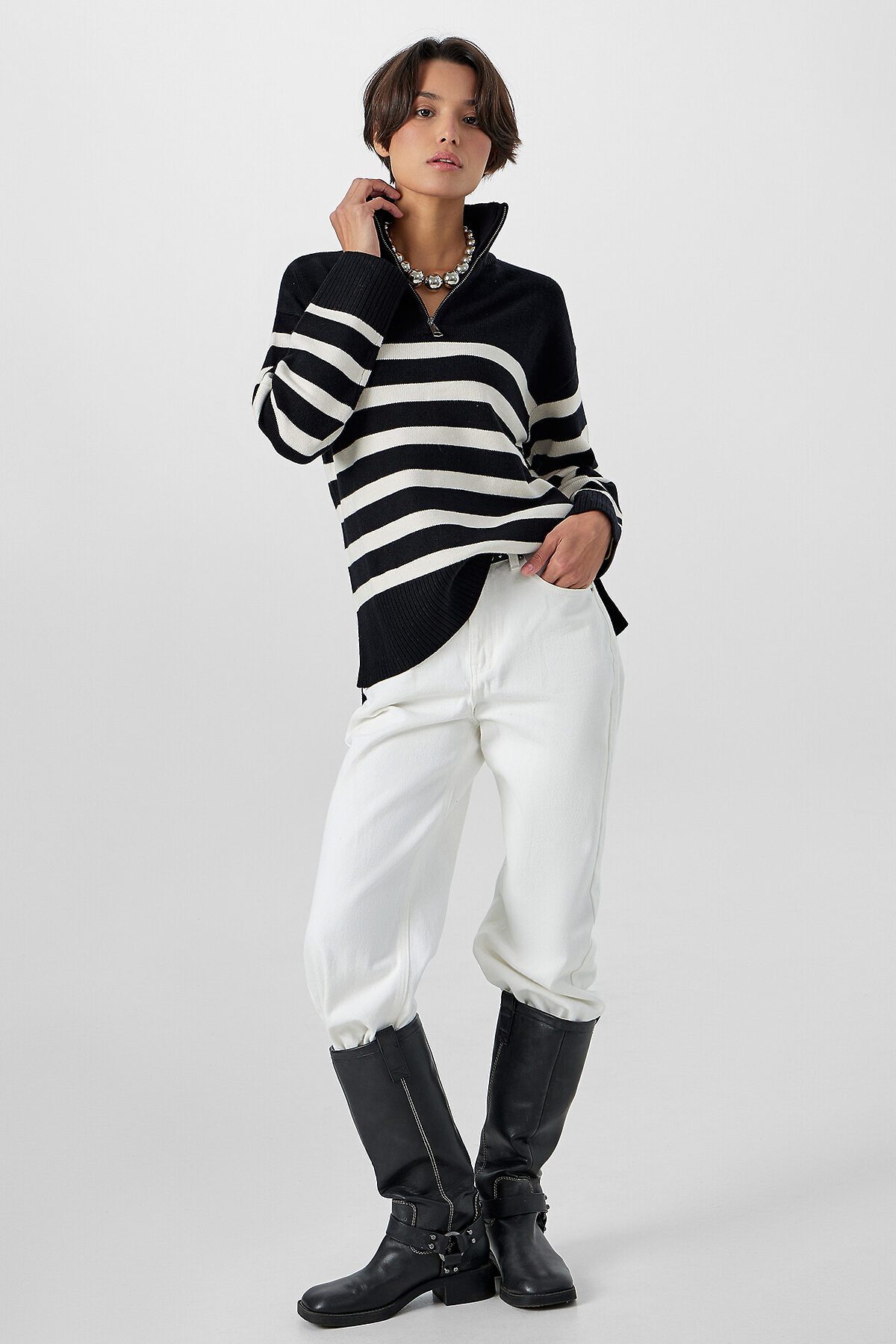 Женский вязаный джемпер — элегантная модель с практичной деталью. Удобная молния, которая расстегивается от середины груди до верха воротника, позволяет регулировать степень открытости и создавать многослойные образы. Модель выполнена из комбинированной пряжи: вискоза дарит нежность и мягкость, нейлон обеспечивает износостойкость и сохранение формы, а полиэстер добавляет практичности и упругости.
