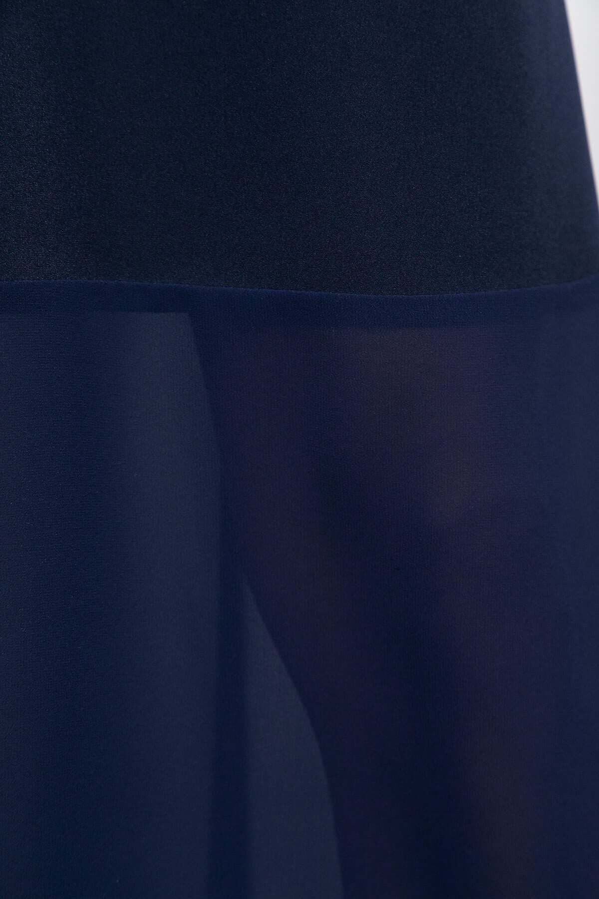 Нарядное платье из костюмной ткани синего цвета — идеальный выбор для особых случаев. Его длина макси и шифон по низу придают образу элегантность и уникальность. Короткие рукава подчеркивают стильный силуэт, а однотонный дизайн позволяет легко комбинировать платье с разными аксессуарами для создания разнообразных образов. Это универсальное и элегантное платье станет отличным выбором для торжественных мероприятий и праздников.