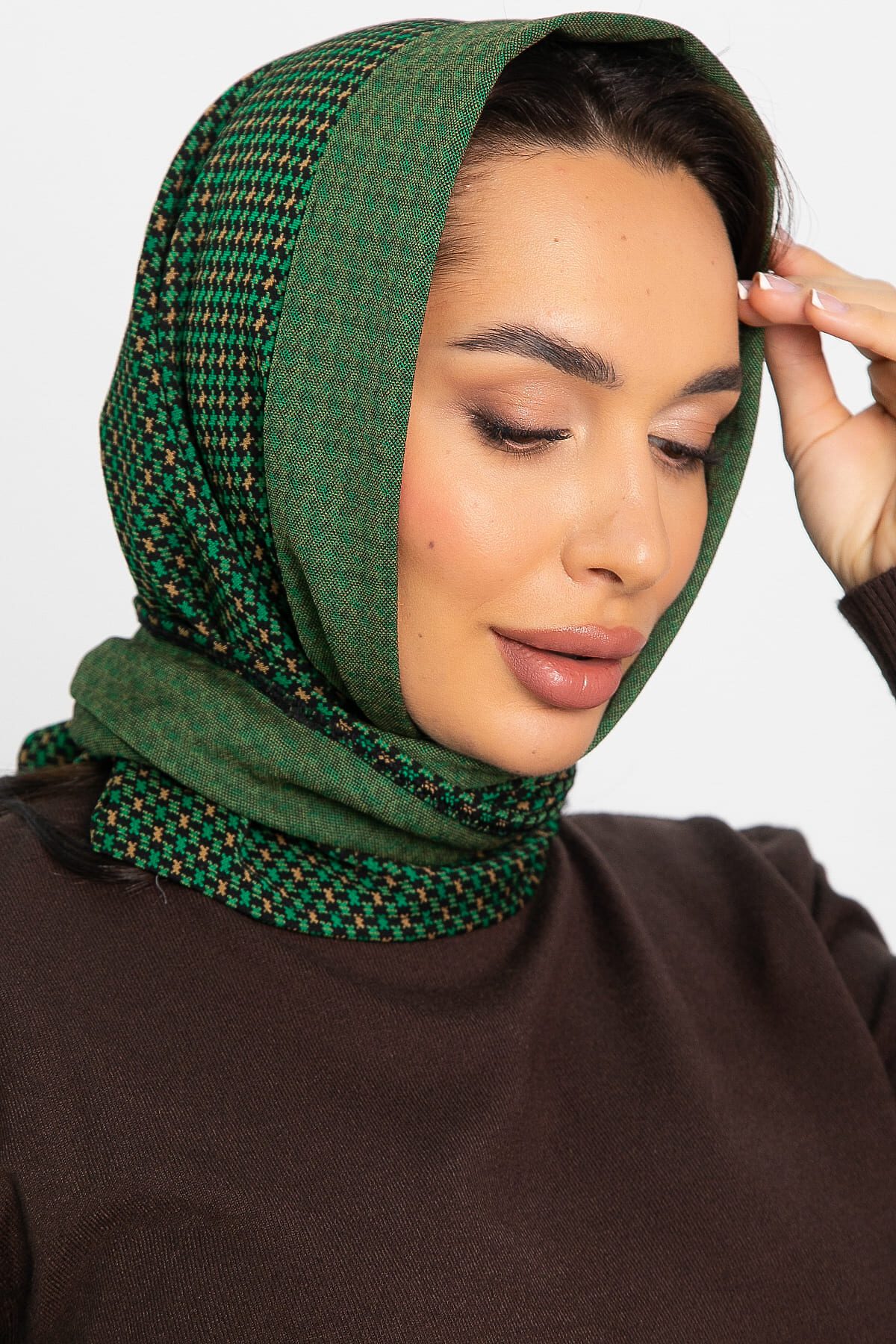 Косынка с отворотом в зелено-бежевом цвете позволит Вам создать невероятно стильный образ. Она имеет правильный крой с удлиненными краями для завязывания как спереди, так и сзади. С этим аксессуаром можно создавать огромное количество стильных образов и использовать его в разных стилях. А добавление таких деталей, как очки, яркая помада или стильная сумка, дадут еще больше возможностей для воплощения Ваших идей.