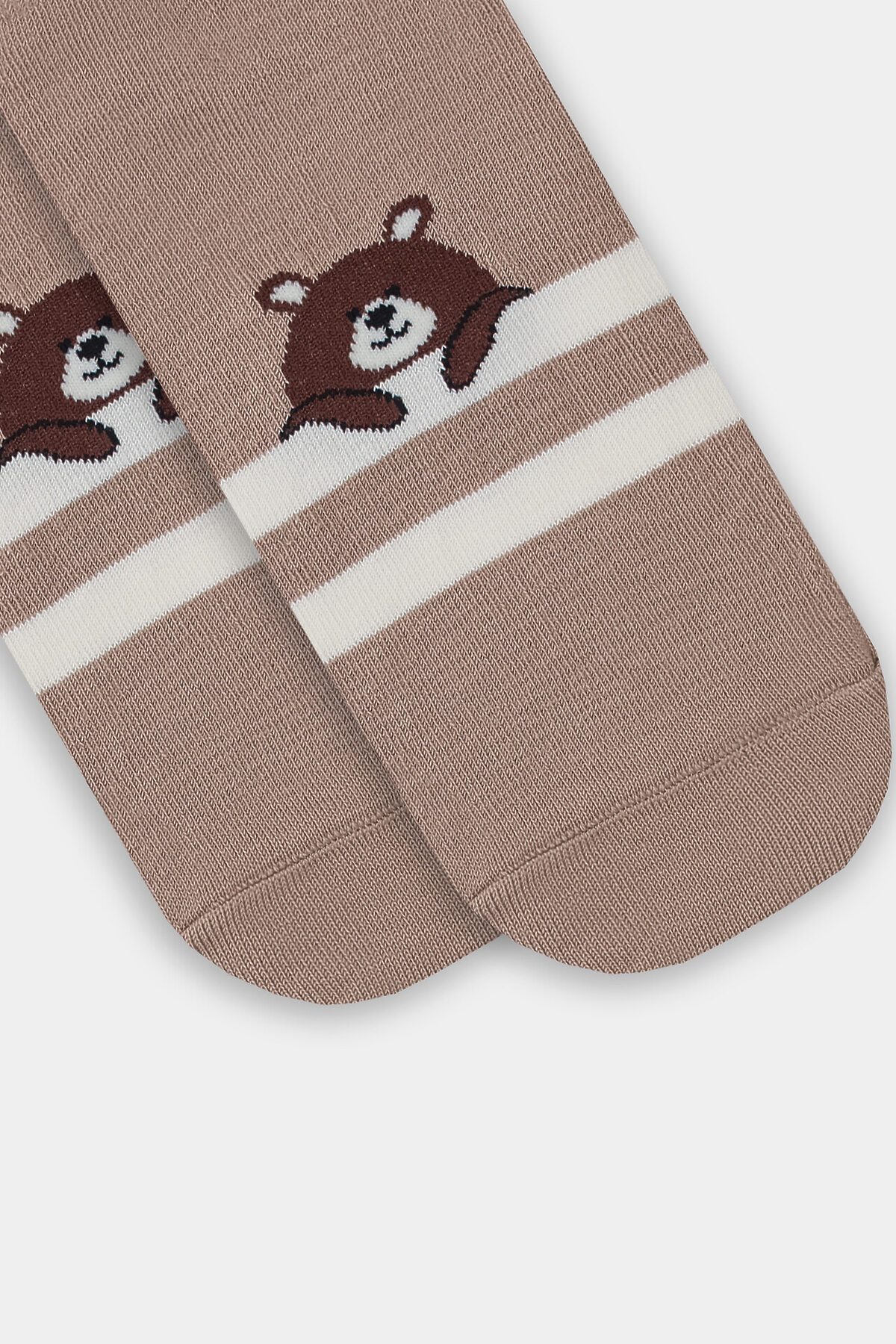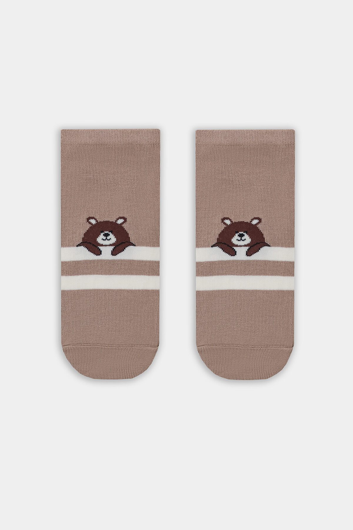 рис.3180 Детский укороченный носок с рисунком в виде полосок и мишки.