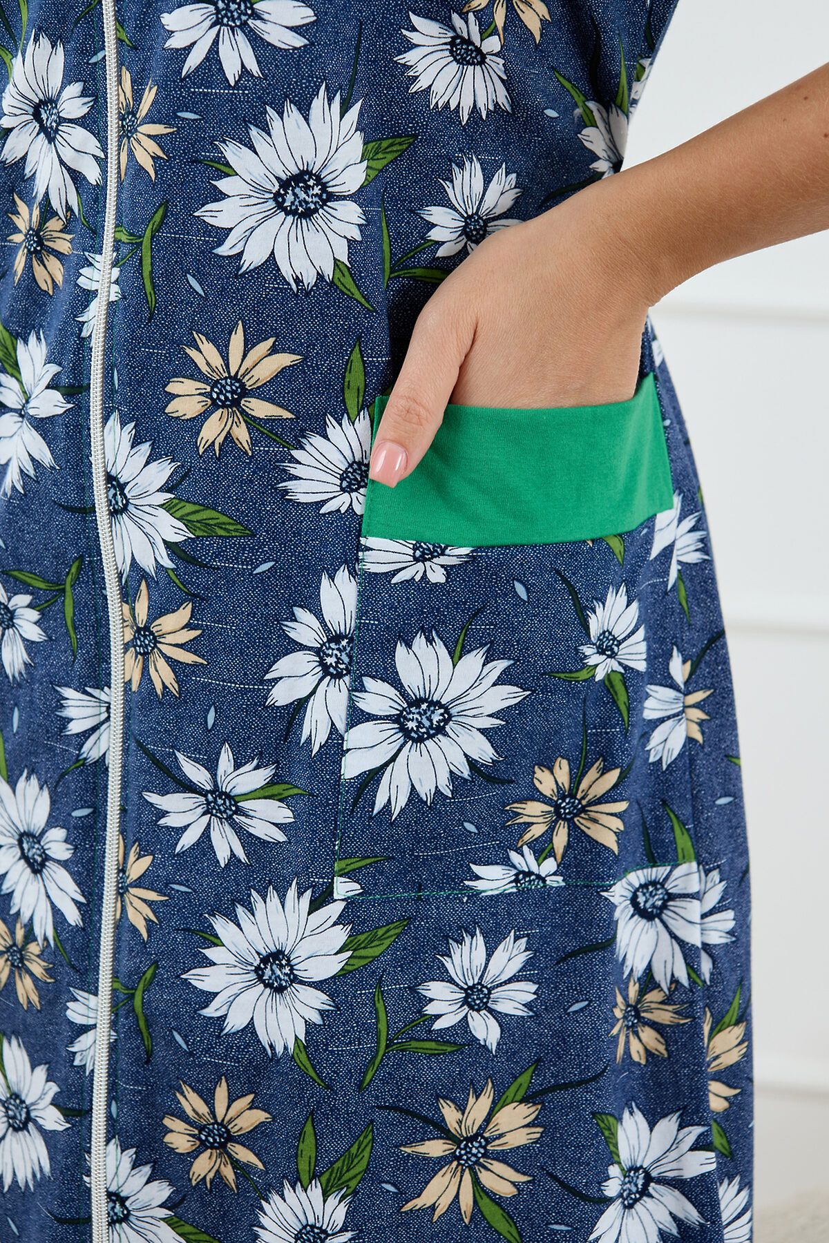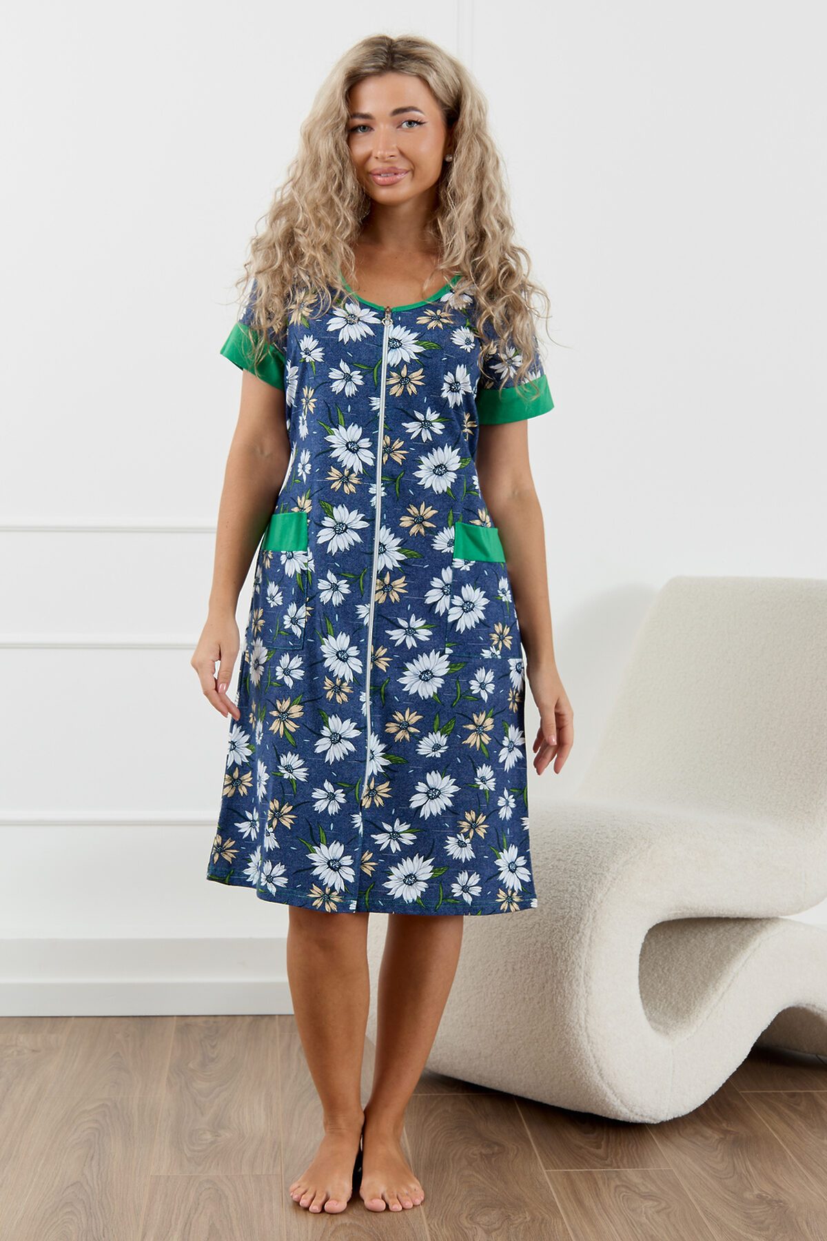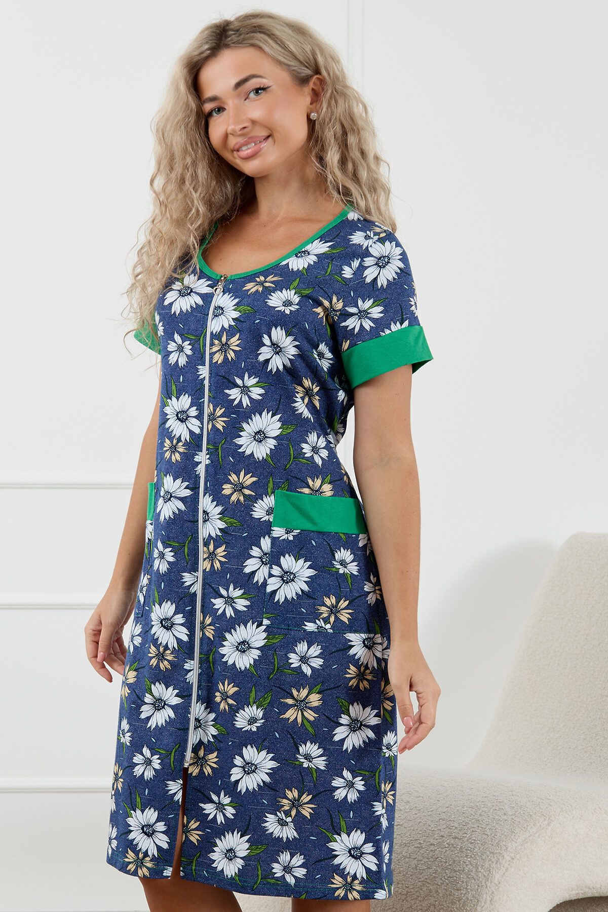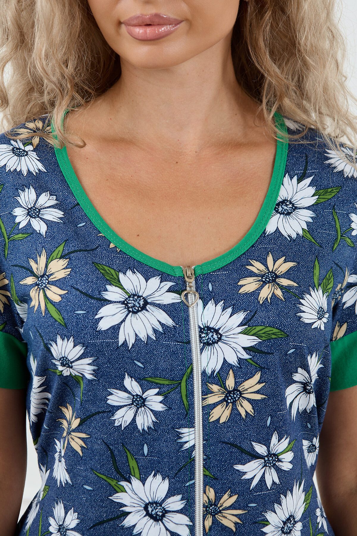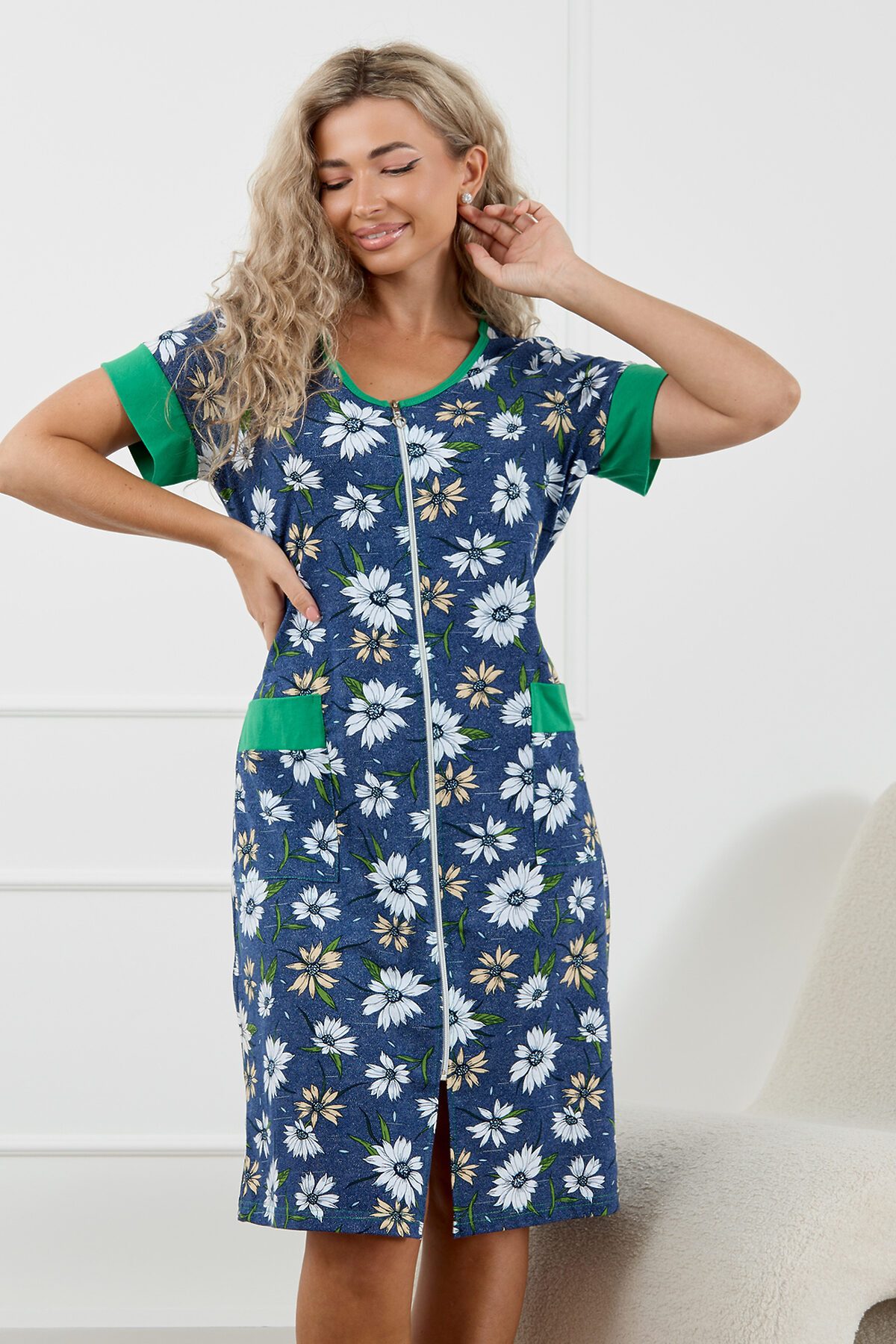 Женский халатик на молнии самая распространенная и универсальная одежда для домашнего отдыха и хозяйственных хлопот. После трудного рабочего дня, приходя домой, первым делом хочется переодеться. И данная модель это идеальный вариант среди представительниц прекрасной половины человечества. Модель выполнена из 100% хлопчатобумажной ткани. Халат так же дополняет яркая отделка по рукавам и карманам. А пояс на линии талии поможет легко смоделировать женственный силуэт и при этом Вы будете чувствовать себя легко и непринуждённо. Данная модель прекрасно подойдёт для дома, дачи и отдыха, создавая по-настоящему яркий образ и хорошее настроение! Рост модели на фото 165см.