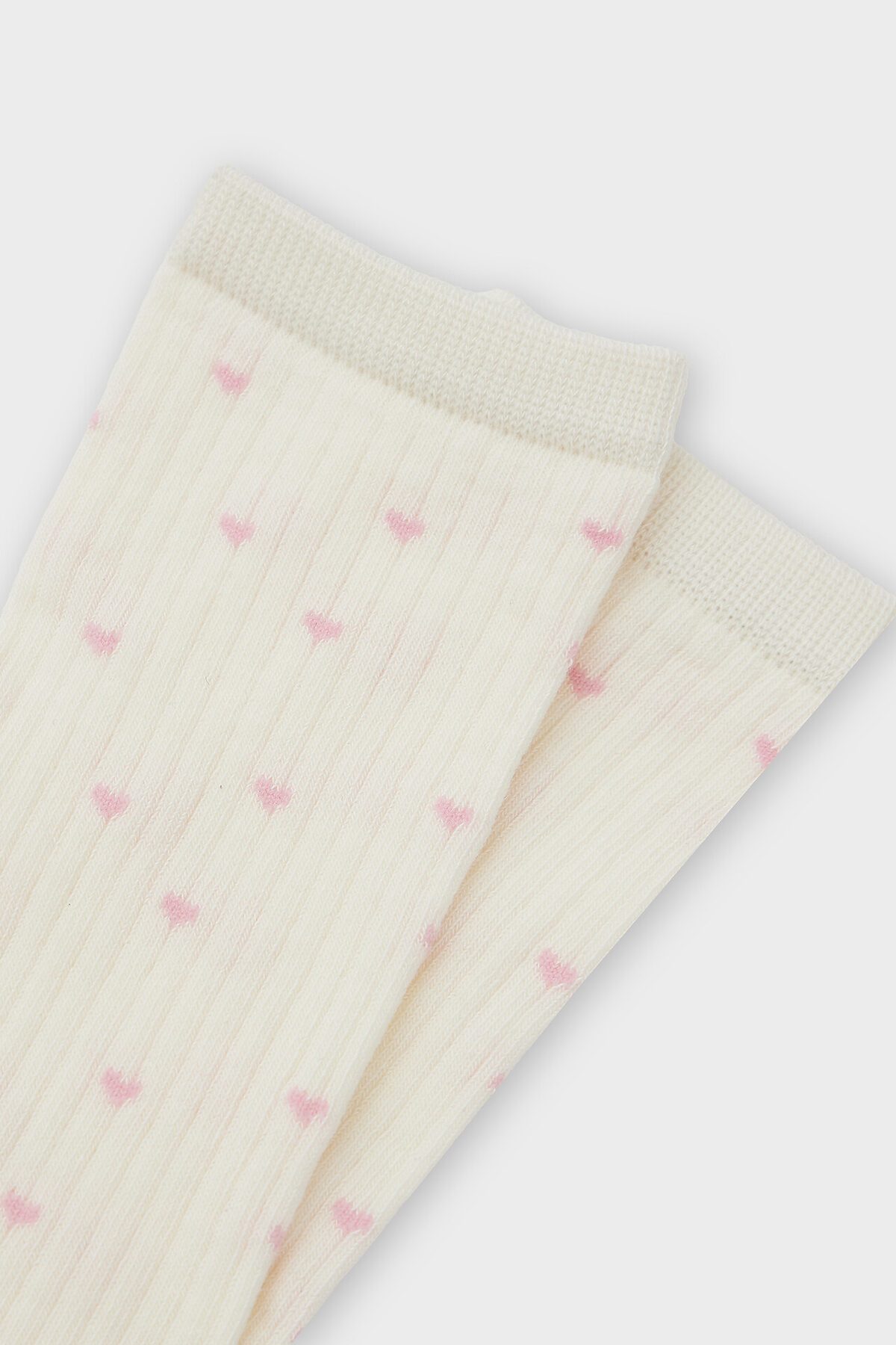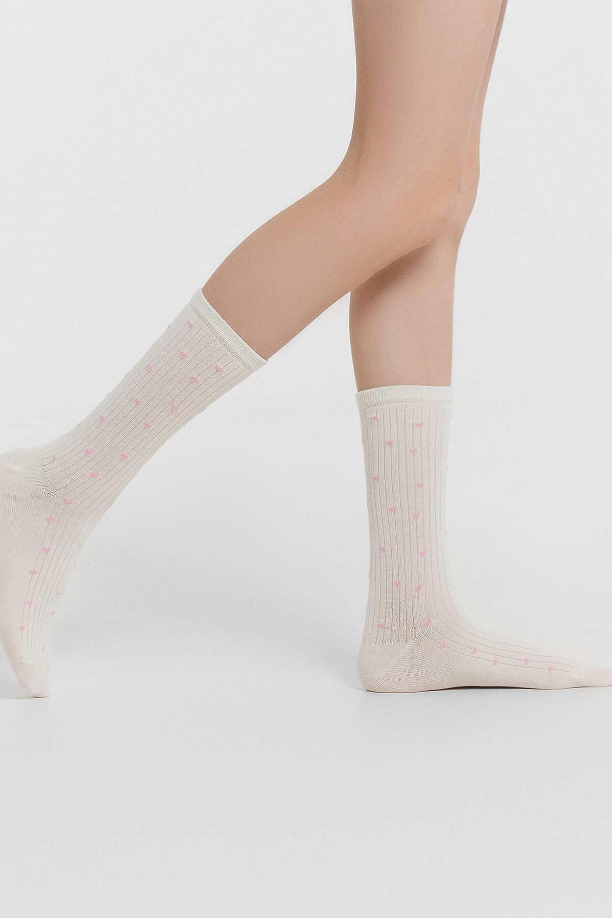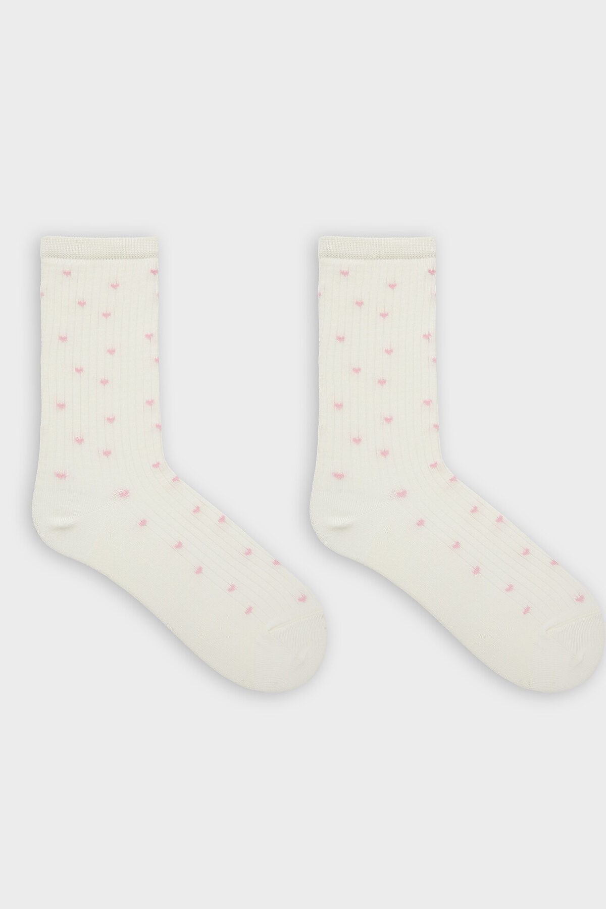 рис.3165 Детские классические носки выполненных перекидным переплетением (лапша) с рисунком в виде мелких сердечек.