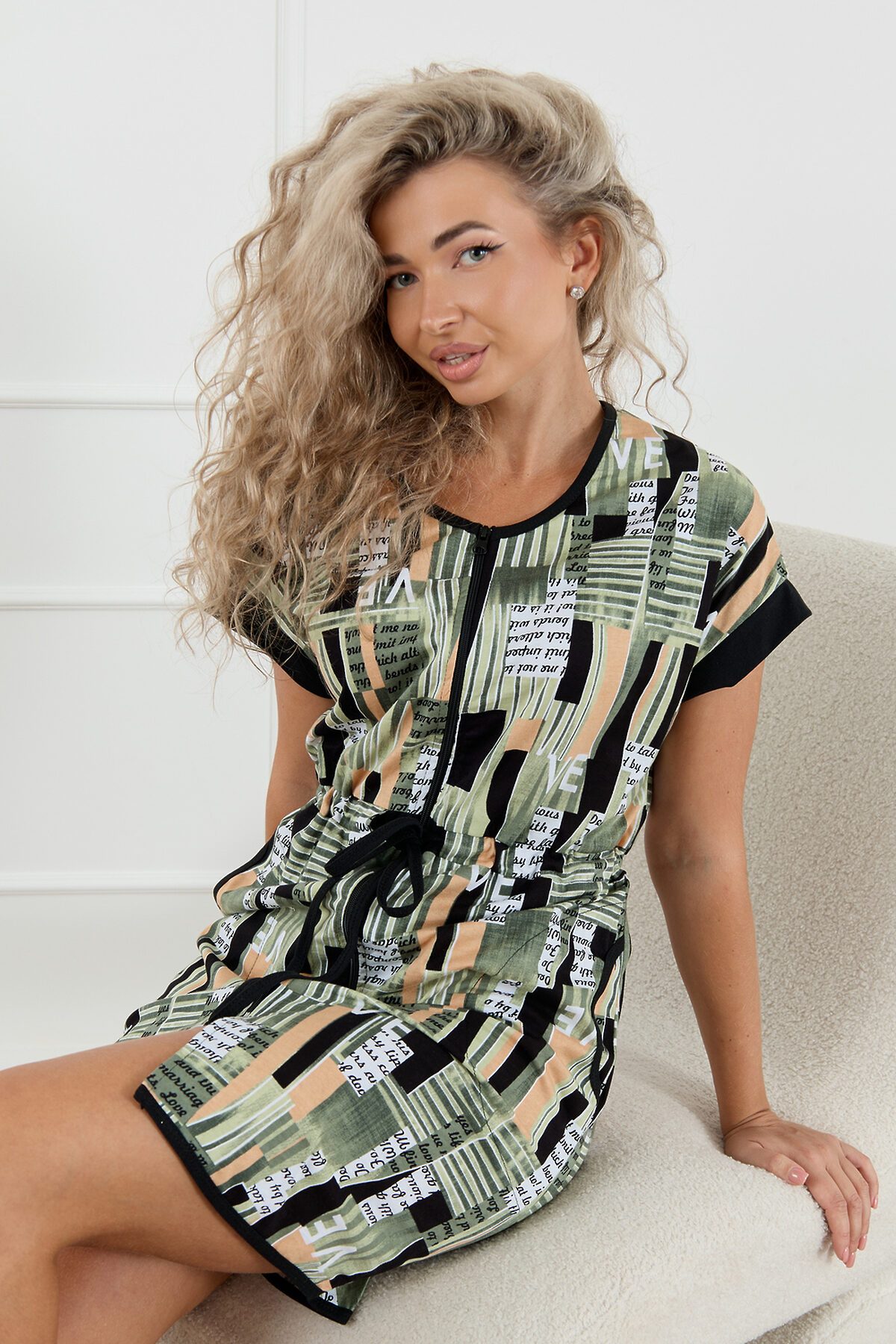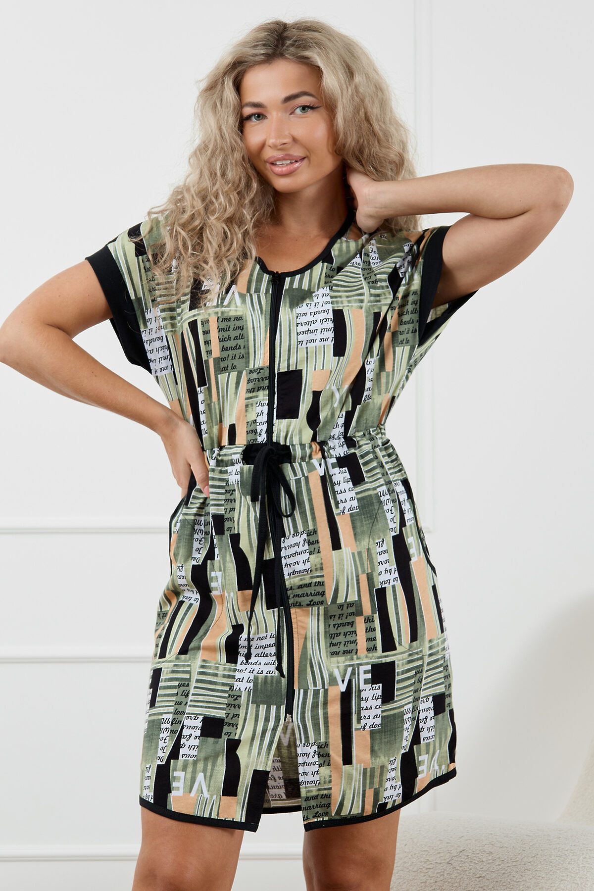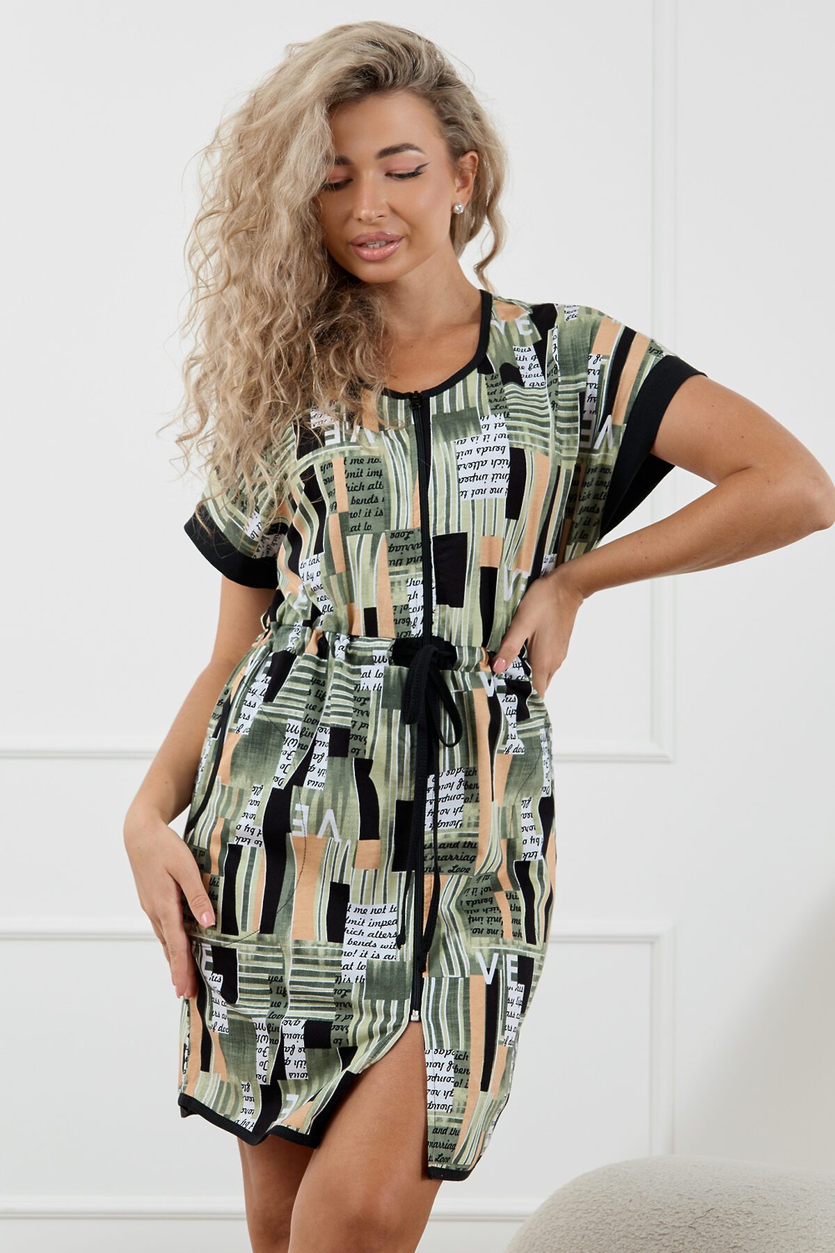 Женский трикотажный халат на молнии без сомнения станет самой желанной и любимой вещью в гардеробе любой дамы. Халатик укороченный, на кулисе со шнурком, с удобными карманами и молнией. Выглядит стильно и современно. Халатик такого плана подходит для фигур разного типа. Легкий и мягкий, качественный, дышащий, сшит из высококачественного трикотажа, подарит вам абсолютную непринужденность и легкость, простор в движении, идеально подойдет для беременных и кормящих и будет хорошим сопровождением в роддом и не вызовет раздражения, так как создан из натуральной ткани. Благодаря этому может стать прекрасным подарком для, мамы, подруги, бабушки, сестры или коллеги на любой праздник. Отлично сядет на женщин больших размеров. Данная модель будет кстати для отдыха на даче и даже поездки к морю. Домашняя одежда российского производства, имеет комфортную посадку, не линяет, не дает усадку после стирки и долго сохраняет первоначальный внешний вид. Халатик подчеркнет Ваш стиль и добавит молодежных нот в ваш образ, а затягивающийся пояс на талии придаст женственности и изящества вашему луку. Стирайте изделия из хлопка на бережном режиме с температурой не выше 30С, чтобы сохранить цвет, форму и фактуру материала. Приобретая наши изделия, радуйте себя и своих близких. Ориентируясь по таблице замеров, обратите внимание, что замеры длины рукава проводились от точки основания шеи.