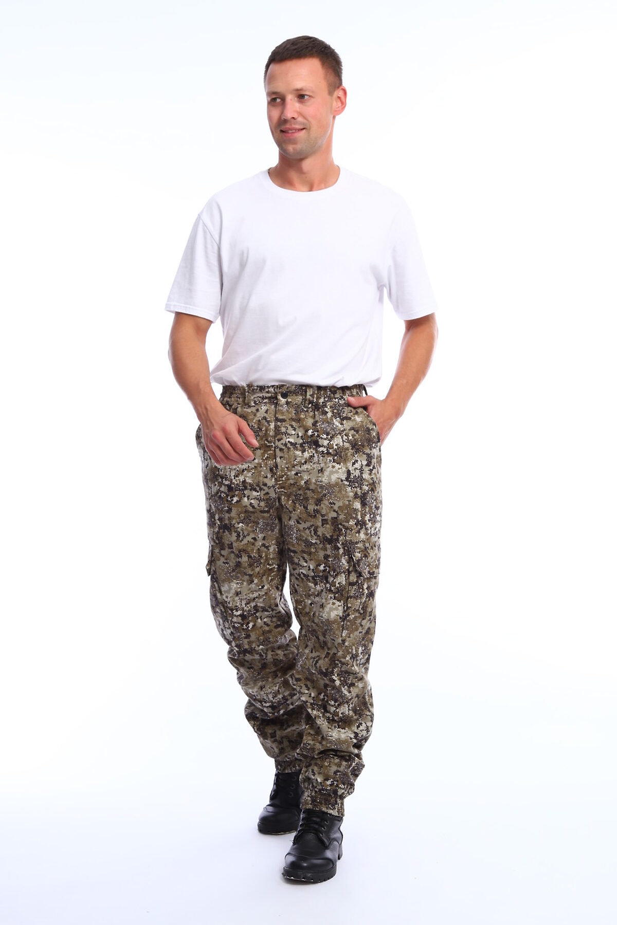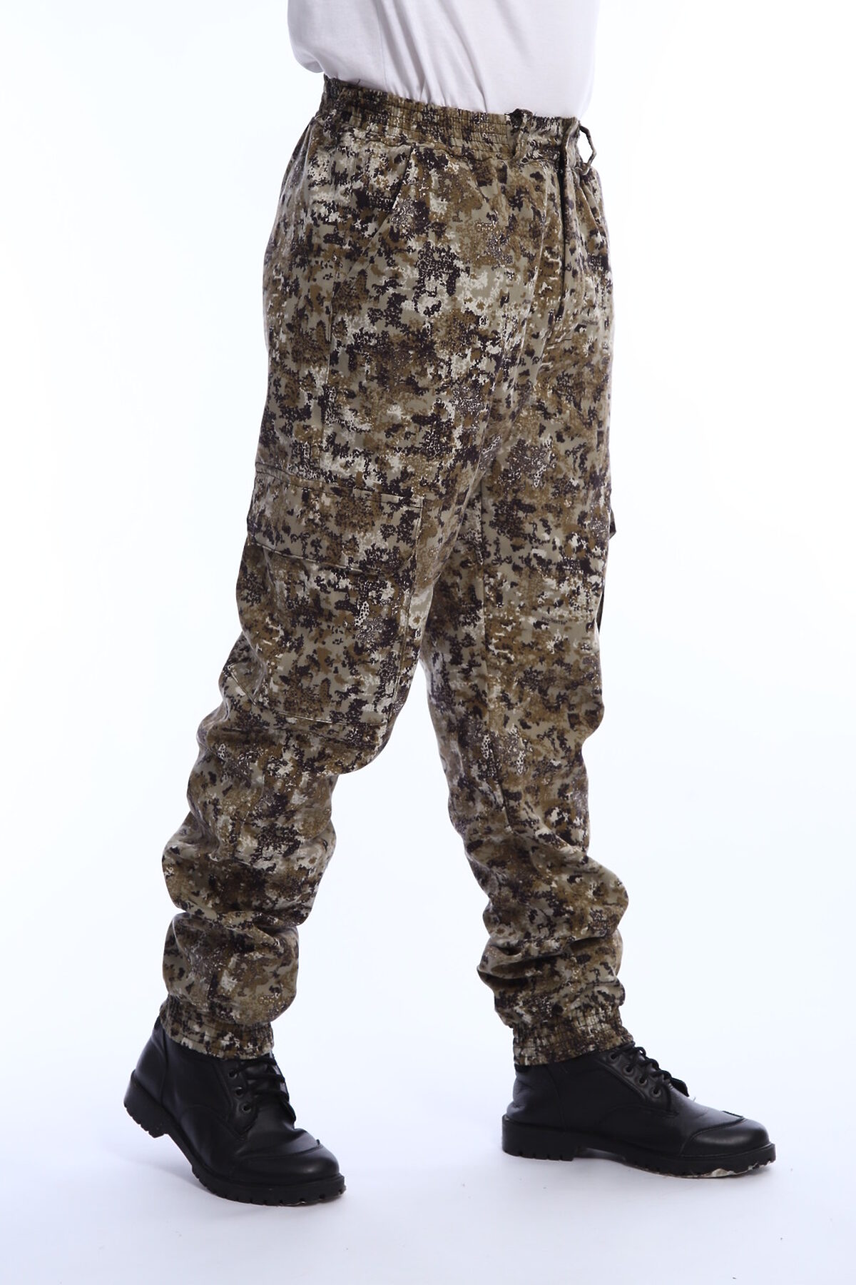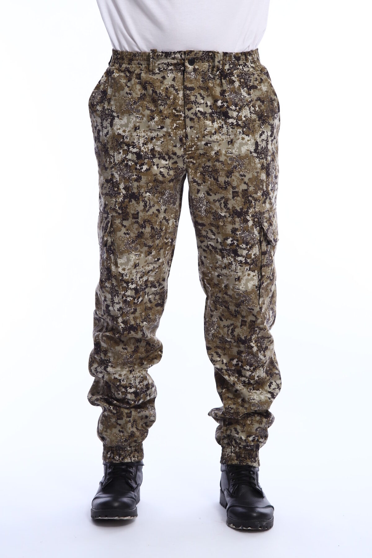 Брюки карго камуфляжные от Бренда СКЕЛА это отличное решение для тех мужчин, кто предпочитает комфорт и практичность в одежде. Штаны тактические мужские изготовлены из смесовой ткани 35% натурального хлопка и 65% полиэстера, что придает им повышенную прочность и стойкость цвета при кажущейся легкости. Брюки джоггеры имеют два прорезных боковых кармана и два накладных вместительных кармана-полукнижка чуть выше колена, закрытые клапанами на липучке. Резинка в поясе позволяет очень комфортно подбирать для себя размер, подходит для мужчин с пузиком, имеют резинки внизу штанин. Штаны походные представлены в камуфляжном цвете расцветки стиля милитари Пиксель, которая неразличима глазом на фоне летней природы умеренной полосы. Походные брюки станут незаменимы для тех, кто занимается рыбалкой, охотой, туризмом, военно-тактическими играми, походом и активным отдыхом. Представлен широкий размерный ряд, включающий большие размеры. Произведено в России.
