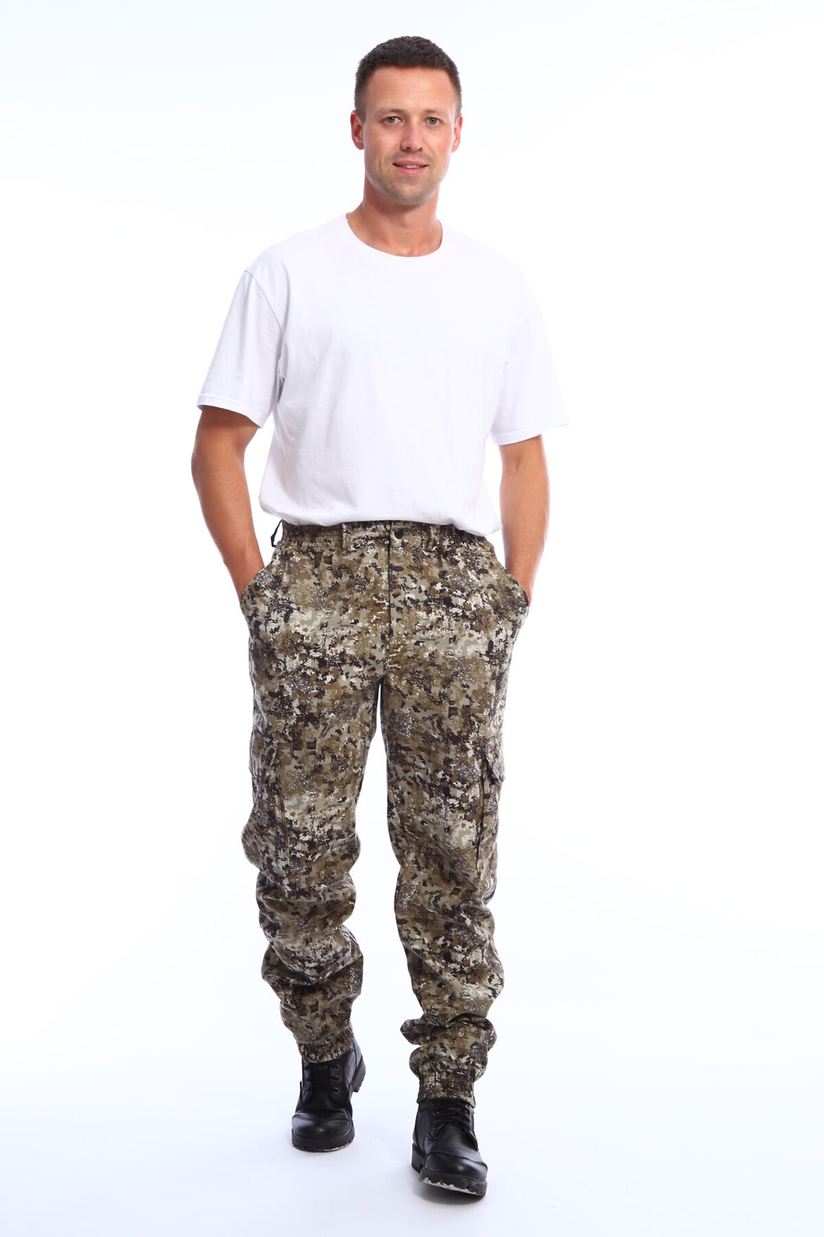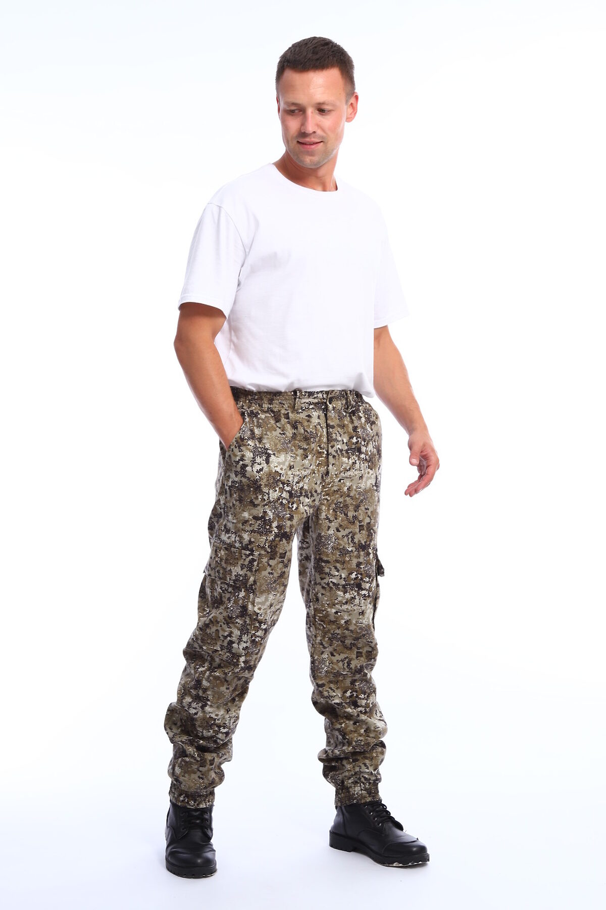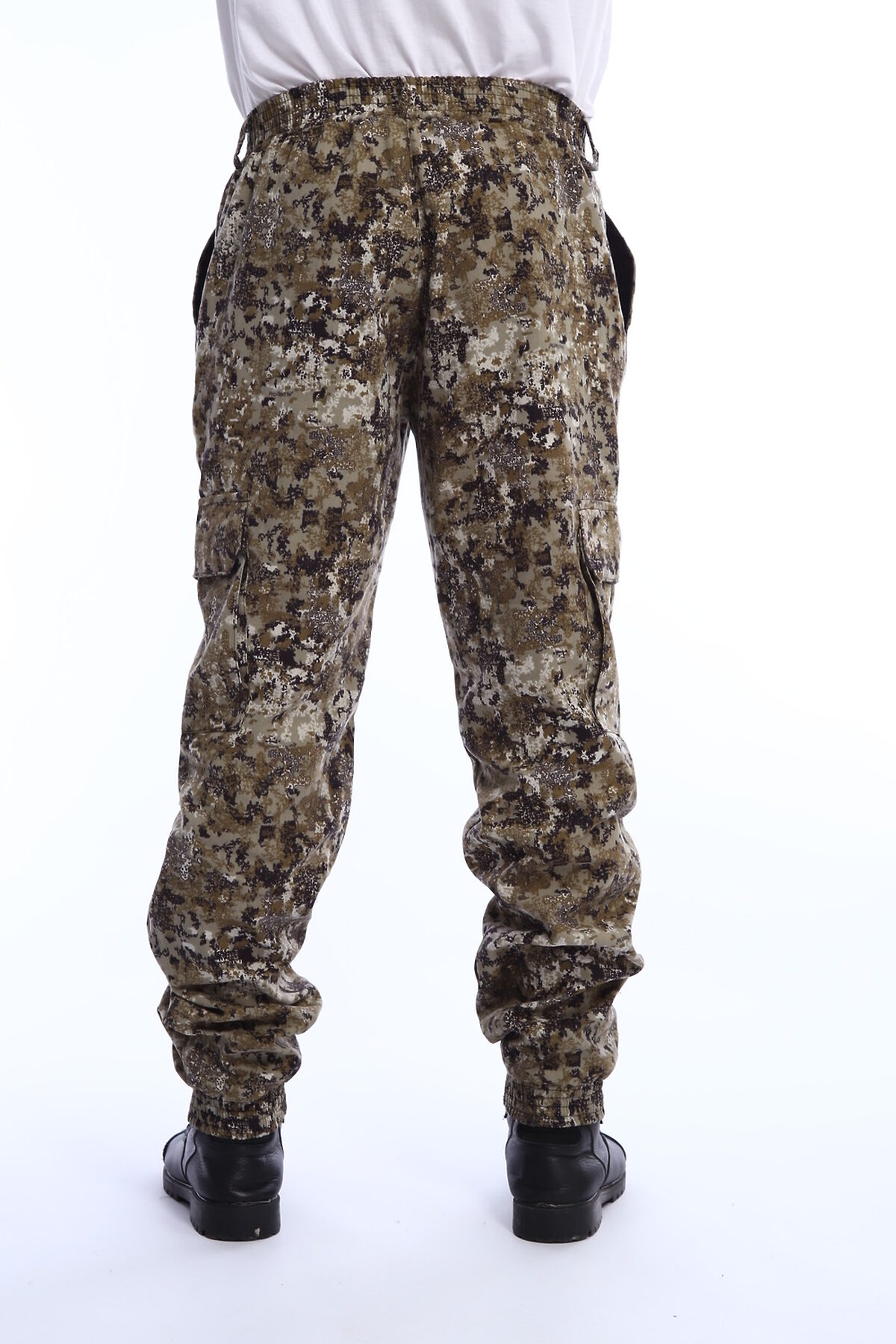 Брюки карго камуфляжные от Бренда СКЕЛА это отличное решение для тех мужчин, кто предпочитает комфорт и практичность в одежде. Штаны тактические мужские изготовлены из смесовой ткани 35% натурального хлопка и 65% полиэстера, что придает им повышенную прочность и стойкость цвета при кажущейся легкости. Брюки джоггеры имеют два прорезных боковых кармана и два накладных вместительных кармана-полукнижка чуть выше колена, закрытые клапанами на липучке. Резинка в поясе позволяет очень комфортно подбирать для себя размер, подходит для мужчин с пузиком, имеют резинки внизу штанин. Штаны походные представлены в камуфляжном цвете расцветки стиля милитари Пиксель, которая неразличима глазом на фоне летней природы умеренной полосы. Походные брюки станут незаменимы для тех, кто занимается рыбалкой, охотой, туризмом, военно-тактическими играми, походом и активным отдыхом. Представлен широкий размерный ряд, включающий большие размеры. Произведено в России.
