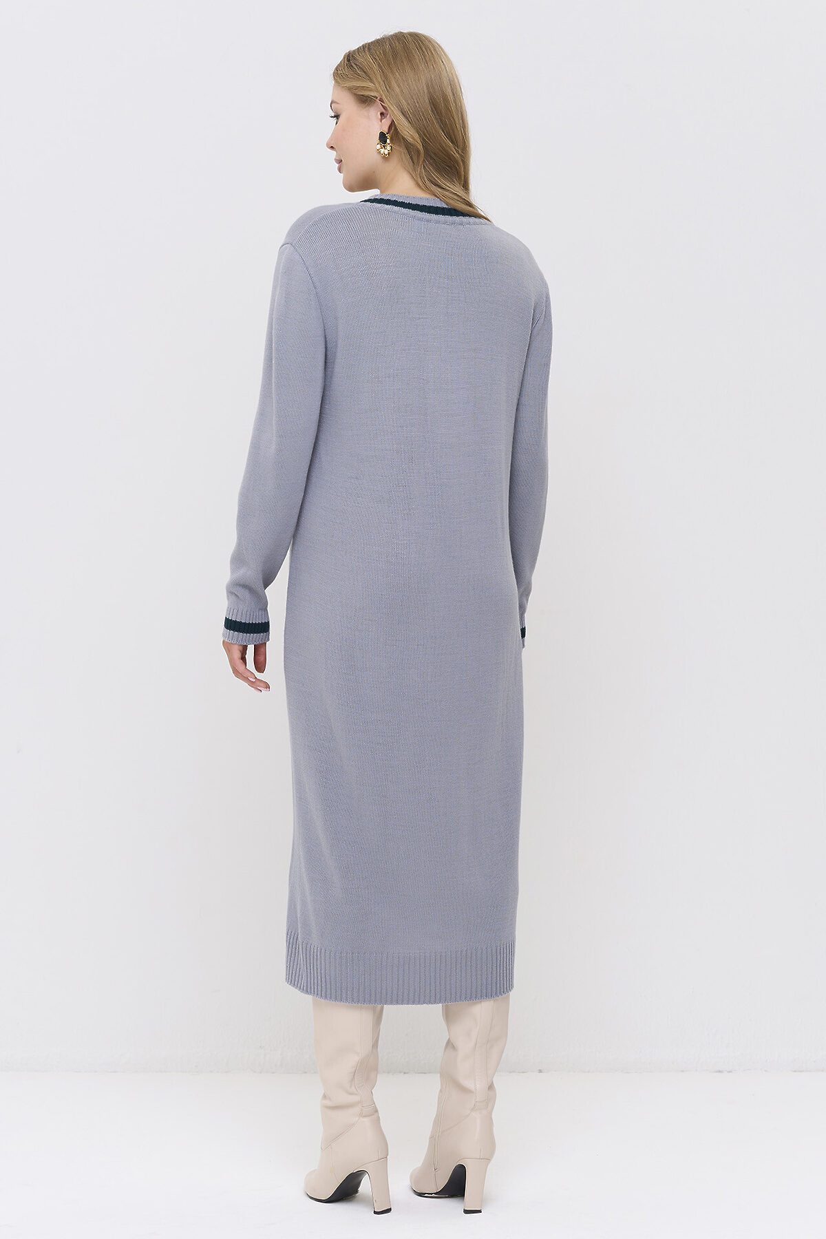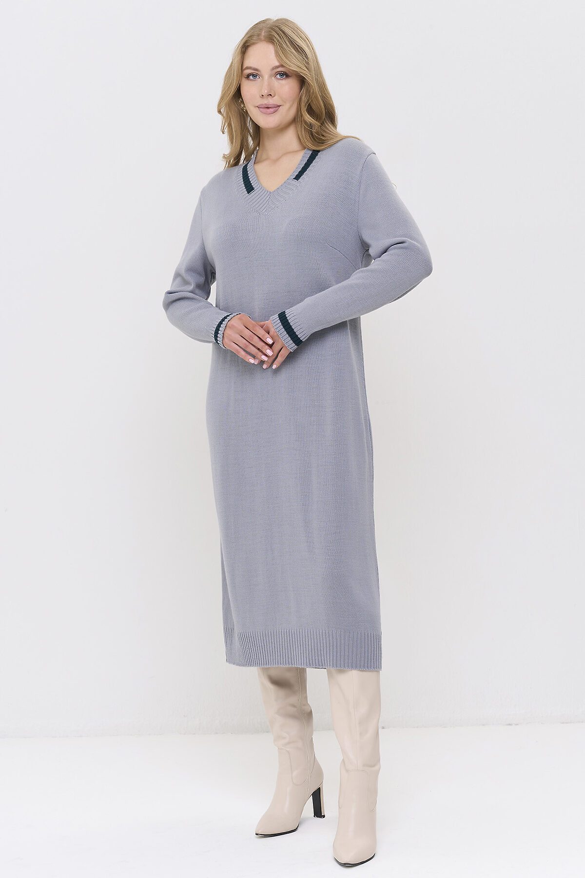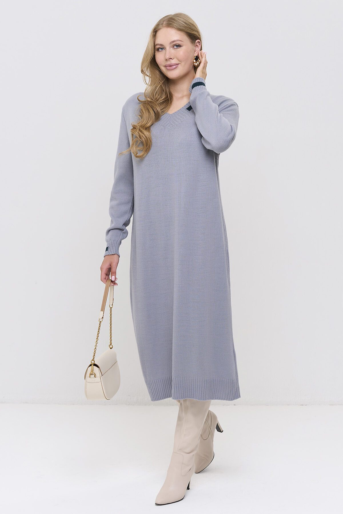 Вязаное платье с V-образным вырезом горловины.