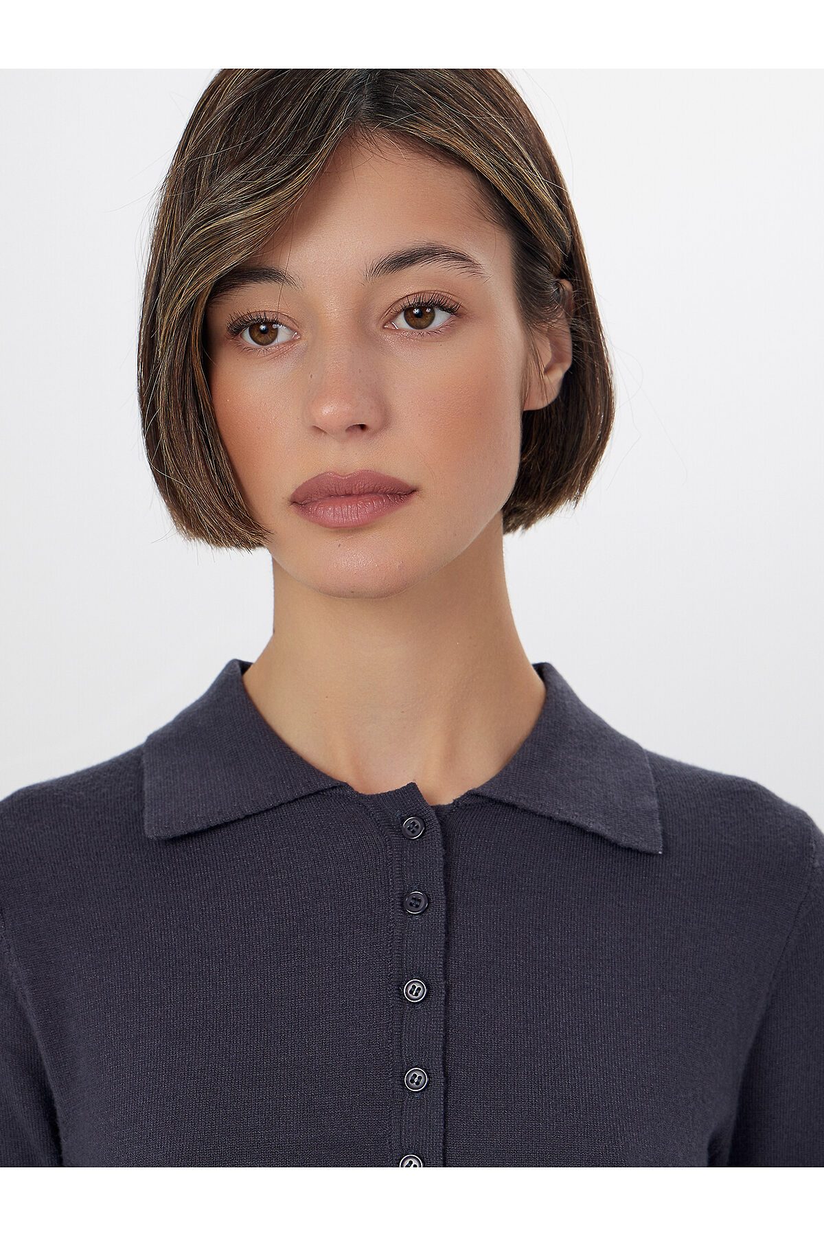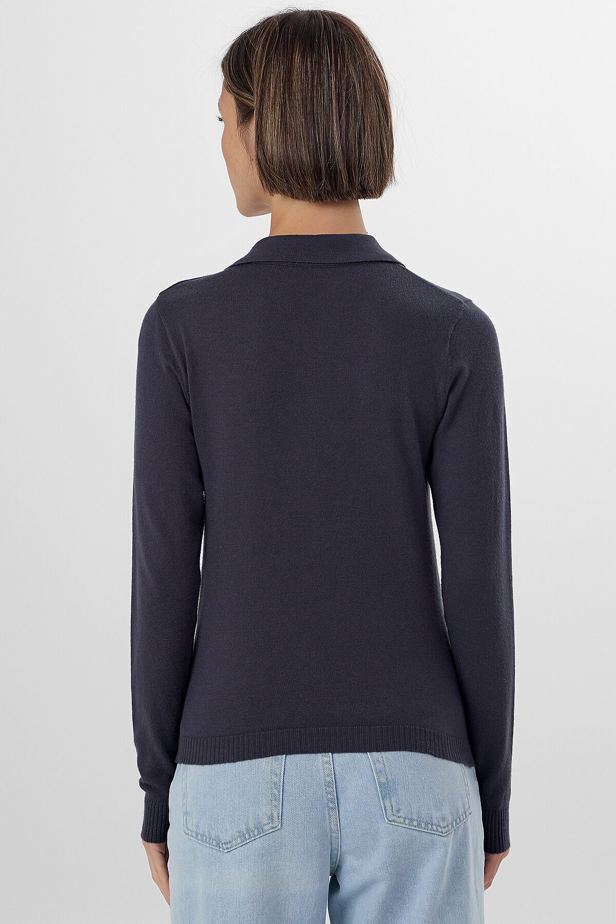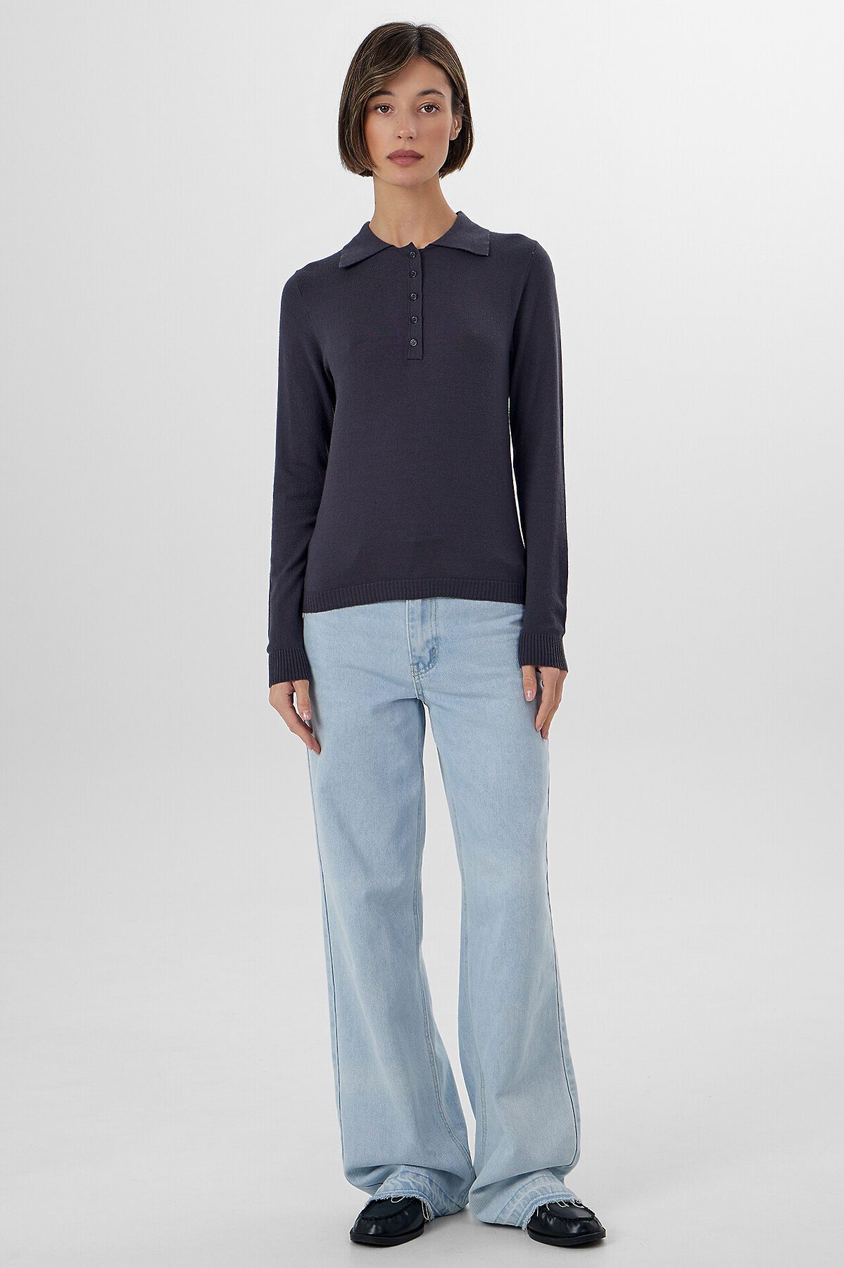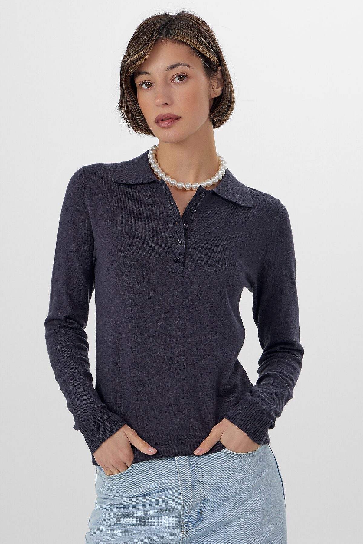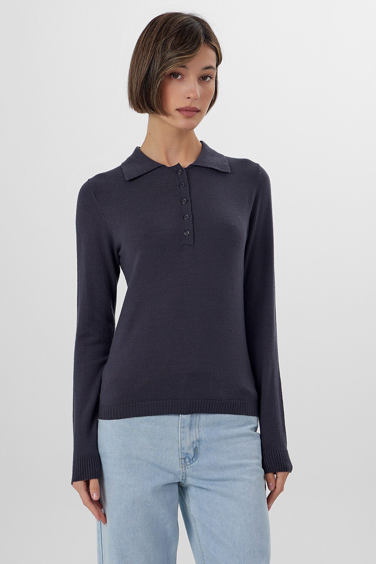 Женское поло с длинным рукавом объединяет в себе элегантность повседневного стиля и комфорт. Классический воротник и застежка на пять пуговиц создают аккуратный, выразительный силуэт, который уместен и в офисе, и на прогулке, и на дружеской встрече. Модель выполнена из особой смеси вискозы и нейлона — это сочетание дарит мягкость и легкий шелковистый блеск, при этом ткань достаточно упругая, чтобы хорошо держать форму.