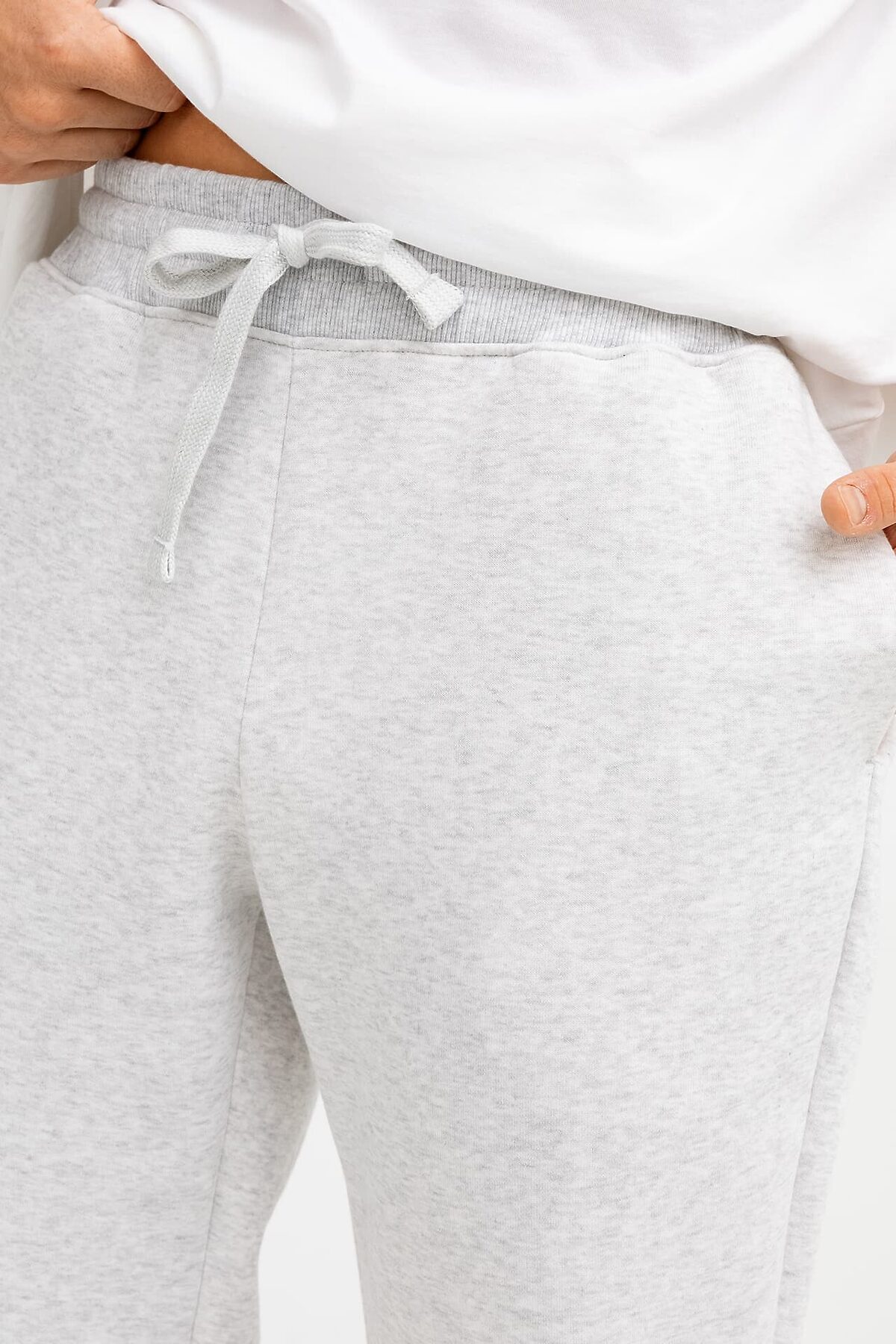 Стильные брюки из трикотажного футера с теплым подчесом. Силуэт зауженный, штанины с манжетами. Есть удобные боковые карманы. В поясе – эластичная тесьма и шнурок-затяжка. Просто, комфортно, актуально!