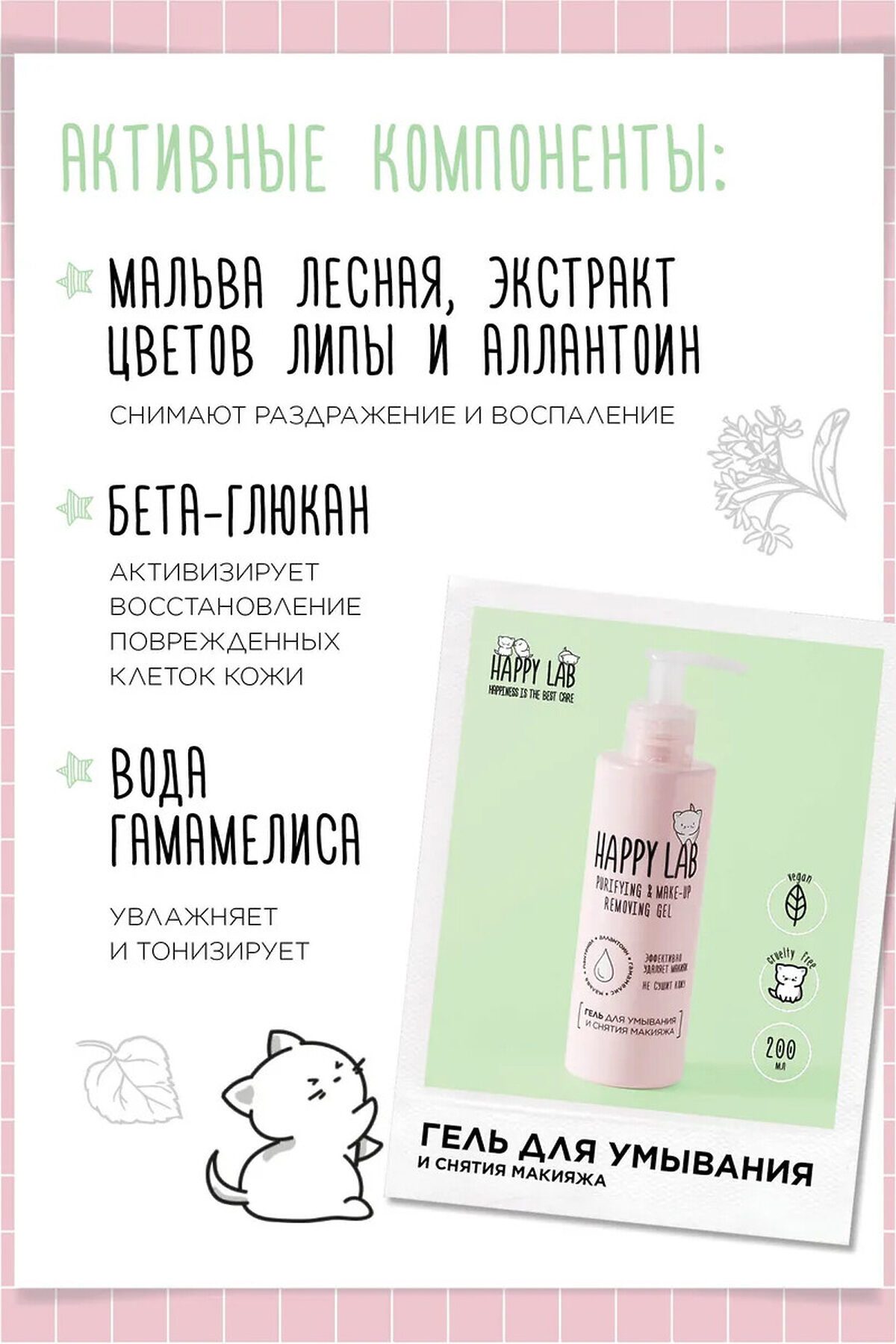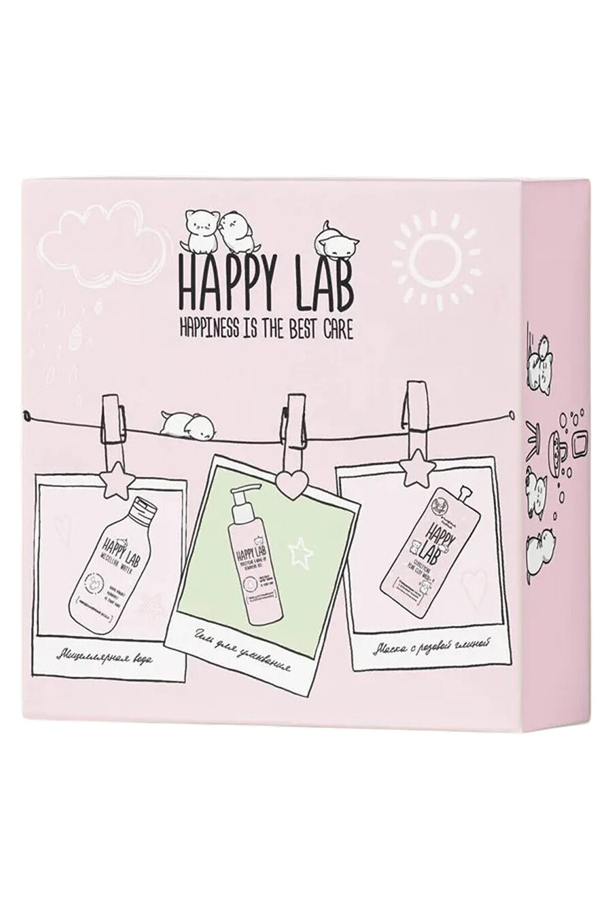 Состав набора: 1. Гель для умывания и снятия макияжа Happy Lab, 200 мл Мягкое очищение без чувства стянутости. Подходит даже для чувствительной кожи. Можно использовать двумя способами: — нанести на ватный диск для снятия макияжа, — или умыться с гелем как обычным средством для очищения. 2. Маска с розовой глиной Happy Lab, 20 мл Маска с розовой французской глиной мягко очищает кожу, впитывая излишки себума, но не пересушивает её. Дарит сияние, свежесть и ровный тон лица. 3. Мицеллярная вода Happy Lab, 300 мл (новый флакон) Мягкое, но эффективное очищение без раздражения. Подходит для снятия макияжа и ежедневного ухода. Можно не смывать — идеально для чувствительной кожи. Подарочный набор Happy Lab DREAM FACE — это полноценный ритуал ухода за кожей лица: очищение, восстановление и сияние! В набор входят три средства, которые идеально дополняют друг друга: гель для умывания и снятия макияжа, очищающая маска с розовой глиной и мицеллярная вода. Набор разработан специально для чувствительной и комбинированной кожи — мягкое очищение без пересушивания, комфорт и свежесть каждый день. Прекрасный подарок на 8 Марта, День рождения или просто для радости любимым Ключевые компоненты Гель для умывания и снятия макияжа Вода гамамелиса — успокаивает, увлажняет, тонизирует Бета-глюкан — активизирует восстановление клеток Экстракты мальвы и цветов липы — снимают раздражение Аллантоин — уменьшает воспаления и ускоряет регенерацию Маска с розовой глиной Розовая глина (Франция) — глубоко очищает и улучшает цвет лица Экстракт Терминалии Фердинанда и фермент Горденин — выравнивают тон и придают сияние White Ten — комплекс из 10 растительных экстрактов для осветления и защиты кожи Масло Мурумуру — питает и увлажняет Мицеллярная вода Бетаин — удерживает влагу и смягчает кожу Экстракты календулы, ромашки и зверобоя — успокаивают и уменьшают покраснение Без отдушек и спирта Способ применения: Очистите кожу мицеллярной водой или гелем для умывания. Нанесите маску с розовой глиной на очищенную кожу, оставьте на 10–15 минут, смойте тёплой водой. При необходимости снова протрите кожу мицеллярной водой и нанесите свой привычный крем. Состав: Мицеллярная вода: Aqua, Polysorbate-20, Glycerin, Disodium Cocoamphodiacetate, Polyaminopropyl Biguanide, Pantenol, Calendula officinalis extract, Chamomilla Recutita (Matricaria) Flower Extract, Hypericum Perforaturn Extract, Citric Acid Гель: Aquil, Glycereth-7 Caprylate/Caprate, Glycerin, 1,2 Propylene Glycol, Tilia cordata extract, Hamamelis Virginiana Leaf Extract, White Mulberry Extract, Malva Sylvestris (Mallow) Extract. HerbEX Yeast-Beta Glucan, Polysorbate 20, Methylpropanediol, Acrylates/C10-30 Alkyl Acrylate Crosspolyme, Propylene Glycol (and) Diazolidinyl Urea (and) Methylparaben (and) Propylparabe, Allantoin, D-Panthenol, Parfum, Sodium Hydroxide, Disodium EDTA. Маска: Aqua, Illite, Kaotine, Glycerin, Bentonite, Stearic acid, Myristyl Alcohol, Myristyl Glucoside, Methylpropane