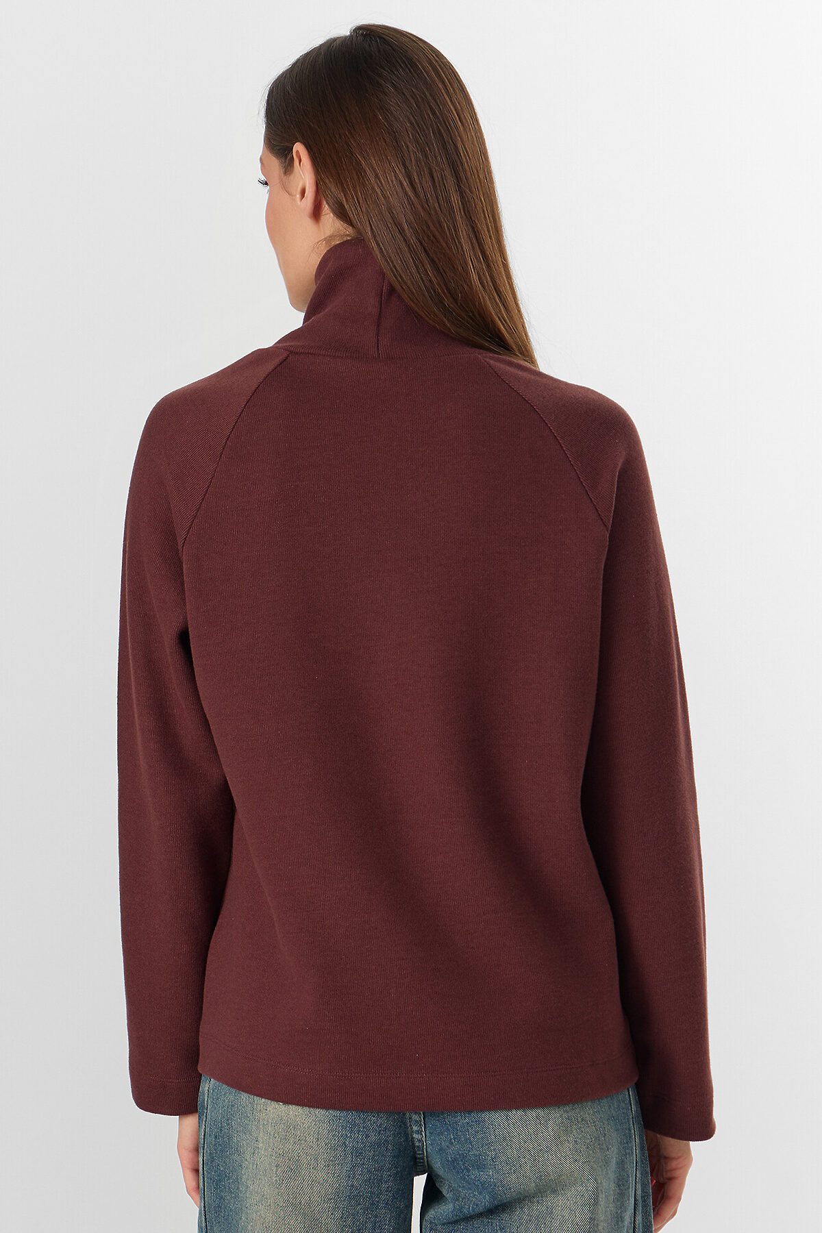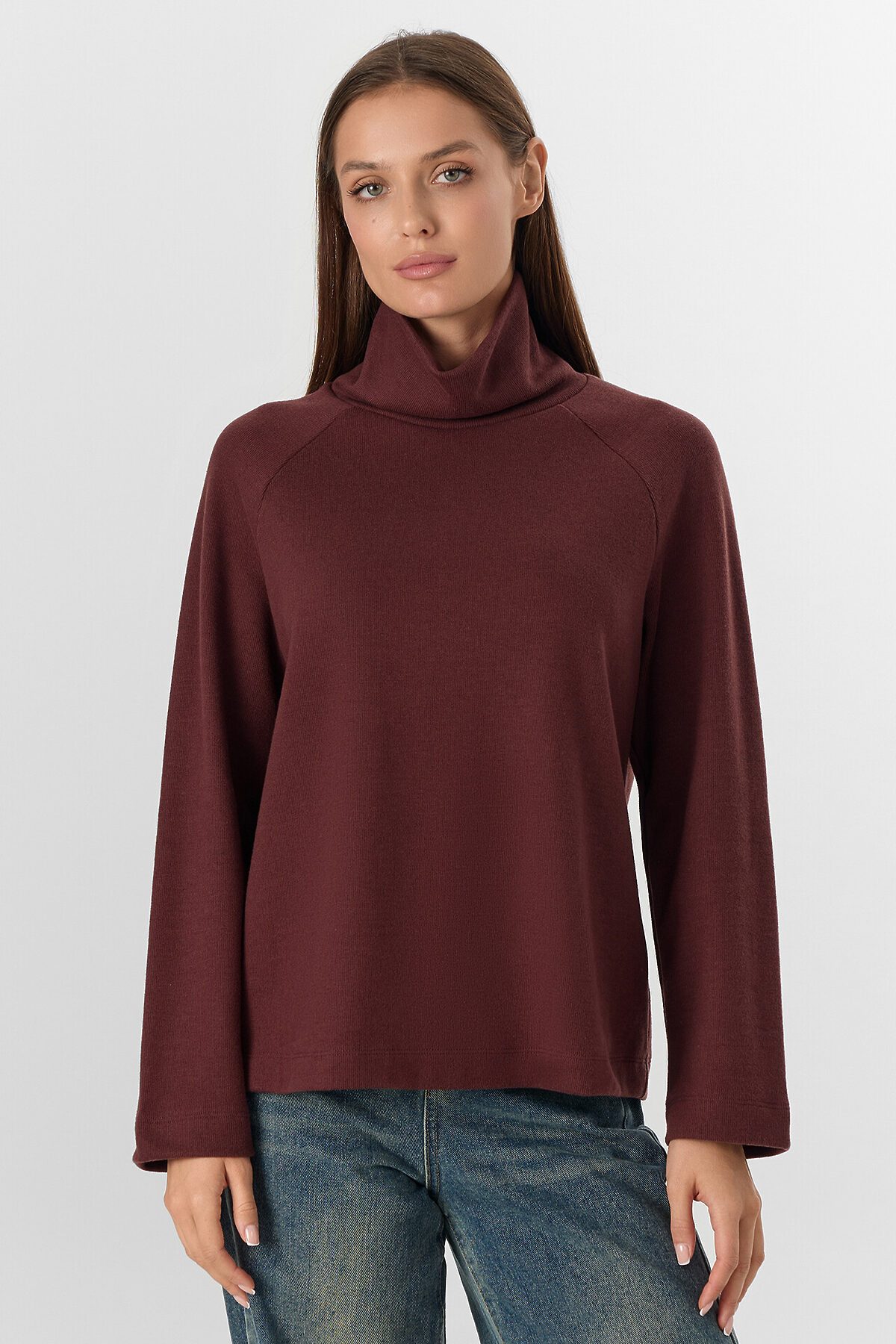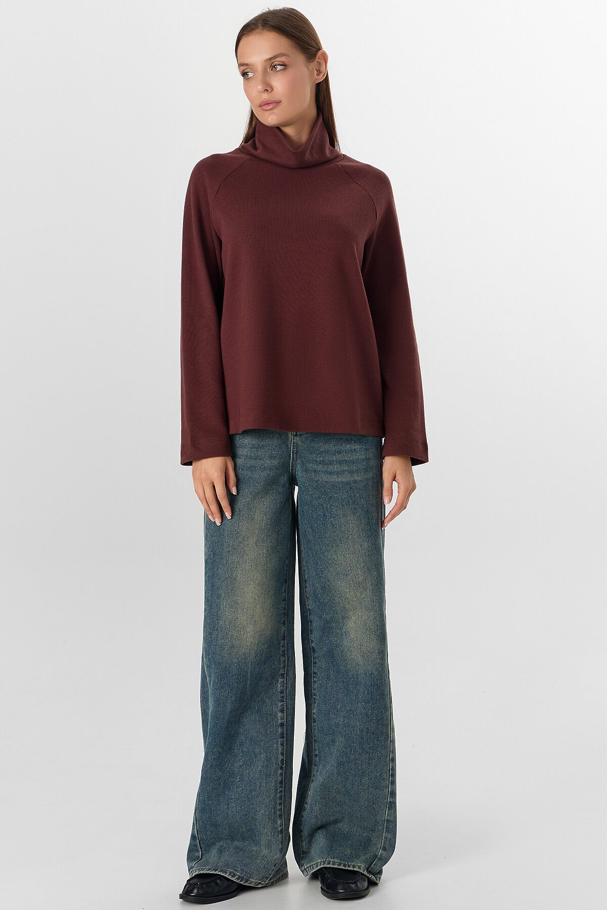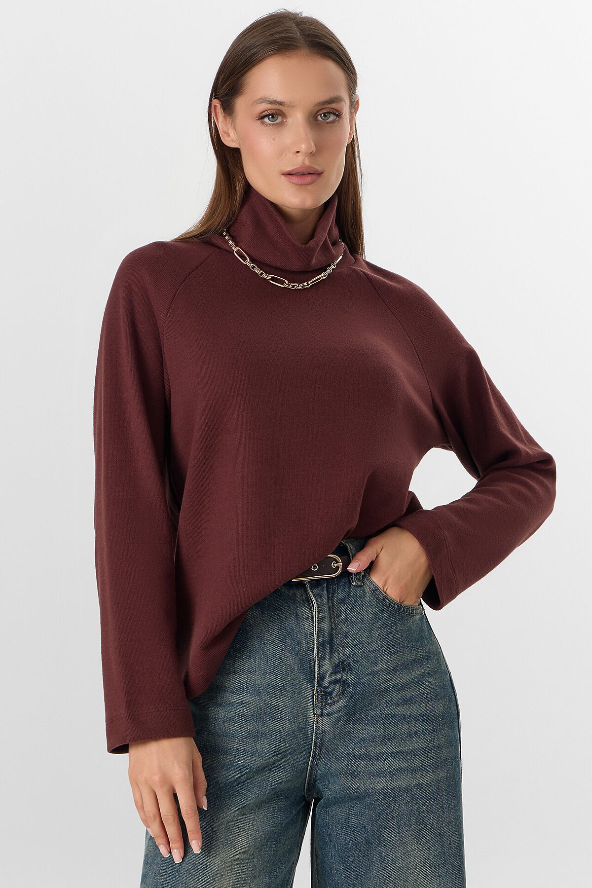 Джемпер свободного силуэта, горловина обработана воротником-стойкой. Рукава длинные реглан. Низ изделия и рукавов вподгибку.