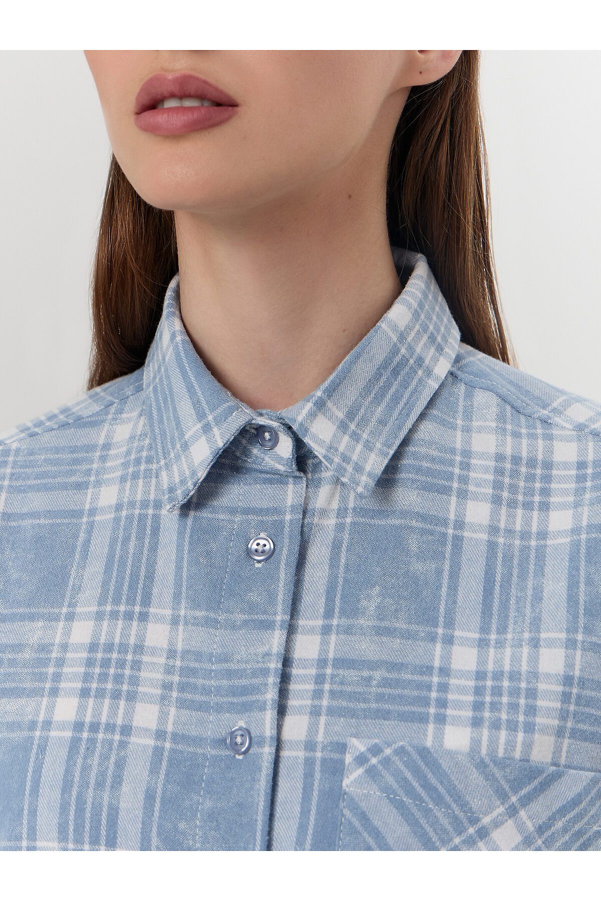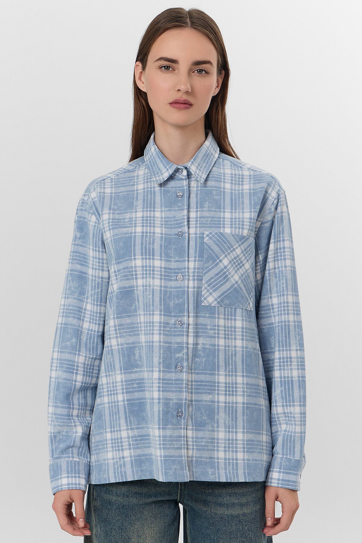 Женская рубашка из хлопка в клетку — современный базовый элемент гардероба, где классическая форма встречается с актуальным дизайном. Модель прямого силуэта с отложным воротником и длинными рукавами на манжетах создает выразительный образ. Нагрудный карман и застежка на пуговицы по всей длине и на манжетах подчеркивают продуманность деталей.